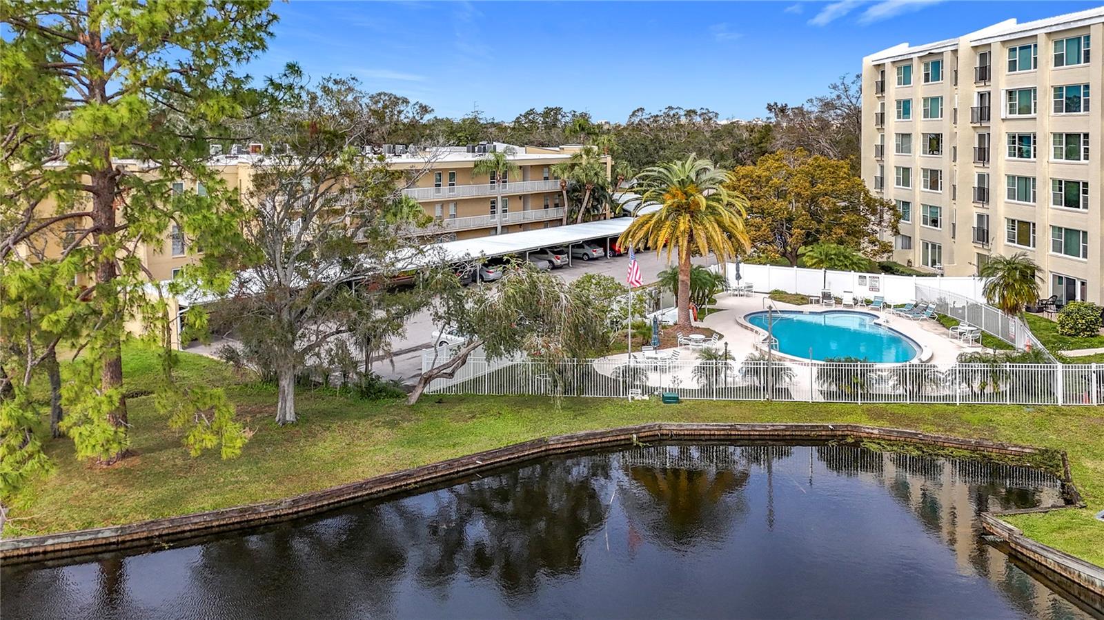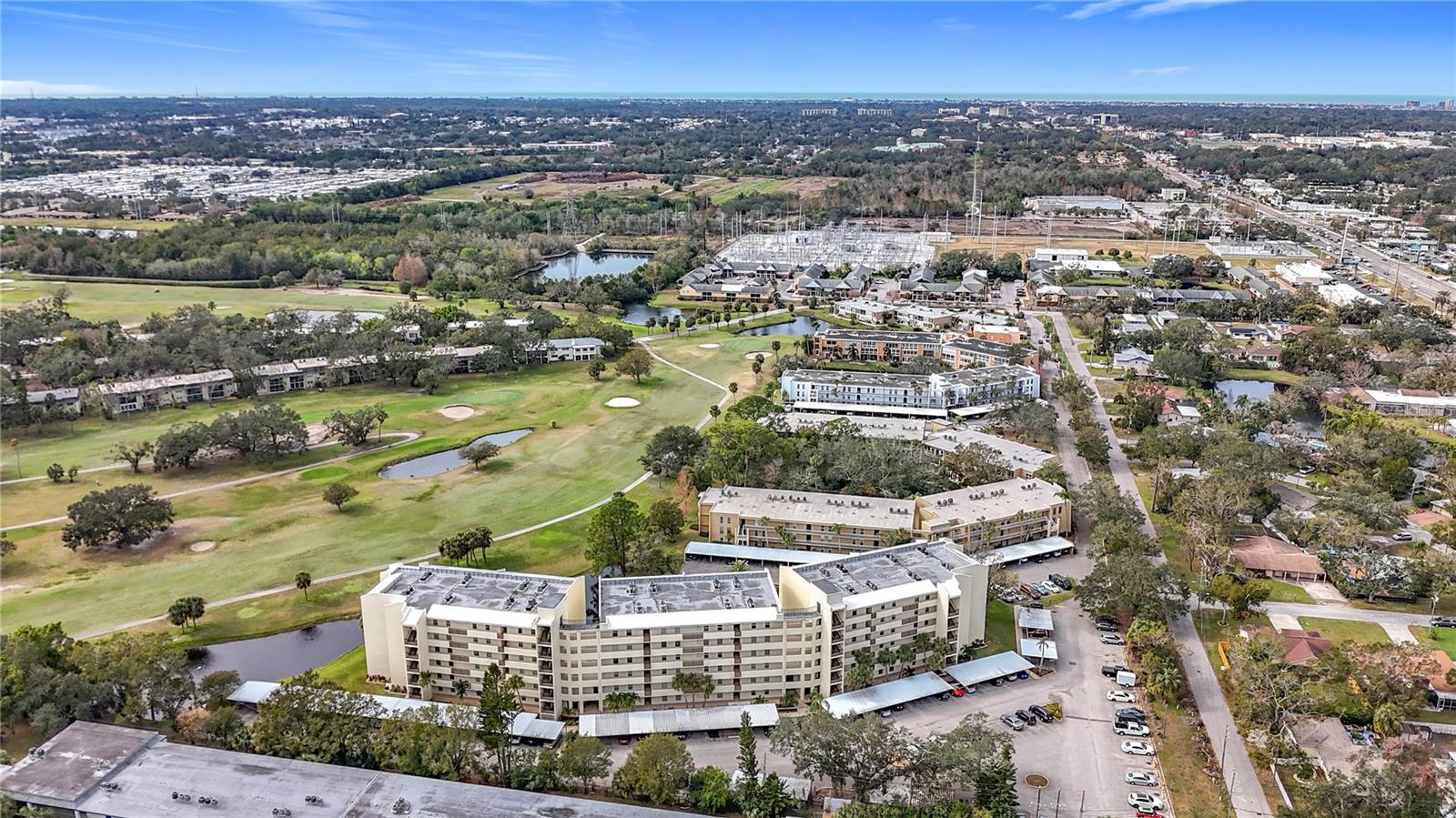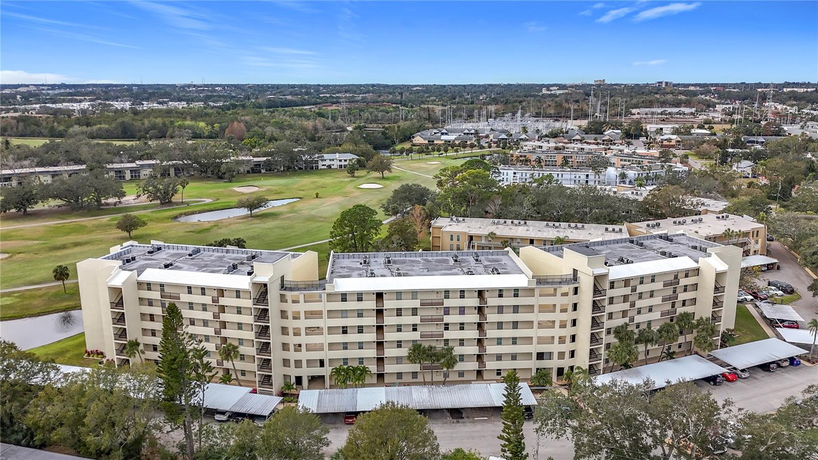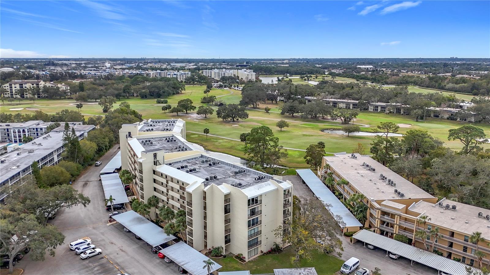 Priced to sell and in need of TLC unusually large condominium with golf course and pool views. Very clean and updated residence in well managed and maintained Building F, The Fairways in the Penthouse Greens Community on East Bay CC Golf course. Spacious living room, dining room, eat-in kitchen with closet pantry, large master bedroom with generous on-suite and walk-in closet, large guest room, hall bath, separate walk-in storage closet and laundry room with full size washer and dryer in unit. Newer windows in living room and dining room, updated Trane ac system and water heater. The very reasonable HOA fee includes High-Speed Internet, basic Cable TV package, Secured Storage, Water/Sewer, Trash, Landscaping, Community Pool, Exterior Maintenance, 2 Club rooms, Reserves, and Community Insurance. The community Penthouse Green recently underwent major renovation projects and updates, costing more than $1 million overall. Included new walkways, stucco, exterior painting, railing, resurfacing sidewalks, and landscaping. Other recent projects were: updated the Pool, 2023, a new Roof 2018, and Fire alarm systems, 2023. A designated storage locker and tandem garage is included. THIS IS A NO PET COMDOMINIUM. No flood zone, no flood insurance needed. All ages, this is NOT a 55+ community. Award-winning beaches are just 10 minutes away, Clearwater Beach, Sand Key Beach, Ind Rocks Beach and so many more. Come to see it today!