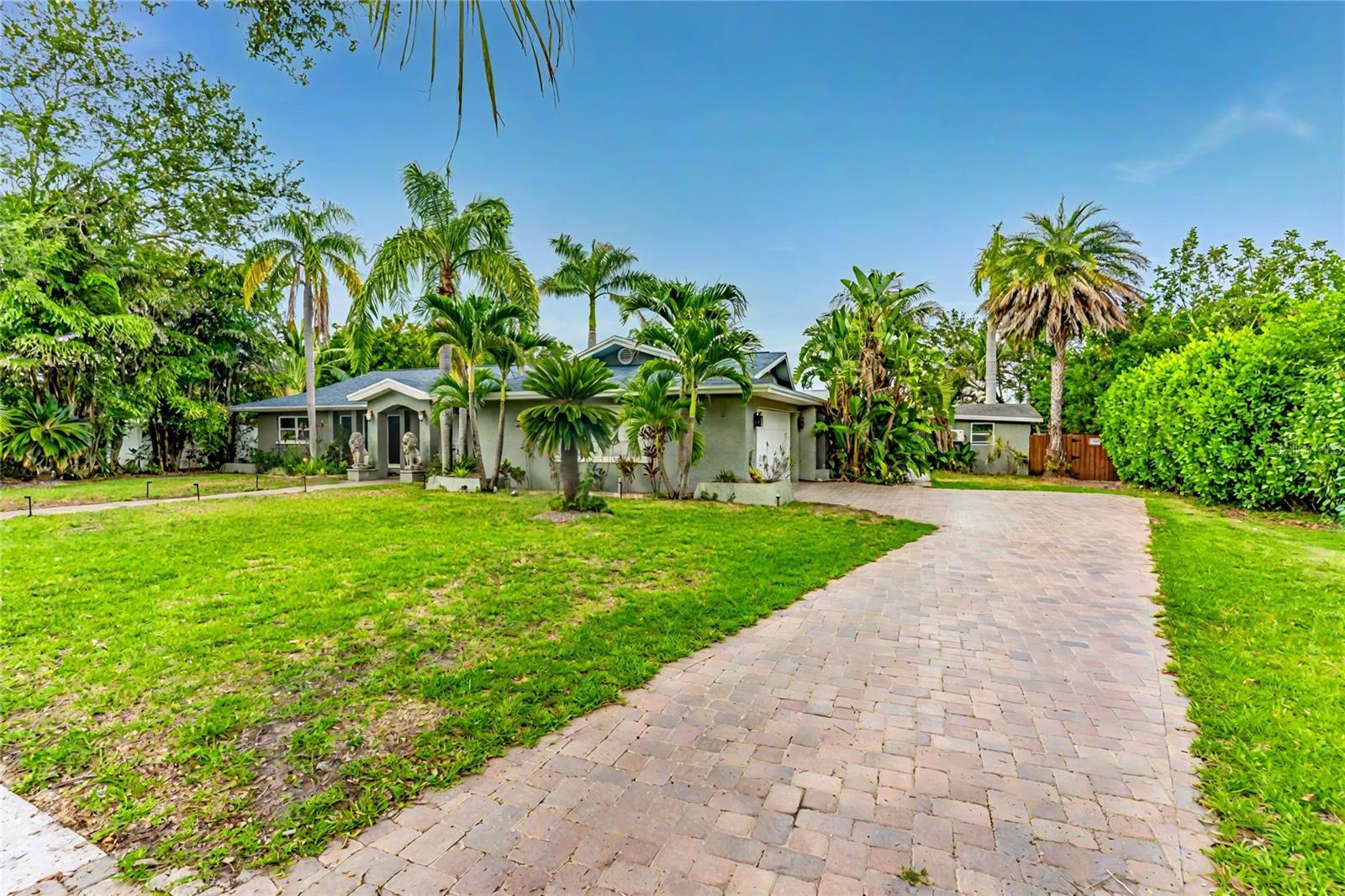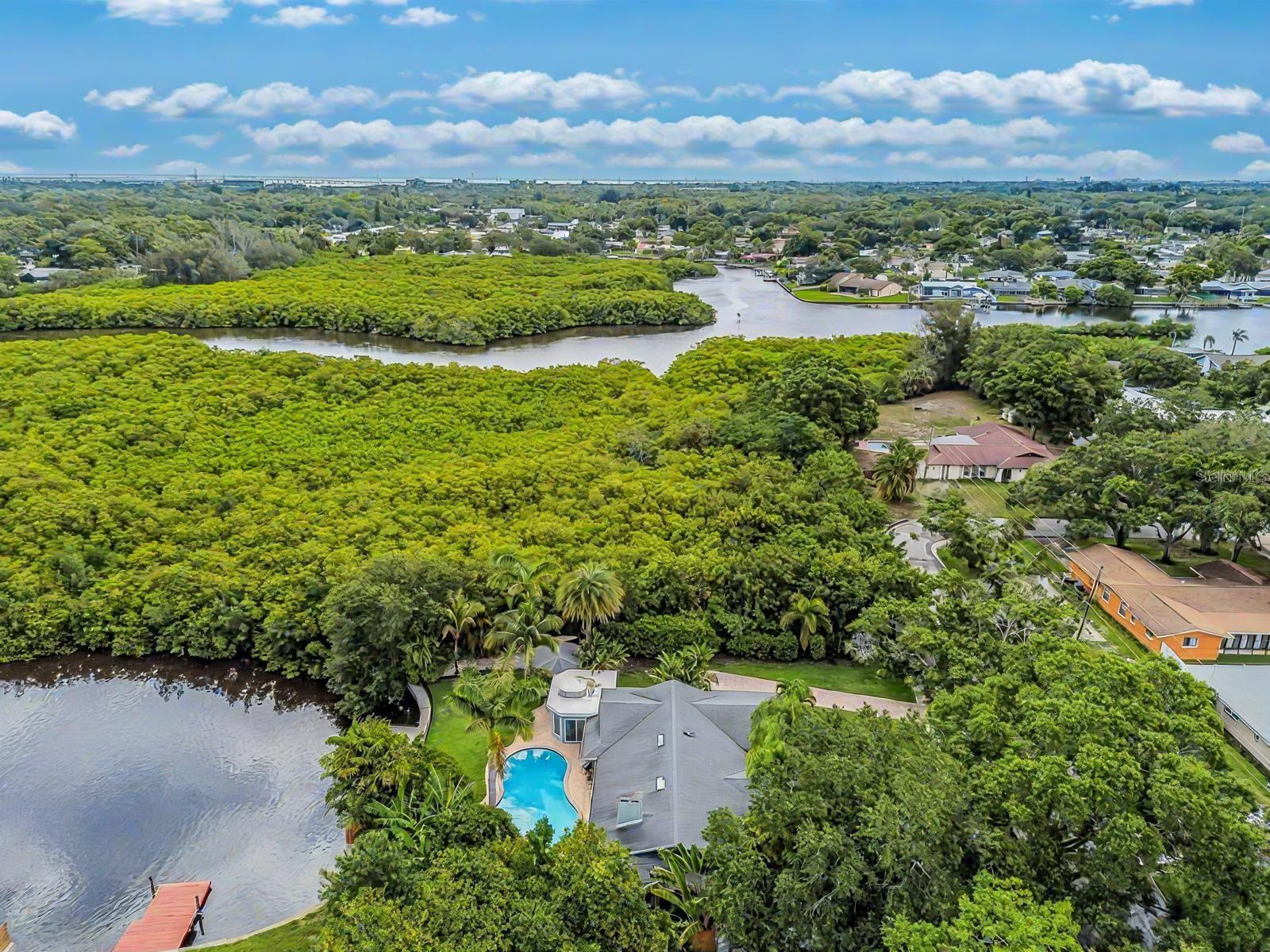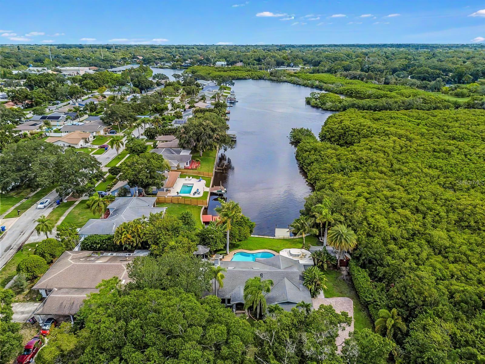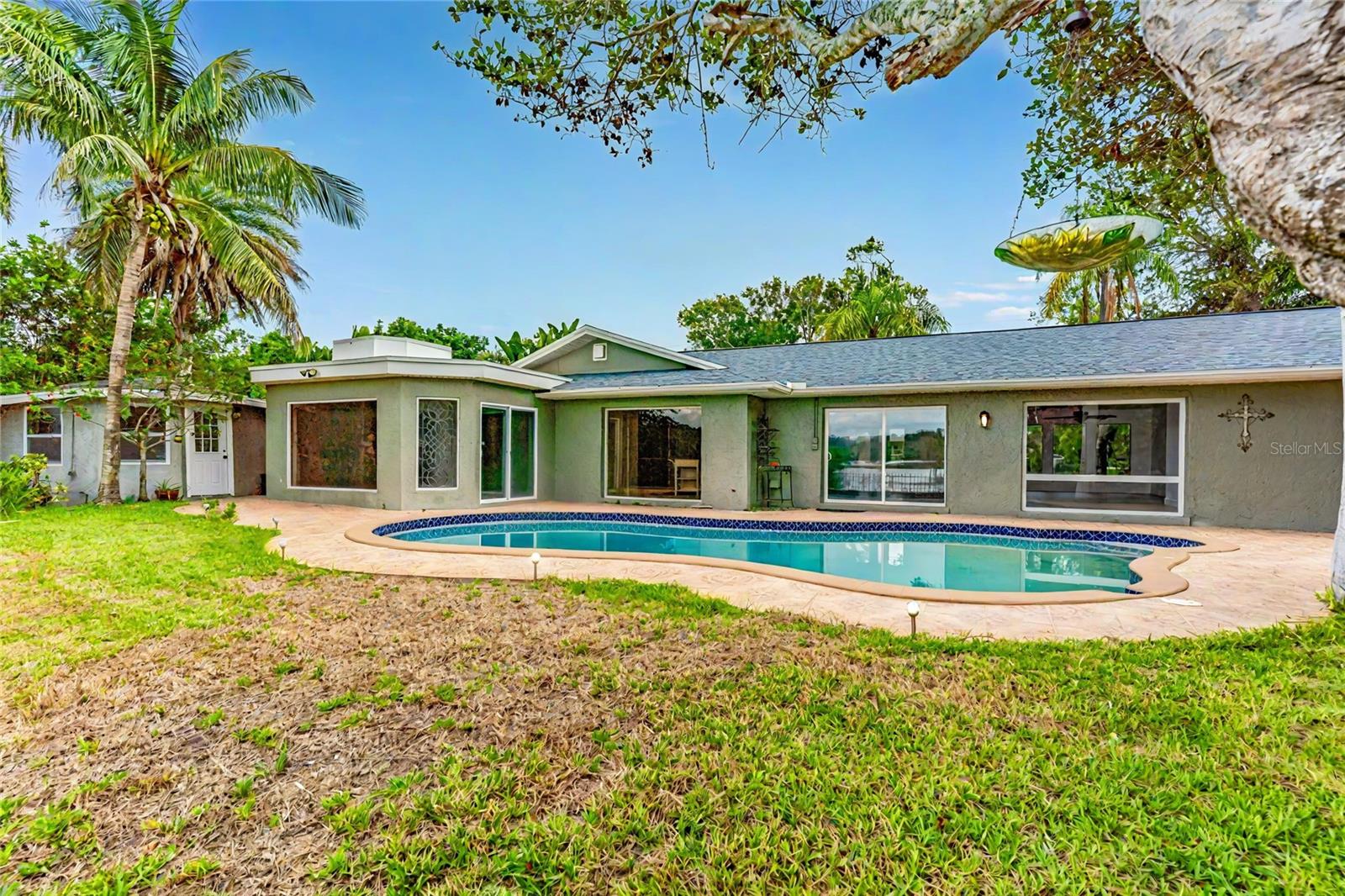 One or more photo(s) have been virtually staged. A RARE chance to own a private waterfront retreat with million-dollar views from every room. This beautiful 3-bedroom, 2-bathroom Frank Lloyd Wright-inspired home includes a 2-car garage and a bonus guest cottage. Located on a quiet, rarely available waterfront lot, the property has just been upgraded with a full renovation, including a brand-new roof, new luxury flooring, a fully remodeled kitchen, updated systems, new landscaping, and more. Designed for true Florida living, the home features floor-to-ceiling windows that fill the space with light and showcase stunning views of the intracoastal waterway. Enjoy fishing or watch dolphins, manatees, and birds from your private dock, which has both electric and water hookups and offers direct access to Tampa Bay and the Gulf of Mexico. The chef’s kitchen includes granite counters, high-end stainless steel appliances, solid wood cabinets, a matching island, and a large breakfast bar with views of the pool and water. It flows into the family room, dining area, and cozy living room with a fireplace, perfect for both relaxing and entertaining. The spacious primary suite has water views, his-and-her closets, and a flexible area for a private office or large walk-in closet. The en-suite bath includes a stone garden tub, slate floors, and dual sinks. Just outside one of the bedrooms is a peaceful backyard seating area, perfect for morning coffee. The backyard also features a private gazebo—ideal for lounging, dining, or simply enjoying the view. The detached guest cottage has a water hookup and air conditioning, making it great for visitors, a home office, or studio. Only four miles from Clearwater Beach and walking distance to Eagle Lake Park, the home also borders an 85-acre bird and mangrove sanctuary, with no rear or right-side neighbors for added privacy. Enjoy amazing sunrises and sunsets from your backyard oasis. Conveniently located just two miles from US-19, 10 minutes from St. Pete–Clearwater Airport, and 20 minutes from Tampa International, this home is close to top dining, shopping, and entertainment. Don’t miss this unique waterfront home—schedule your private showing today!