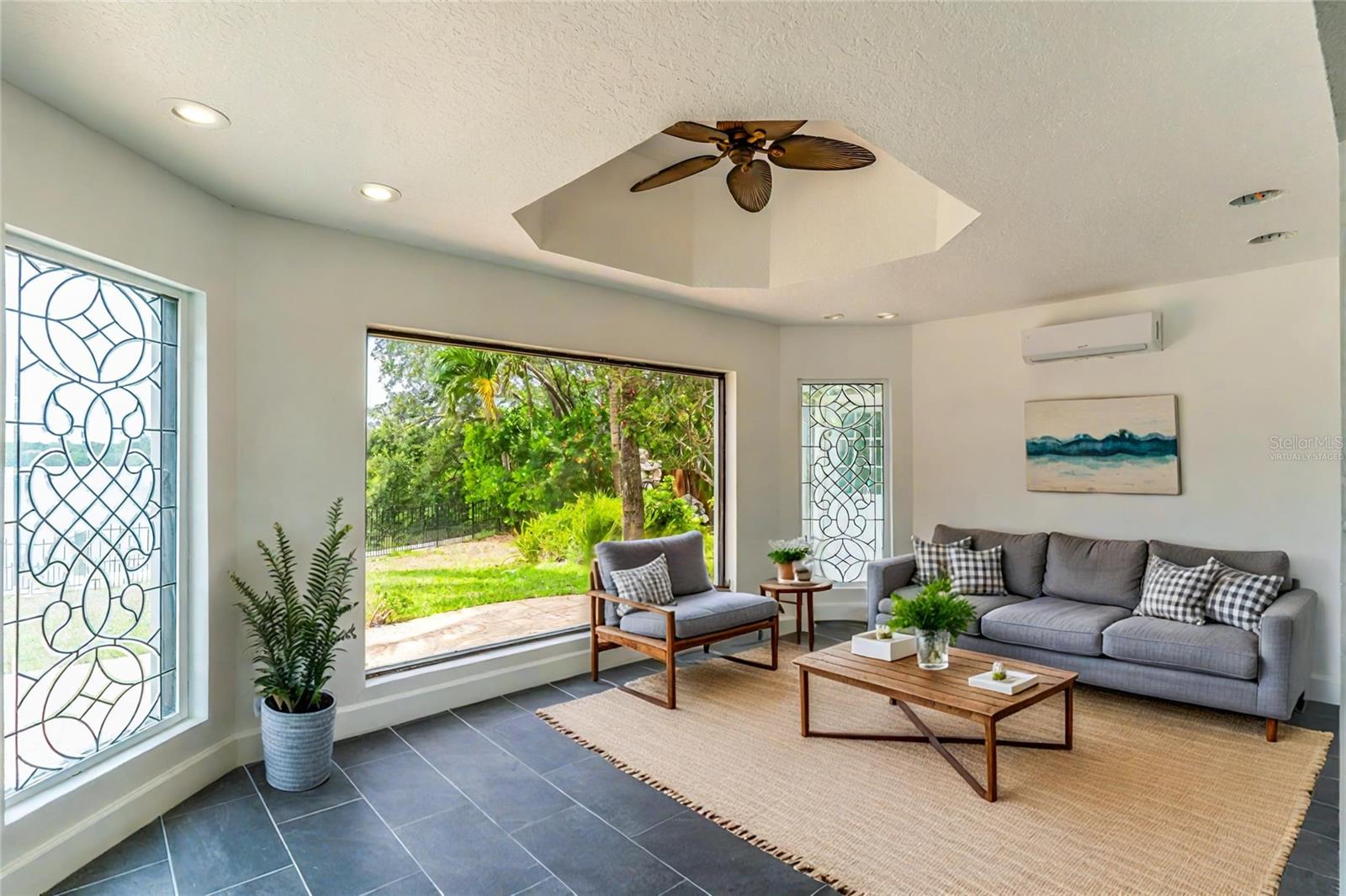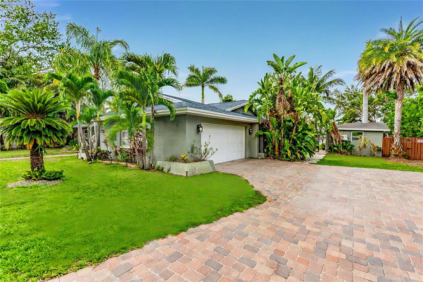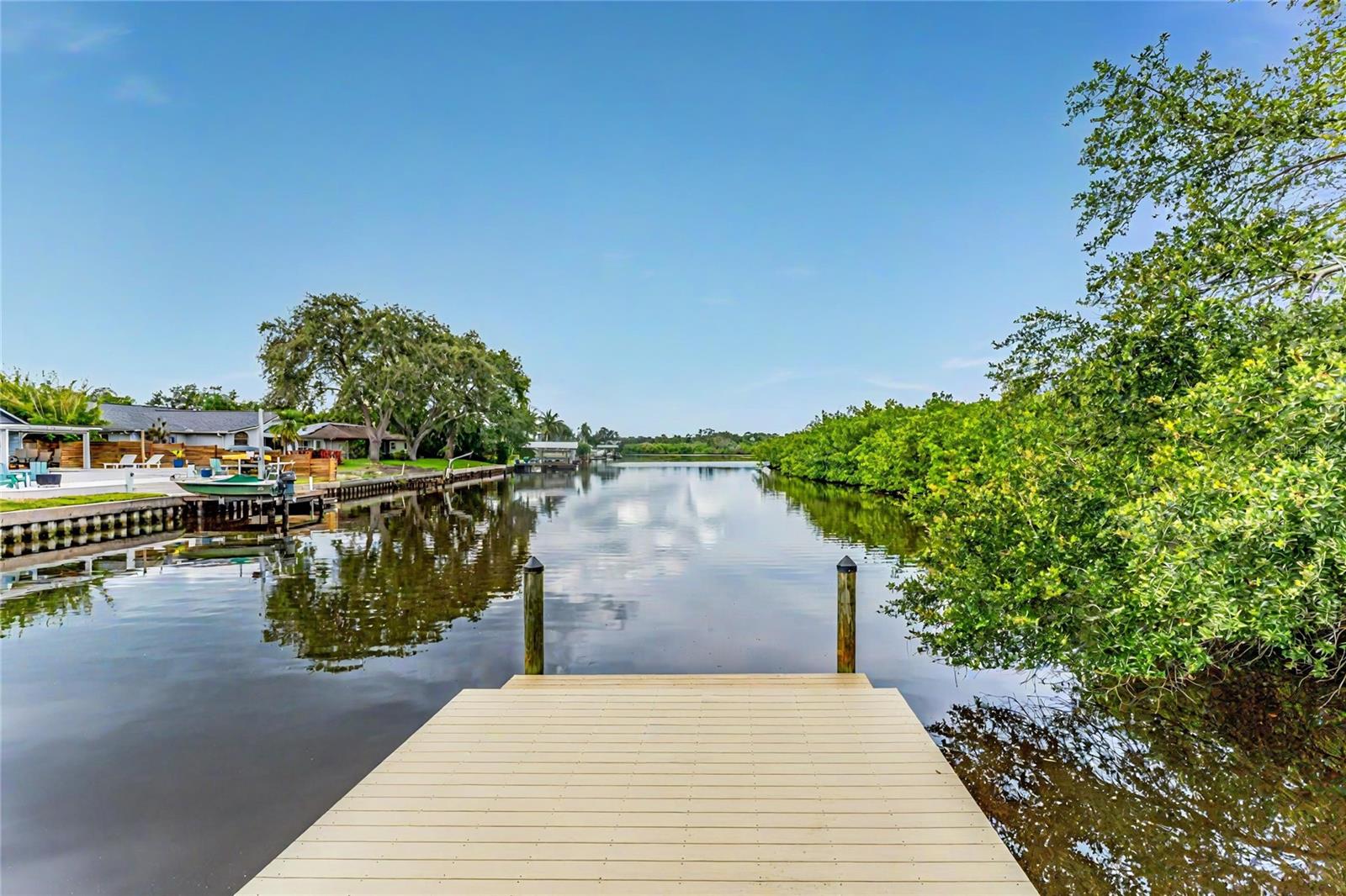 One or more photo(s) have been virtually staged. A RARE chance to own a private waterfront retreat with million-dollar views from every room. This beautiful 3-bedroom, 2-bathroom Frank Lloyd Wright-inspired home includes a 2-car garage and a bonus guest cottage. Located on a quiet, rarely available waterfront lot, the property has just been upgraded with a full renovation, including a brand-new roof, new luxury flooring, a fully remodeled kitchen, updated systems, new landscaping, and more. Designed for true Florida living, the home features floor-to-ceiling windows that fill the space with light and showcase stunning views of the intracoastal waterway. Enjoy fishing or watch dolphins, manatees, and birds from your private dock, which has both electric and water hookups and offers direct access to Tampa Bay and the Gulf of Mexico. The chef’s kitchen includes granite counters, high-end stainless steel appliances, solid wood cabinets, a matching island, and a large breakfast bar with views of the pool and water. It flows into the family room, dining area, and cozy living room with a fireplace, perfect for both relaxing and entertaining. The spacious primary suite has water views, his-and-her closets, and a flexible area for a private office or large walk-in closet. The en-suite bath includes a stone garden tub, slate floors, and dual sinks. Just outside one of the bedrooms is a peaceful backyard seating area, perfect for morning coffee. The backyard also features a private gazebo—ideal for lounging, dining, or simply enjoying the view. The detached guest cottage has a water hookup and air conditioning, making it great for visitors, a home office, or studio. Only four miles from Clearwater Beach and walking distance to Eagle Lake Park, the home also borders an 85-acre bird and mangrove sanctuary, with no rear or right-side neighbors for added privacy. Enjoy amazing sunrises and sunsets from your backyard oasis. Conveniently located just two miles from US-19, 10 minutes from St. Pete–Clearwater Airport, and 20 minutes from Tampa International, this home is close to top dining, shopping, and entertainment. Don’t miss this unique waterfront home—schedule your private showing today!
