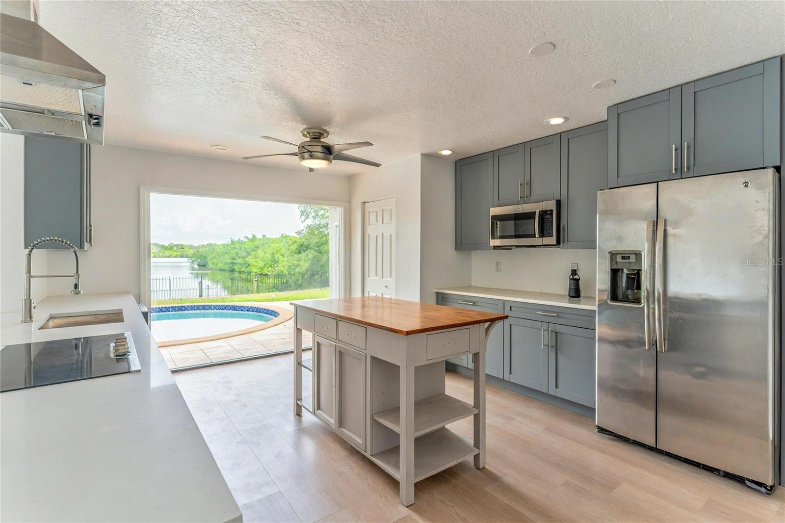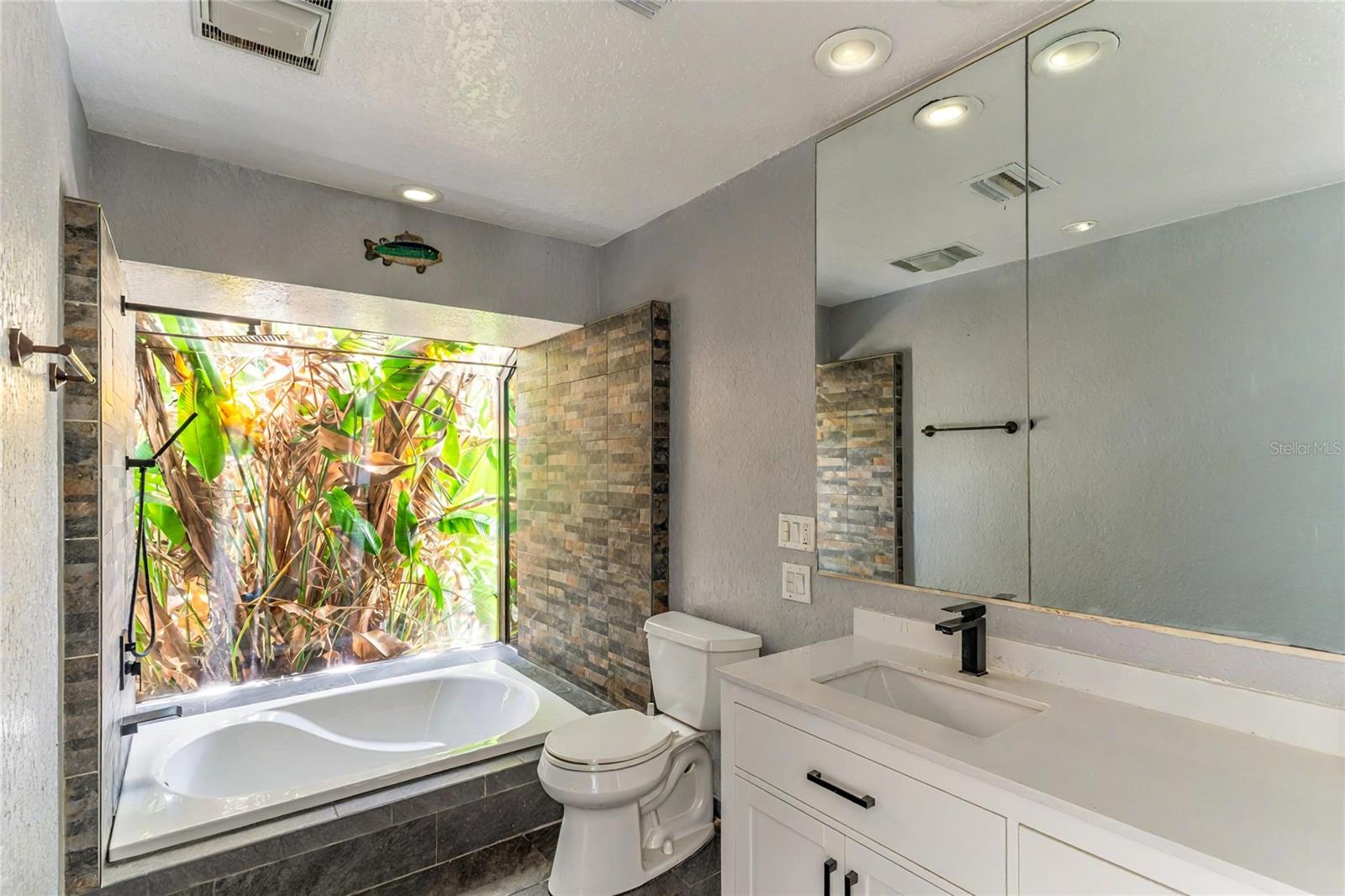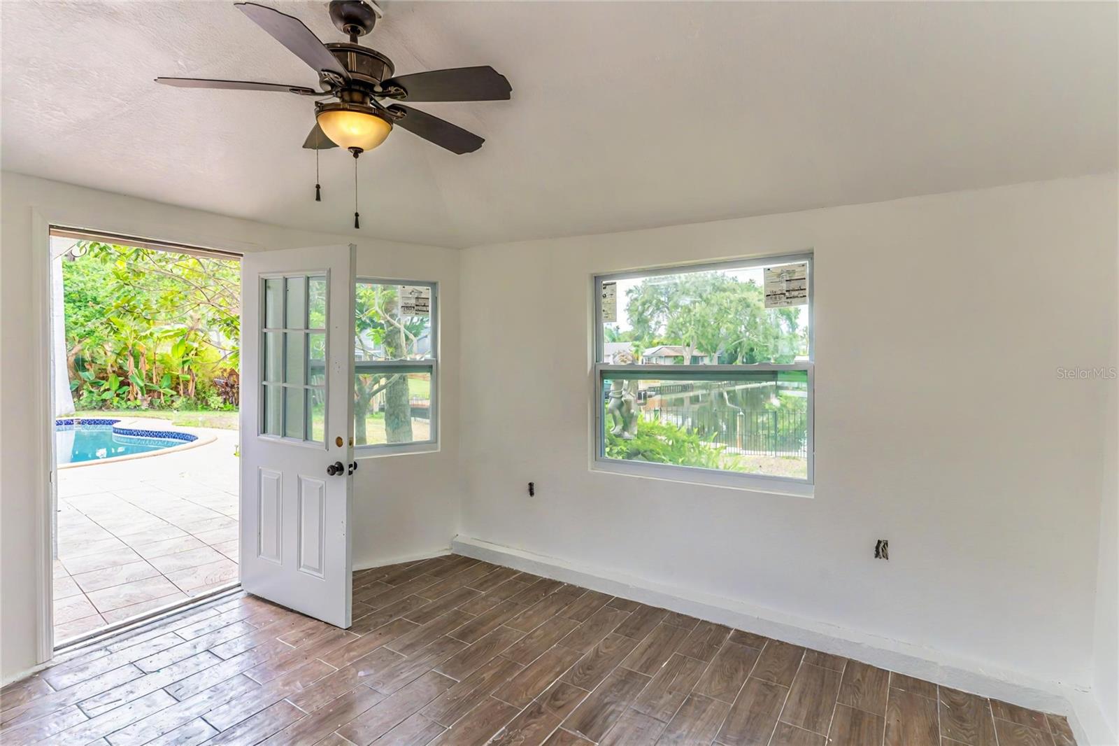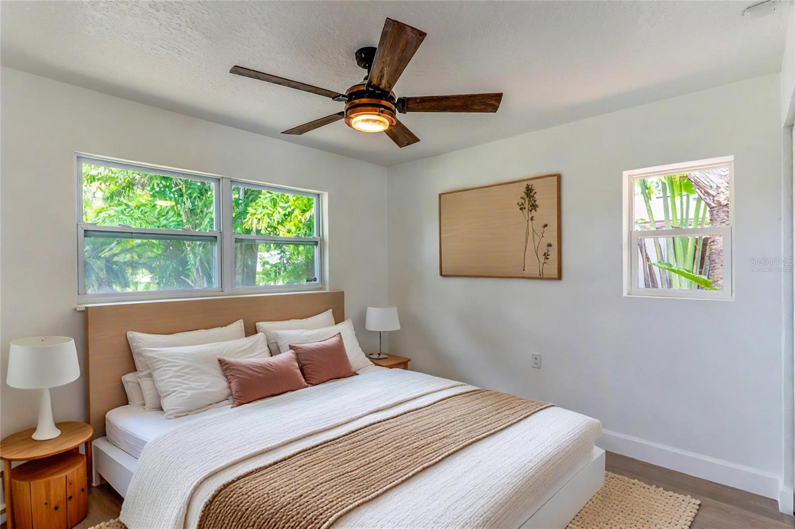 One or more photo(s) have been virtually staged. A RARE chance to own a private waterfront retreat with million-dollar views from every room. This beautiful 3-bedroom, 2-bathroom Frank Lloyd Wright-inspired home includes a 2-car garage and a bonus guest cottage. Located on a quiet, rarely available waterfront lot, the property has just been upgraded with a full renovation, including a brand-new roof, new luxury flooring, a fully remodeled kitchen, updated systems, new landscaping, and more. Designed for true Florida living, the home features floor-to-ceiling windows that fill the space with light and showcase stunning views of the intracoastal waterway. Enjoy fishing or watch dolphins, manatees, and birds from your private dock, which has both electric and water hookups and offers direct access to Tampa Bay and the Gulf of Mexico. The chef’s kitchen includes granite counters, high-end stainless steel appliances, solid wood cabinets, a matching island, and a large breakfast bar with views of the pool and water. It flows into the family room, dining area, and cozy living room with a fireplace, perfect for both relaxing and entertaining. The spacious primary suite has water views, his-and-her closets, and a flexible area for a private office or large walk-in closet. The en-suite bath includes a stone garden tub, slate floors, and dual sinks. Just outside one of the bedrooms is a peaceful backyard seating area, perfect for morning coffee. The backyard also features a private gazebo—ideal for lounging, dining, or simply enjoying the view. The detached guest cottage has a water hookup and air conditioning, making it great for visitors, a home office, or studio. Only four miles from Clearwater Beach and walking distance to Eagle Lake Park, the home also borders an 85-acre bird and mangrove sanctuary, with no rear or right-side neighbors for added privacy. Enjoy amazing sunrises and sunsets from your backyard oasis. Conveniently located just two miles from US-19, 10 minutes from St. Pete–Clearwater Airport, and 20 minutes from Tampa International, this home is close to top dining, shopping, and entertainment. Don’t miss this unique waterfront home—schedule your private showing today!