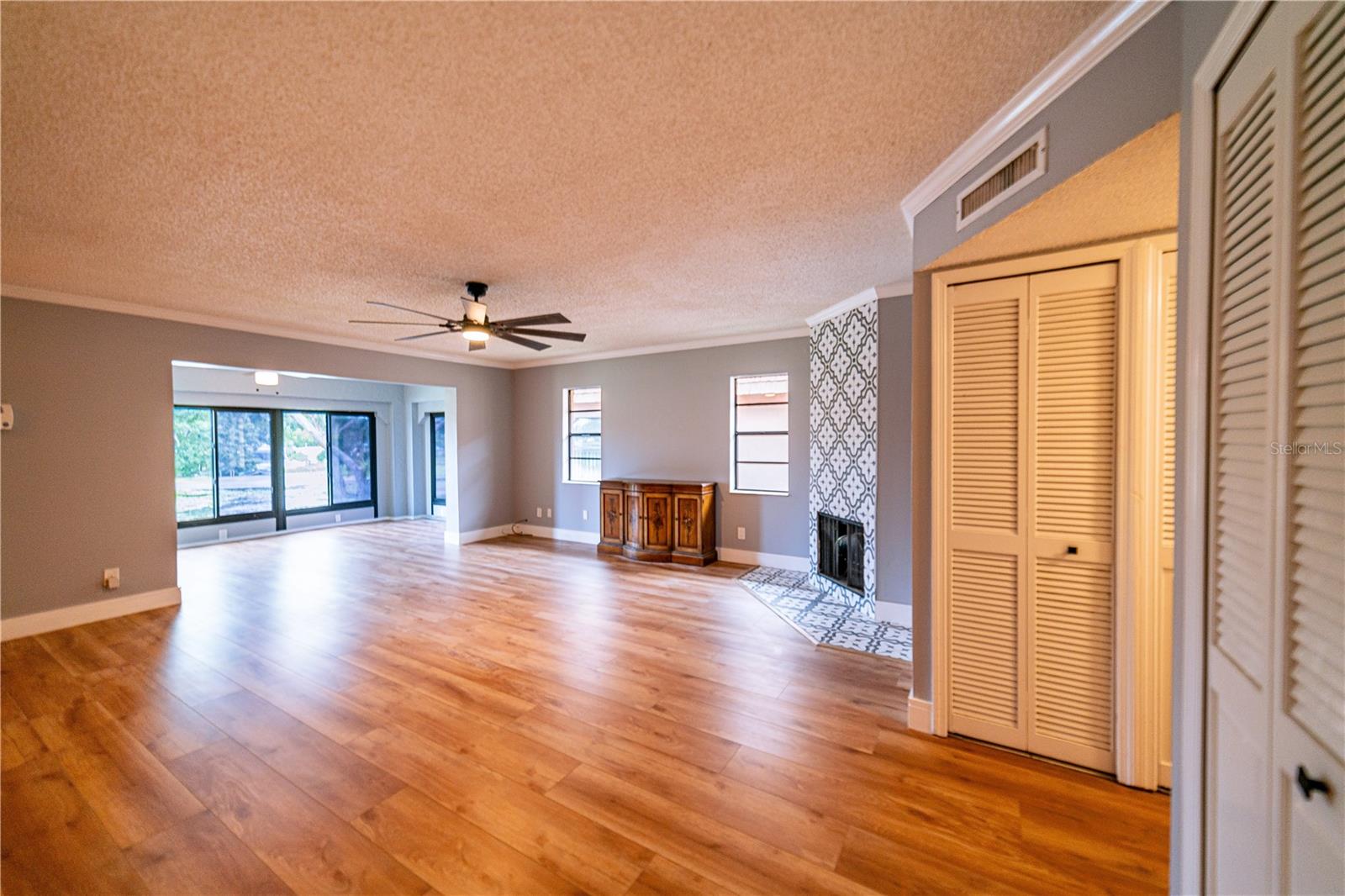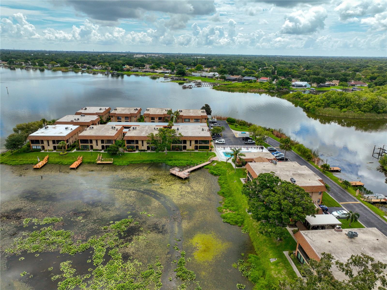 NEWLY UPDATED.WATER VIEWS. MOVE IN READY. NO FLOOD INSURANCE NEEDED. Nestled on the shores of Lake Seminole in Largo, this exquisitely beautiful condo offers a rare opportunity to indulge in waterfront living at its finest. Situated in the coveted Willow Point Condominiums, this second-floor unit presents an unobstructed, breathtaking vista of Lake Seminole from its inviting living room. Boasting two spacious bedrooms and two full bathrooms, this home features a designated dining area and a charming kitchen. The family room is adorned with floor-to-ceiling windows that frame panoramic views of Lake Seminole, creating an atmosphere of tranquility and natural beauty. Throughout the unit, new luxury vinyl flooring enhancing both elegance and practicality. The Grand Suite bedroom impresses with ample closet space and an adjoining sunroom that overlooks the meticulously landscaped central courtyard. The en suite bathroom offers a bathtub/shower combination for luxurious relaxation. Additional highlights include a wood-burning fireplace in the main living area and the convenience of indoor washer and dryer in a dedicated utility closet. Residents will delight in the resort-style amenities of Willow Point, including a clubhouse, an in-ground pool with a concrete patio, and access to the community dock on Seminole Lake. Located near Largo Mall, Gulf Coast beaches, plenty of dining options, downtown St. Petersburg, and medical facilities, this condominium offers both convenience and a vibrant lifestyle. The monthly HOA fee covers basic cable, water, sewer, exterior maintenance, landscaping, pool care, covered parking, and internet. Recent updates include a 2016 HVAC and a newer electric water heater installed in 2019. Pet owners will appreciate the allowance for one cat or dog weighing up to 25 pounds. Don't miss this exceptional opportunity to embrace the quintessential Florida waterfront lifestyle in one of Pinellas County's most gorgeous gated communities. Revel in spectacular sunsets every evening from the comfort of your own paradise retreat and maintenance free living for years to come!