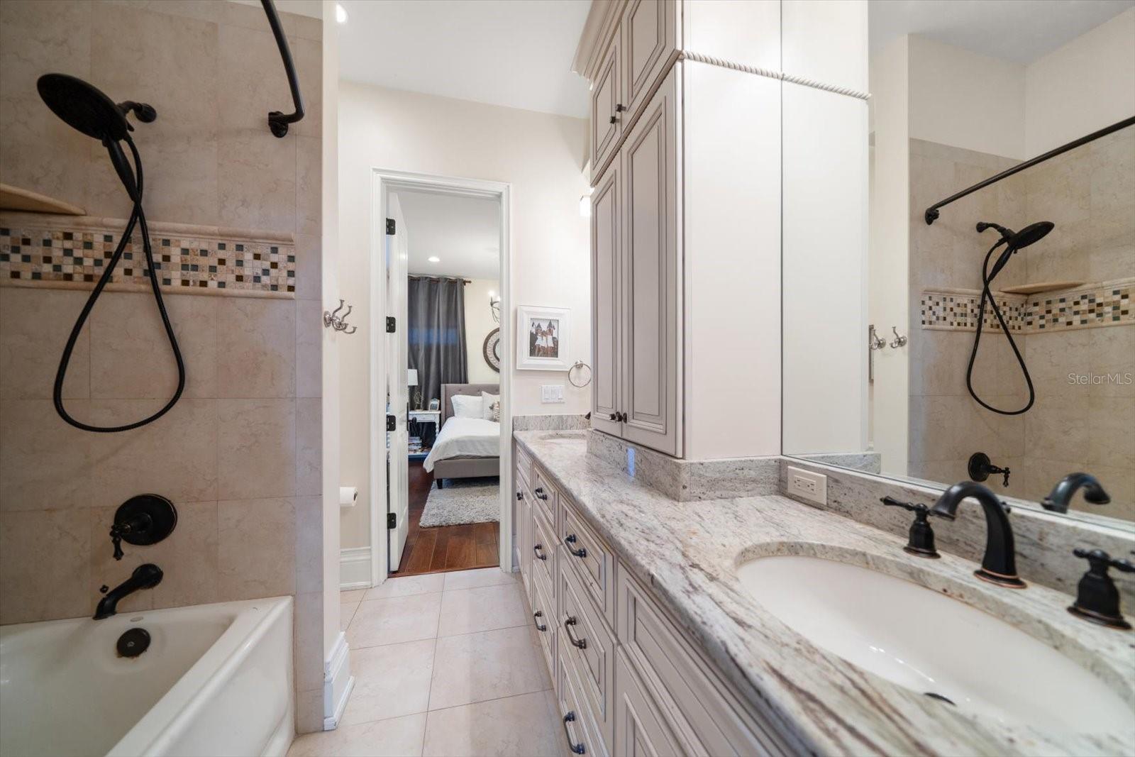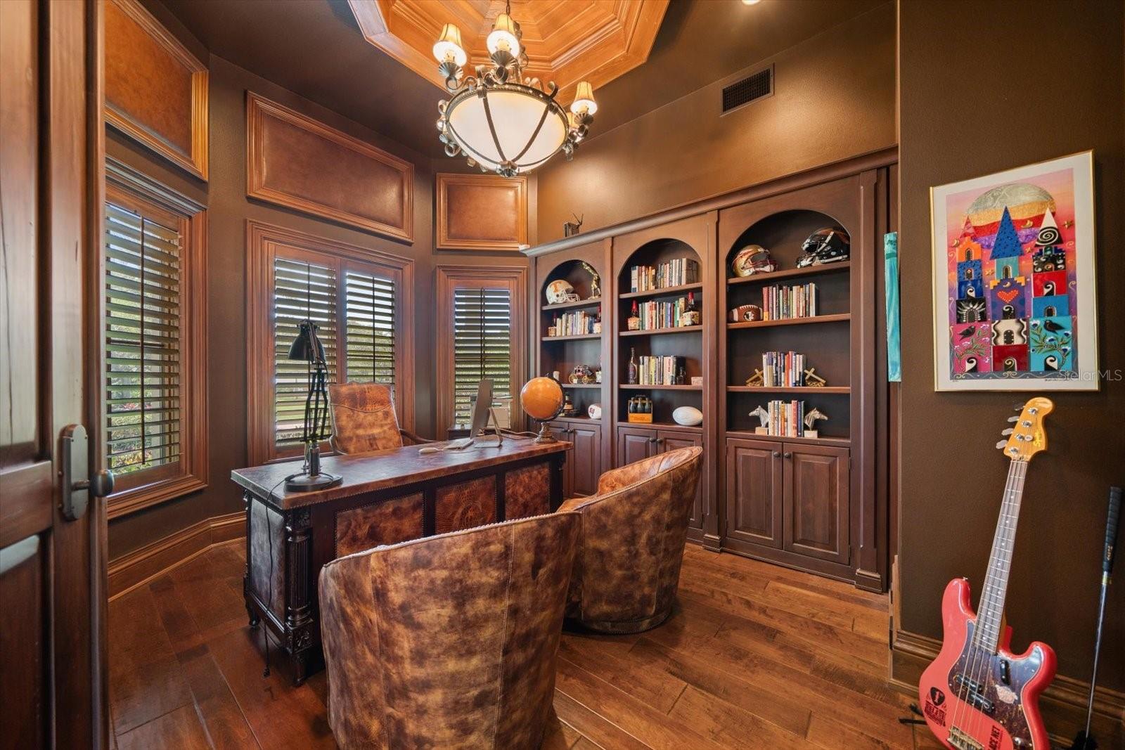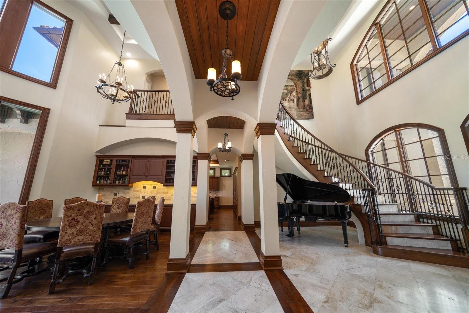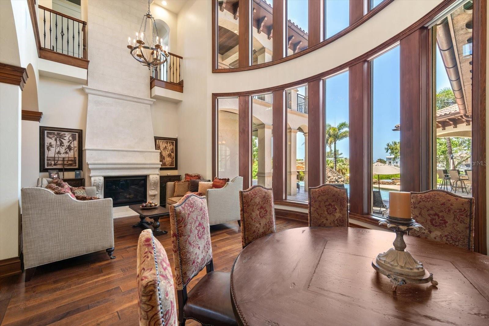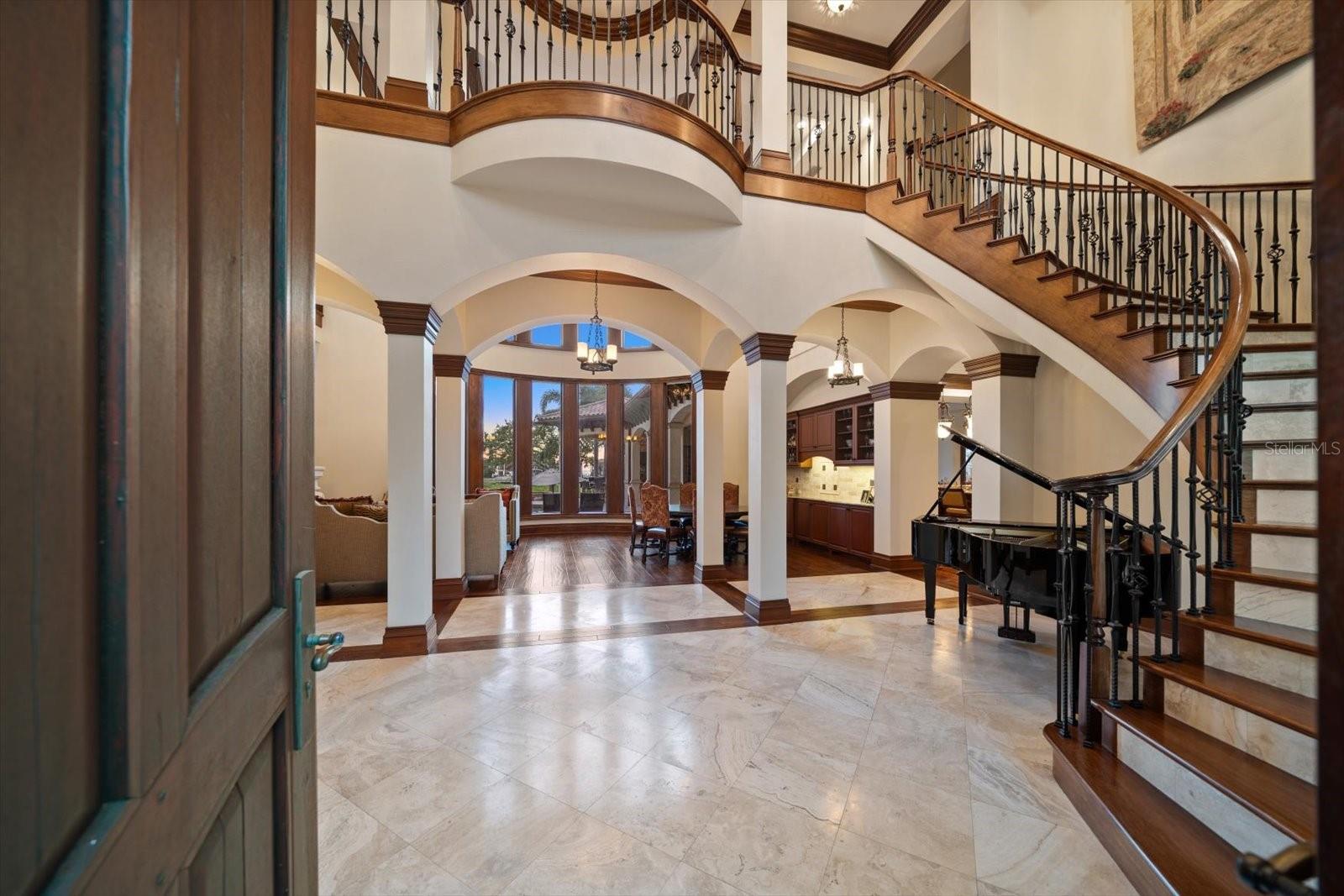 An estate where two elite worlds unite- WATERFRONT luxury & EQUESTRIAN prestige. Tucked away behind a canopy of majestic oaks, a winding Tennessee fieldstone driveway leads you to a Mediterranean-inspired masterpiece that redefines elegance and luxury. Crafted by renowned Brandon Construction, this private estate is a true tropical paradise, created for those with the most discerning taste. Custom double entry doors open to an awe-inspiring interior—where sophistication and thoughtful design meet. The private office offers quiet productivity, while the breathtaking living and dining room commands attention with soaring floor-to-ceiling windows that perfectly frame the resort-style pool and lush outdoor living areas. The chef’s kitchen is the heart of the home, featuring granite countertops, a center island with prep sink, breakfast bar, pot filler, custom built-in Miele fridge & freezer, gas cooktop, and a walk-in pantry—all open to a warm and spacious family room with beamed coffered ceilings, a cozy fireplace, and sliders to the outdoor oasis. Every detail has been considered, from the pool bath, mudroom, and laundry room to the theater room with stage and stadium seating—ideal for movie nights or performances. The primary suite is a serene retreat, flooded with natural light and accented by rich wood beams, a jaw-dropping custom walk-in closet with center island, and a spa-like bath with jetted tub, double walk-in shower with triple heads, dual vanities, a dressing table, and a hidden passage to the home office. Additional bedrooms and bathrooms are designed to pamper family and guests alike. Step outside and you’re transported to your own luxury resort—complete with a two-level heated pool and spa, outdoor kitchen, fireplace, and multiple entertaining areas. For boating enthusiasts, a TREX dock with a 10,000 lb lift offers direct access to the Intracoastal, while west-facing views provide spectacular sunsets that melt into the Gulf. But the crown jewel of this estate may be its custom-built barn—featuring rubber paver flooring, stalls with custom cushion mats, a tack room with custom saddle racks, feed room, covered and lit riding arena for nighttime rides, and a loft with full kitchen and bath, perfect for an on-site trainer or in-law suite. Spring-fed streams weave through the grounds, adding a touch of magic to this must-see property. Overlooking the Narrows and nestled in nature yet minutes from shopping, dining, and the beach—this is more than a home; it’s a once-in-a-lifetime opportunity to live your dream. Advertised square footage is based on builder plans and includes 7,059 sq ft for the main residence and 1,509 sq ft for the barn loft.
