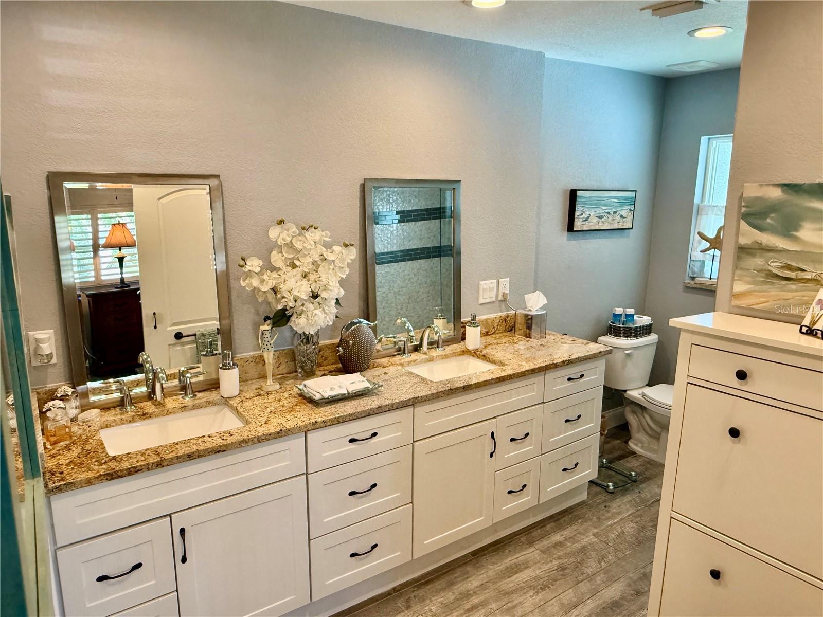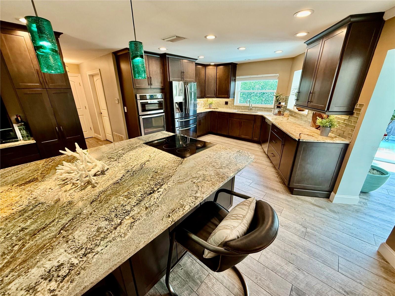 Wow, what an awesome value ! Don't miss this exceptionally upgraded solid block single-family home. Nestled on a large lot, only minutes from Indian Rocks Beach, Tampa International Airport, shopping, and world-class restaurants, this is where you want to be. The main driveway leads to the generously sized 2-car garage. Double fence gates allow for a boat or RV to enter the side yard of the home (short drive to the Belleair causeway boat ramp). There is also a separate driveway on the right side of the house. No storm worries here, high and dry with easy-close hurricane shutters on all windows and doors. As you step onto the large, covered front porch and into the welcoming entrance foyer, you are greeted by an open floor plan with plenty of light. Immediately, you will realize no expense was spared to create this masterpiece of a home. Enjoy entertaining guests in your formal living room and dining room. Create gourmet meals in your Chef's design kitchen, featuring top-of- the-line, stainless steel appliances, a built-in oven with microwave, a separate oven and cook-top in the huge island, a French door fridge, and a built-in dishwasher. "Truly awesome" best describes the "Maplewood" style soft-close cabinetry, including 2 pantries and a dry bar. An abundance of granite counter space and plenty of cabinets await in this beautifully designed service area. Siding doors lead to a spacious patio where outdoor life comes alive. Create memories as your family gathers for game night or a movie in the open family room. Warm wood-look plank-style porcelain tile floors flow throughout. The master en-suite is spacious and features a bath with a granite vanity top, double undermount sinks, an oversized tile shower (built for easy access) with an open solid glass entry. Additionally, the master en-suite offers a walk-in closet with loads of space. The home has 2 more spacious bedrooms, each with ample closet space. The second bath has double vanity sinks with a granite countertop. This home has two hall closets providing plenty of storage space, with a laundry room leading to the garage. Custom window treatments and plantation shutters complete the offering.