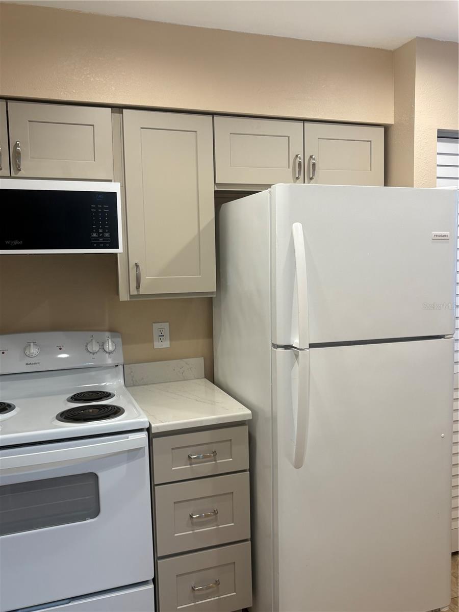 This condo/villa is in move-in condition! All appliances are 3 years old and the microwave is brand new. The kitchen was remodeled summer 2025 with beautiful dove gray cabinets and white quartz countertops. Both bathrooms have been totally remodeled and the master shower is wide open. Spacious floor plan with interior laundry and walk-in closet. Close to the beach, great shopping, health and wellness centers, banking, restaurants and more. EXCELLENT LOCATION!! Nice pool / clubhouse area. Community is nicely landscaped. Pet Ok. NO FLOOD ZONE / NO EVACUATION ZONE! SELLER MOTIVATED!