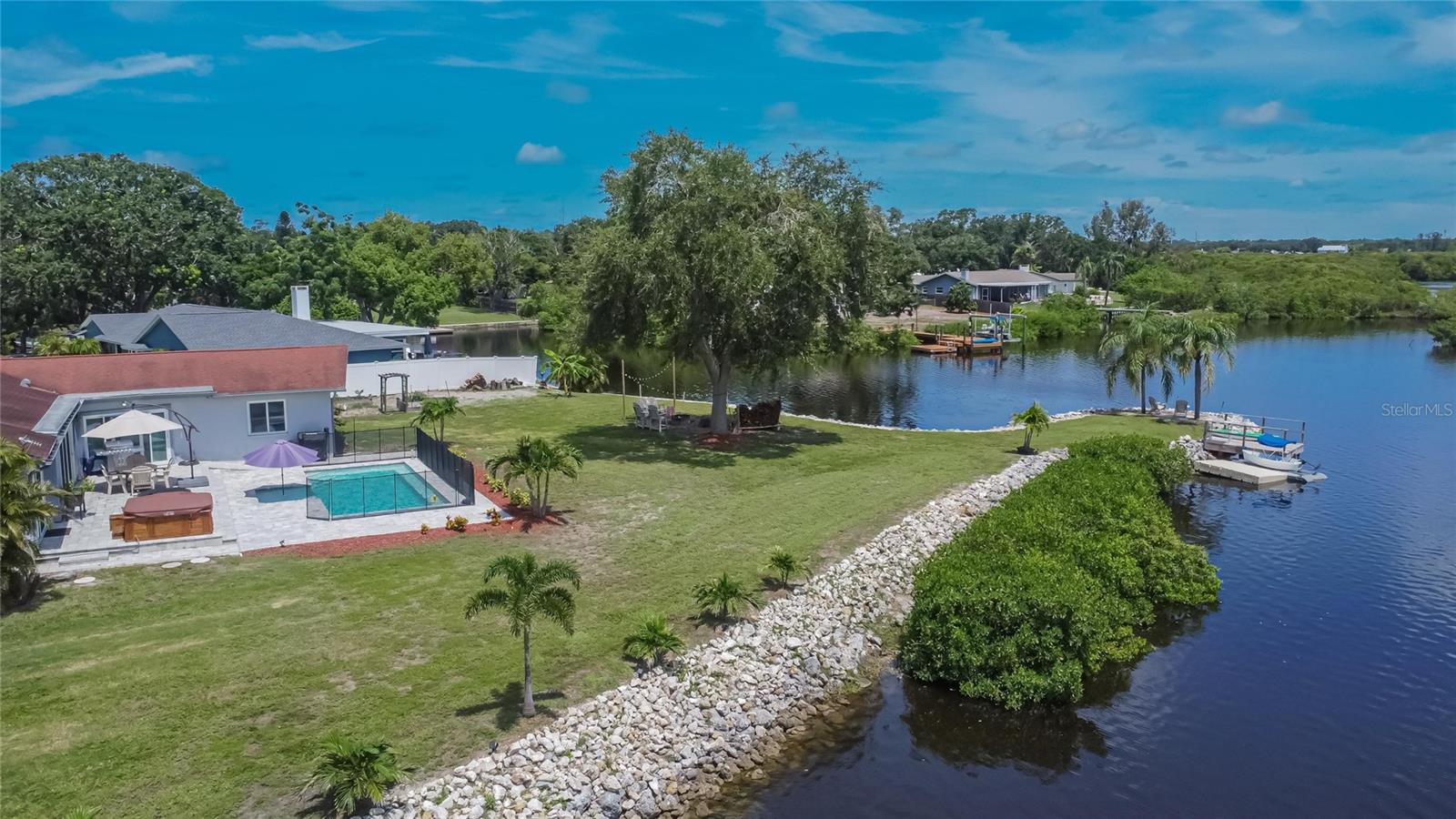 Welcome to your dream home on the water! This beautifully 4-bedroom, 2-bath waterfront residence offers the perfect blend of indoor luxury and outdoor serenity. Nestled on a spacious lot with stunning canal views, this property is ideal for boating, entertaining, or simply relaxing by the pool. Step inside to a bright and open kitchen featuring granite countertops, stainless steel appliances, ample cabinetry, and a large breakfast bar perfect for casual dining. The open-concept layout flows seamlessly into the living and dining areas, all illuminated by natural lighting. Split floor plan, spacious driveway to park your favorite toys. The oversized, resort-style backyard is an entertainer’s dream—complete with a sparkling pool, spa, privacy fence, and a paver patio ideal for lounging under the Florida sun. Enjoy canal-front living with your own private dock and marine life swimming by during the day. At night, enjoy your choice of beverage under the stars in front of the fire pit with family and friends. Short distance to shops, restaurants, 2 airports, golf courses, and so much more! Whether you're looking for a forever home or a vacation oasis, 853 Seacrest Dr offers the lifestyle you've been dreaming of. Schedule your private showing today and experience waterfront living in the Florida sun!