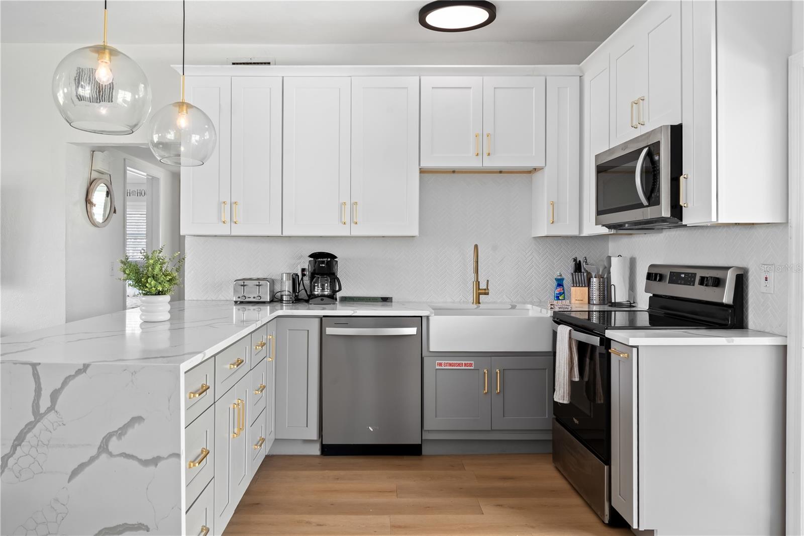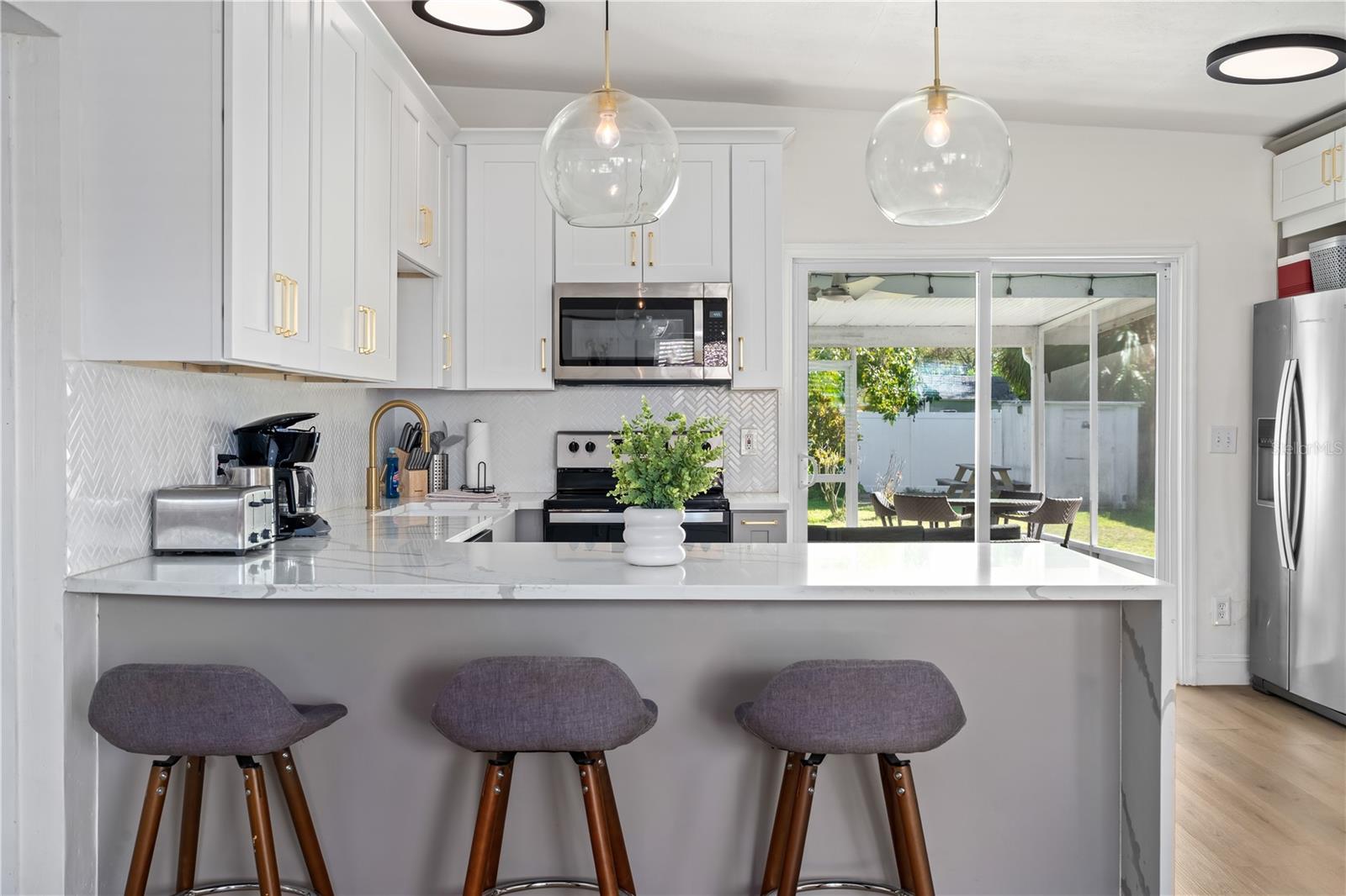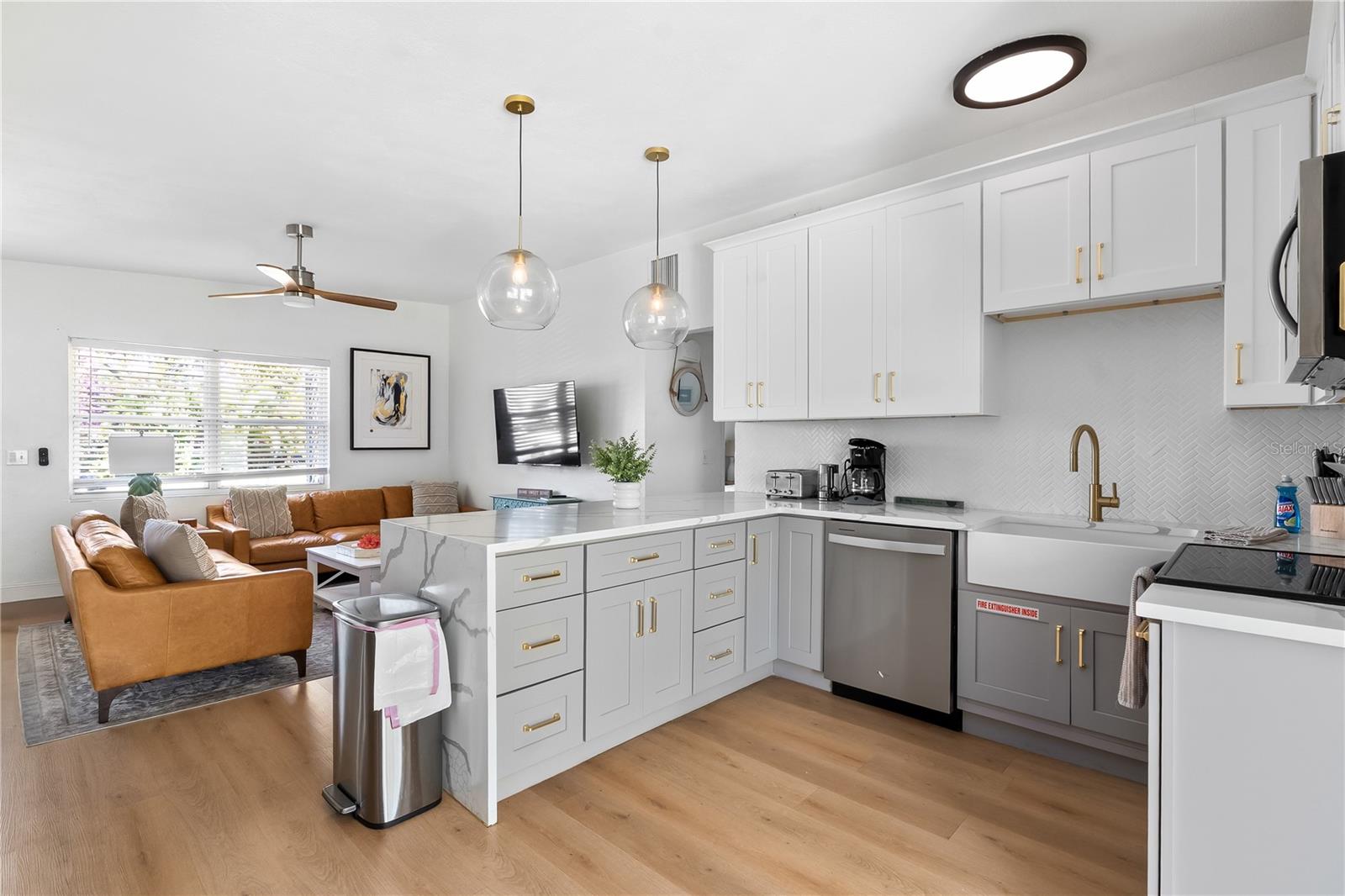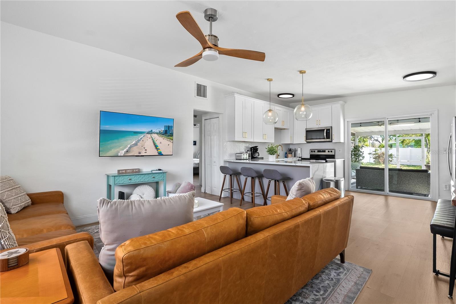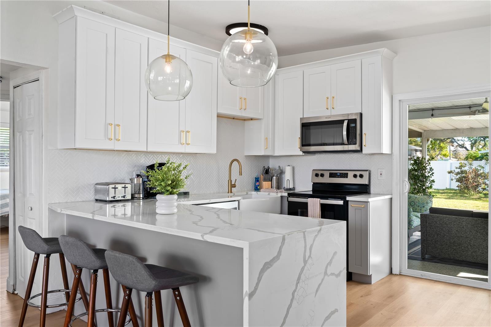 BACK ON THE MARKET! From the moment you arrive, this beautifully renovated 4-bedroom, 2-bathroom home captures your attention with its inviting curb appeal and lush landscaping. Thoughtfully designed and fully permitted, no detail was overlooked in the top-to-bottom renovation—creating a modern, move-in-ready retreat with added square footage and flexible living options. Step inside to find a light and airy interior freshly painted throughout, complemented by luxury vinyl plank flooring that flows seamlessly from room to room. The kitchen is a true showstopper, reimagined with sleek new cabinetry, a stone island centerpiece, farmhouse sink, gold pendant lighting, and all-new stainless steel appliances—perfect for both everyday living and entertaining. Two new bedrooms have been added, each equipped with individual mini-split systems for personalized comfort, while the completely redone primary suite offers its own private entrance, stylish en suite bath with dual sinks, offering the potential to Airbnb independently. The guest bathroom has also been fully renovated with brand new tile, shower, vanity, toilet, fixtures, and door. Additional upgrades include a brand-new roof (2023), new HVAC system, updated light and ceiling fixtures, new blinds, closet and hallway doors, and a charming new exterior door leading from the primary suite. Enjoy the added value of a remodeled lanai complete with new tile, lighting, and fan—perfect for relaxing or hosting friends. The fully fenced yard (new in 2023) provides privacy and space to enjoy the Florida sunshine, while the new laundry room with washer, dryer, and updated piping makes everyday living a breeze. Located just steps from the Pinellas Trail and within walking distance to local favorites like your neighborhood Italian restaurant, you’re also minutes from Largo Central Park, Ruth Eckerd Hall, The Sound in downtown Clearwater, and the Gulf beaches. With the home legally registered for short-term rental use, you’ll enjoy both comfort and investment potential in one incredible property.