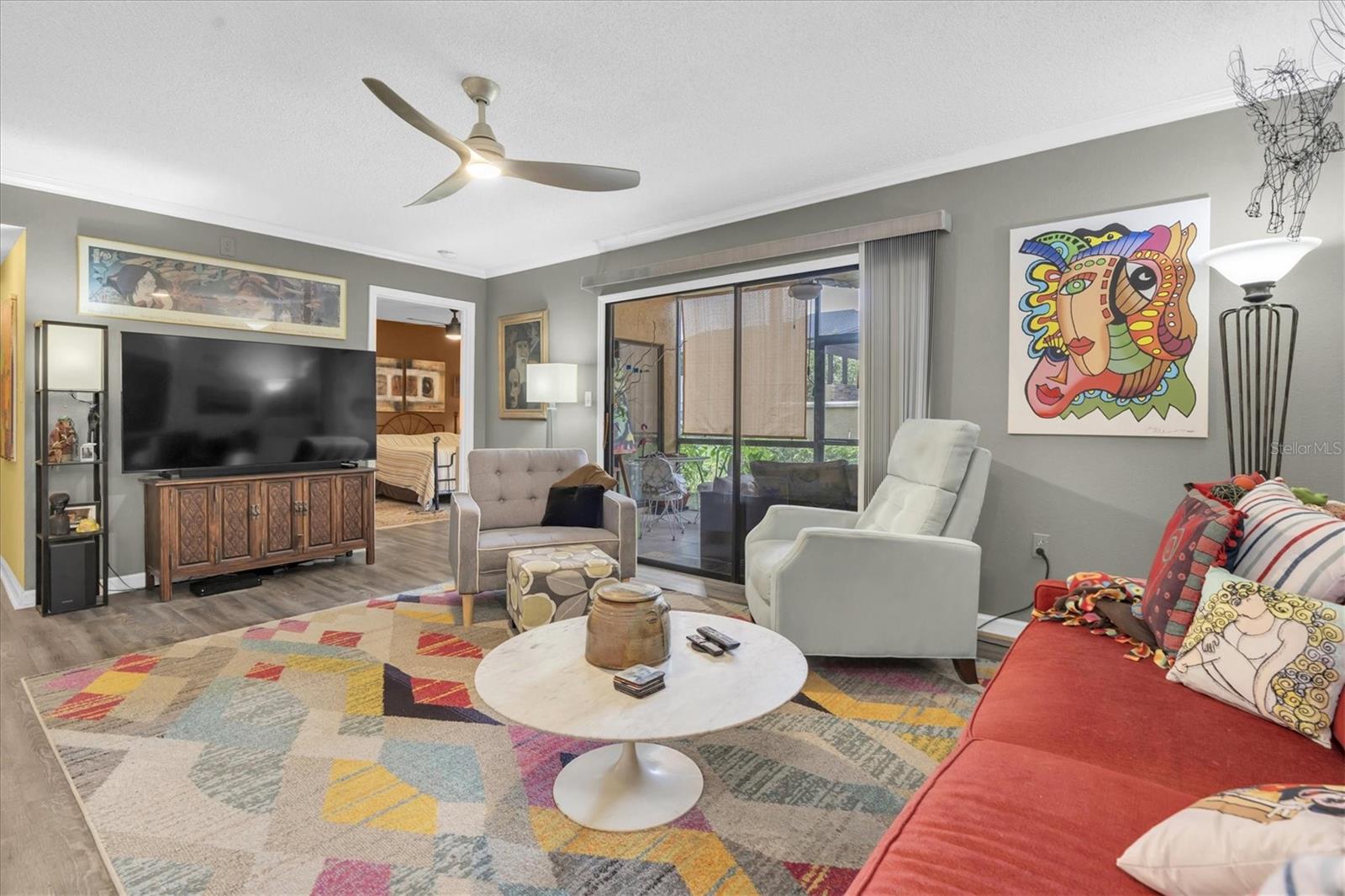 Ground-floor 3BR/2BA condo in the highly sought-after Bella Vista community in Seminole! This NO STAIRS unit is ideally located next to the pool and dog park, with a private back patio entrance just steps from the resort-style pool and spa. Inside, the spacious living room is filled with natural light, thanks to a wall of windows and a large sliding glass door that opens to the patio. The primary suite features an en-suite bathroom and its own private access to the outdoor space, offering a perfect blend of comfort and privacy. Enjoy peace of mind with major updates, including a new roof, A/C (5 years old), water heater (2 years old), and washer & dryer (2 years old). The Bella Vista community is packed with amenities designed for comfort and leisure. Residents can relax by the resort-style pool with a built-in grill area, ideal for weekend get-togethers. Scenic wooden docks throughout the property provide tranquil spots for fishing or unwinding by the water—each dock even includes its own grill for added enjoyment. The community also features sidewalks and walking paths, and the pet-friendly green spaces come with no weight restrictions, so all furry friends are welcome. The HOA covers exterior maintenance, water, sewer, trash, and lawn care, making it easy to enjoy a low-maintenance, Florida lifestyle.