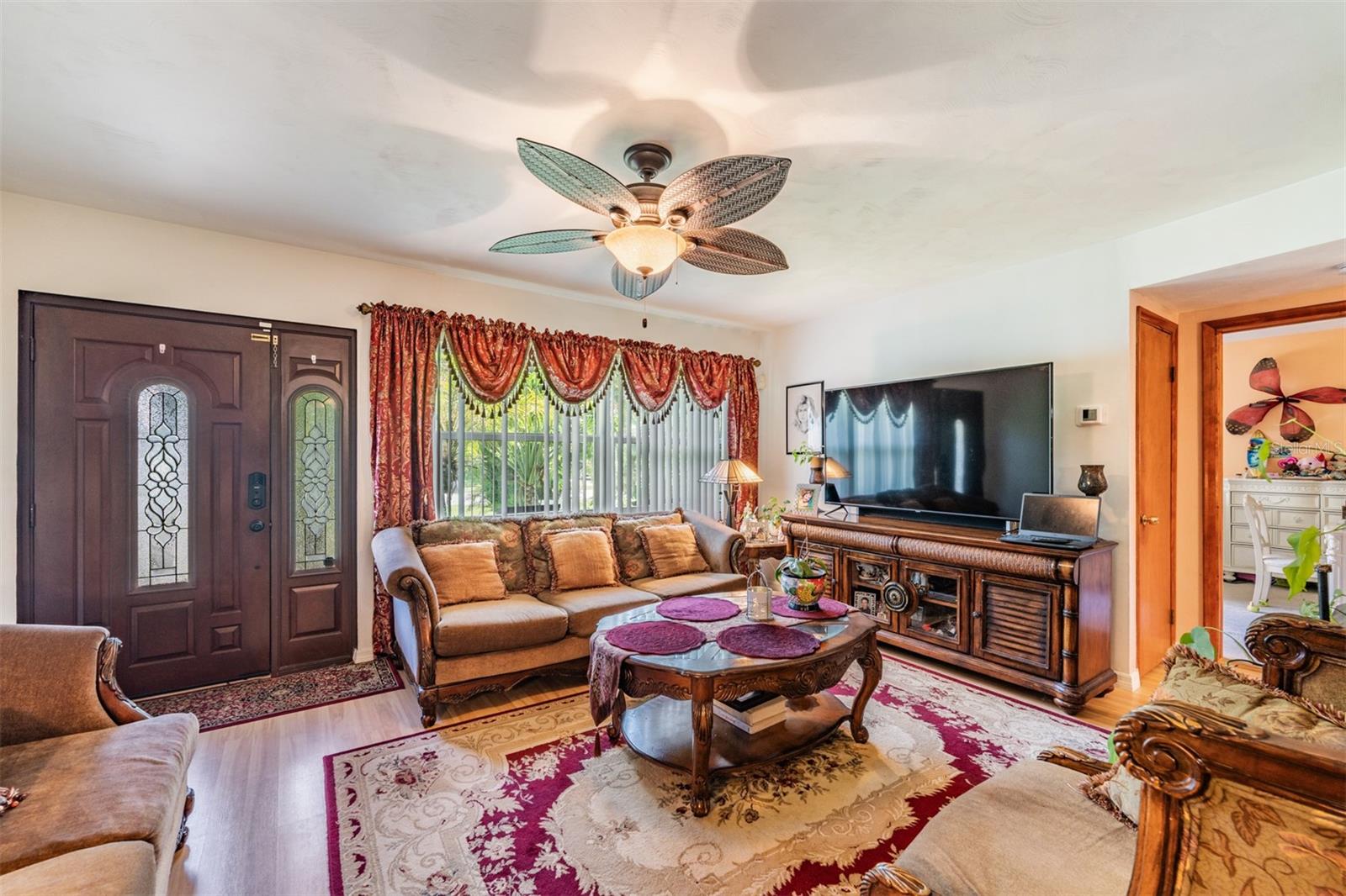 Welcome to this charming and energy-efficient 3-bedroom, 1 full bath single-story home in the heart of Largo! This thoughtfully maintained residence combines comfort, functionality, and style, offering a seamless blend of indoor and outdoor living. Step inside to an inviting open layout featuring a spacious living room/dining room combo, warm solid wood cabinetry, and stunning stone countertops in the kitchen. Relax and unwind in the spa-like bathroom complete with a Jacuzzi tub your personal retreat after a long day. Cozy up next to the fireplace on cool evenings or enjoy Florida’s sunshine in the large, lush garden surrounded by mature landscaping. Extra storage with an outdoor shed adds convenience, and the closed-circuit security system, owned alarm, and smoke detectors provide peace of mind. Energy-conscious upgrades include additional insulation and window film for improved efficiency all year round. Located just minutes from Largo Central Park, Largo Medical Center, Highland Recreation Complex, and East Bay Shopping Plaza, this home is perfectly positioned for both relaxation and convenience. Zoned for Largo High School, Largo Middle, and Mildred Helms Elementary, and close to all your daily essentials, this property has it all. Don’t miss your chance to own this move-in ready gem with character, security, and modern comfort!