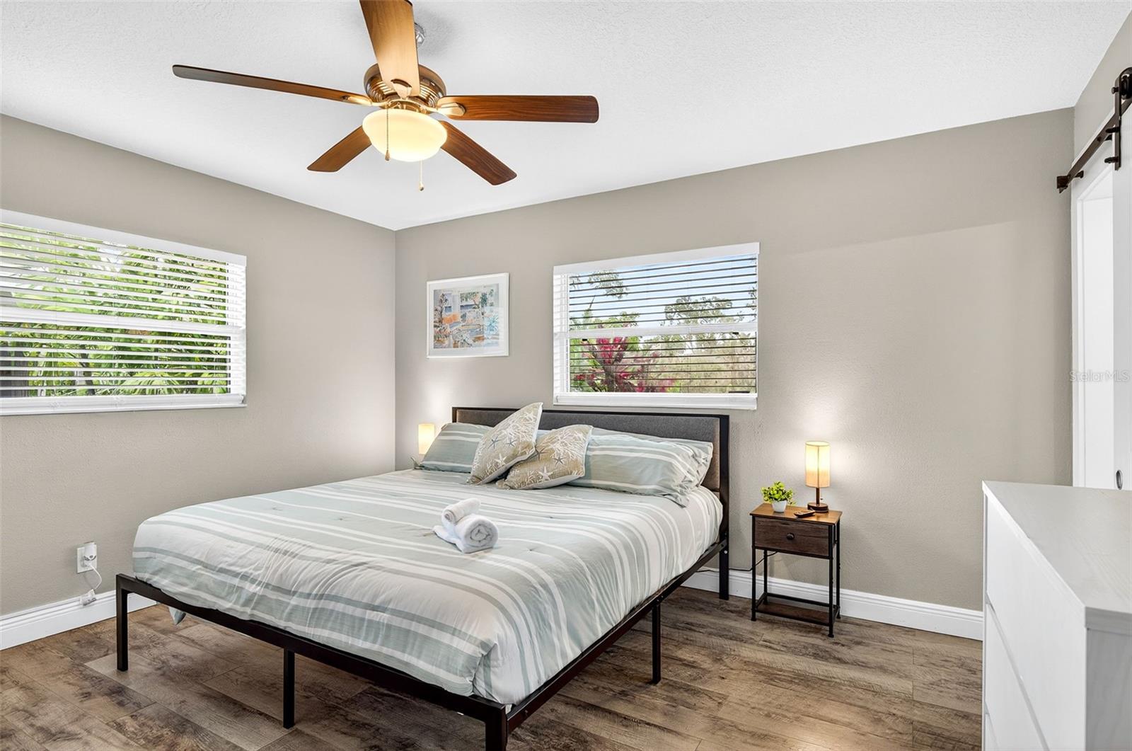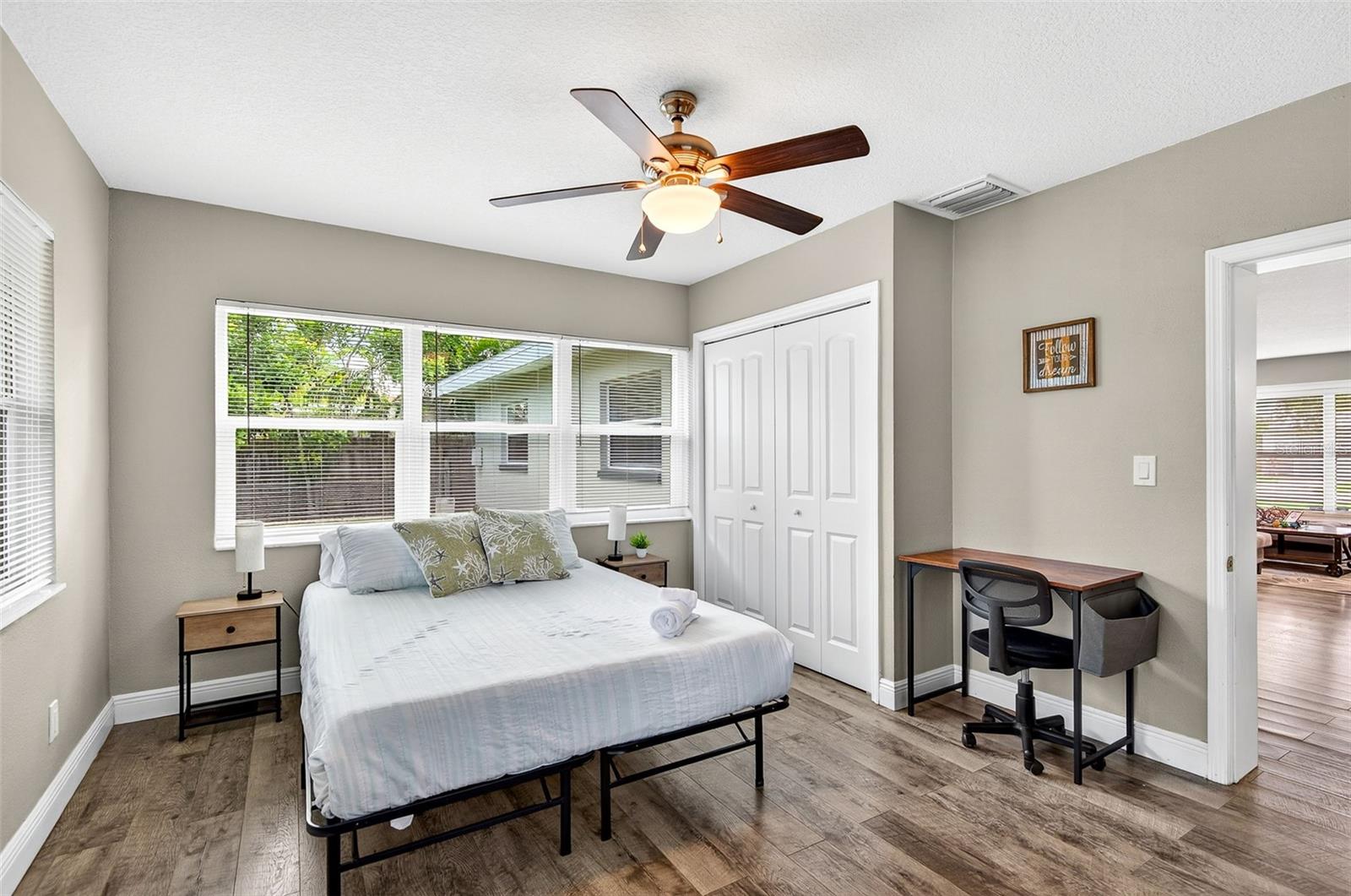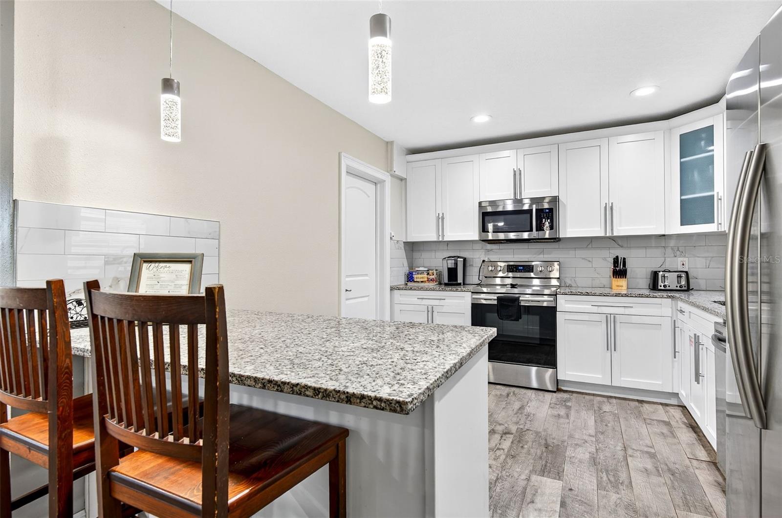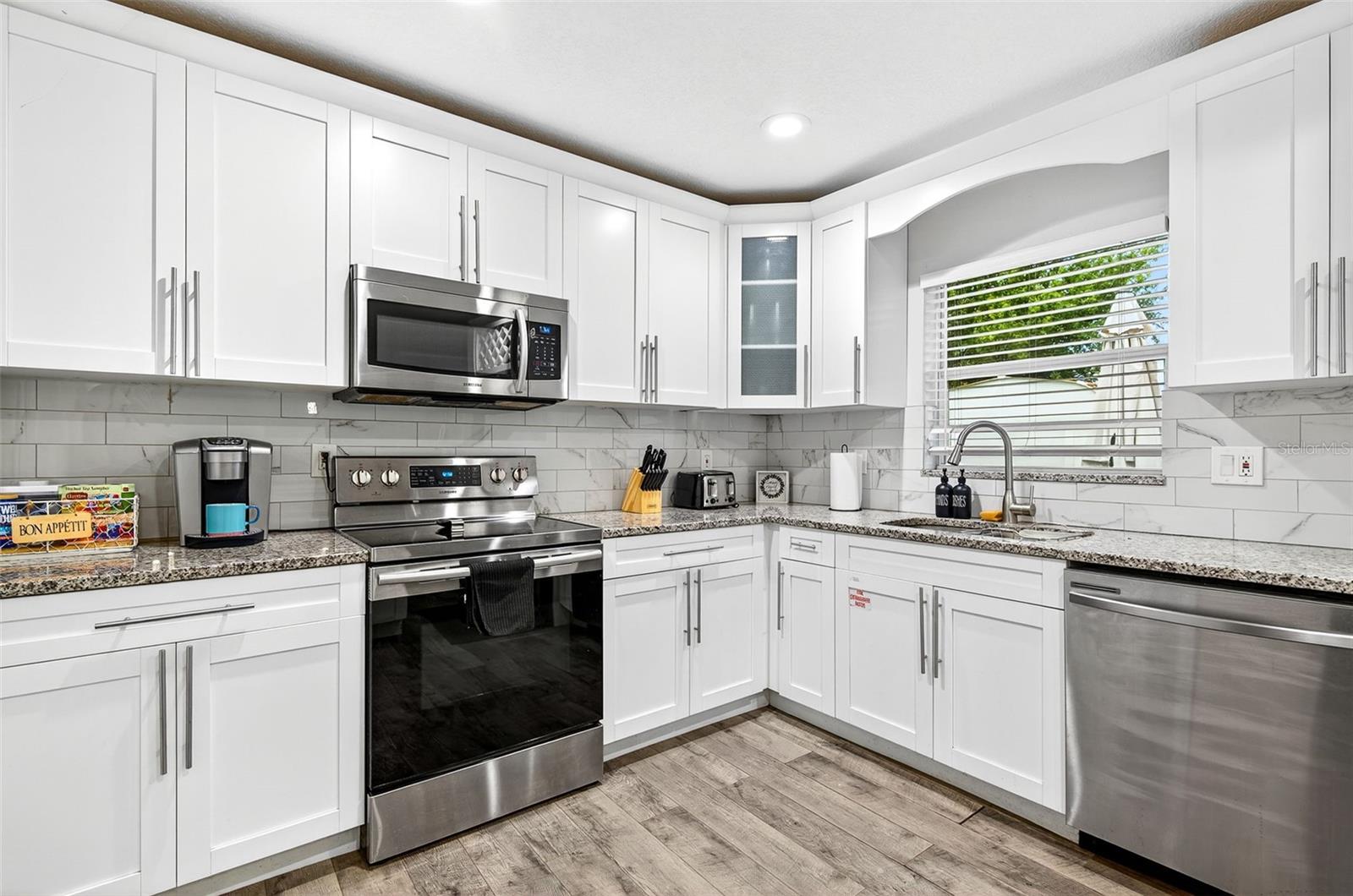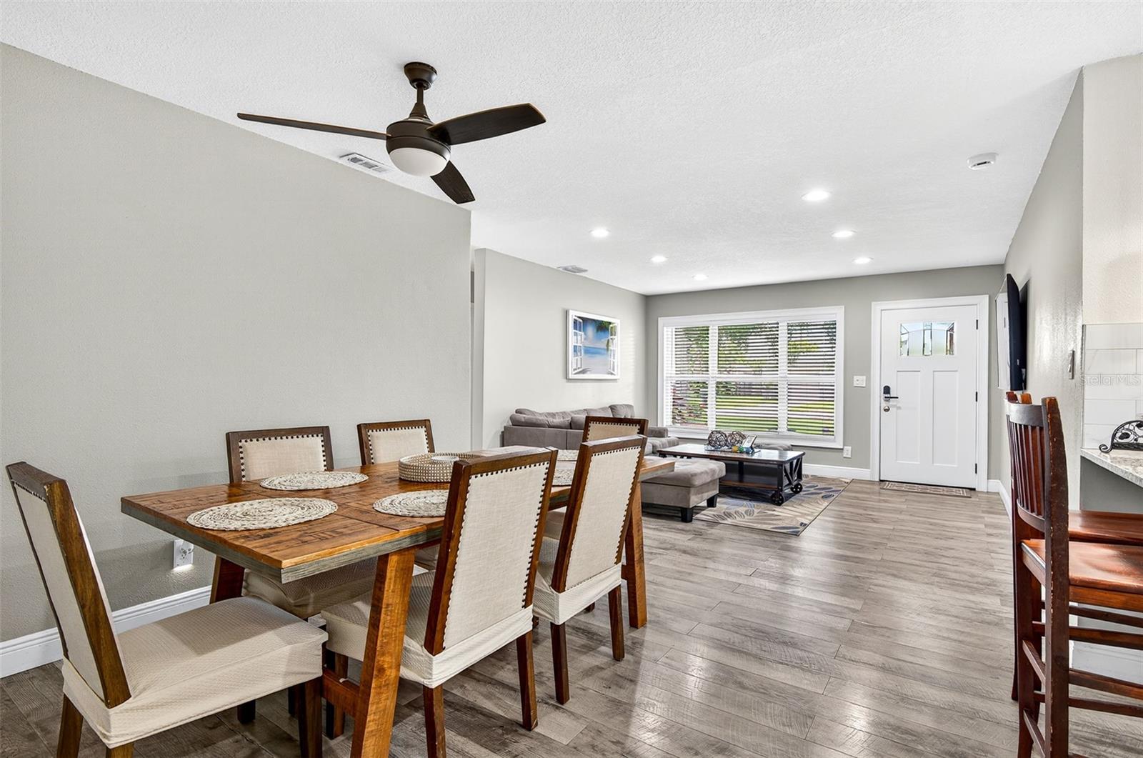 Charming 4-Bedroom 2-Bathroom Home in Central Largo – Updated Interior & Serene Setting. Welcome to this beautifully updated 4-bedroom, 2-bath home offering 1,432 sq ft of comfortable living space in a quiet, centrally located Largo neighborhood. Situated on a peaceful street with mature landscaping, this move-in ready home combines modern upgrades with classic charm. Step inside to discover an inviting open-concept layout featuring engineered hardwood flooring throughout and abundant natural light. The spacious living and dining areas flow effortlessly into the stunning kitchen, complete with granite countertops, white shaker cabinets, stainless steel appliances, and a stylish subway tile backsplash. The generously sized primary suite features walls of windows and a ceiling fan, while both bathrooms are tastefully renovated with modern tile work, updated vanities, and sleek fixtures. Additional highlights include a dedicated laundry room, fresh neutral paint, and a 1-car garage for added convenience. Enjoy the large, fully fenced backyard with a private patio area—perfect for entertaining or relaxing in the Florida sunshine. Located just minutes from beaches, parks, shopping, and dining, this home offers easy access to everything Largo has to offer. Don’t miss your chance to own this move-in ready gem in a desirable location!