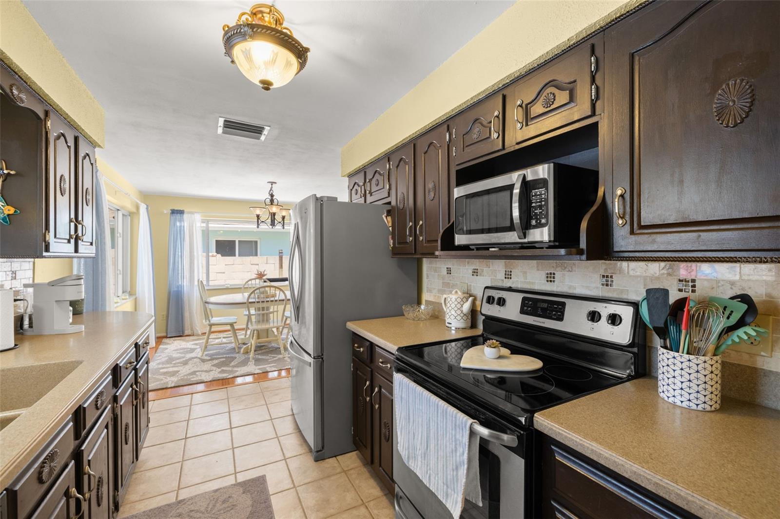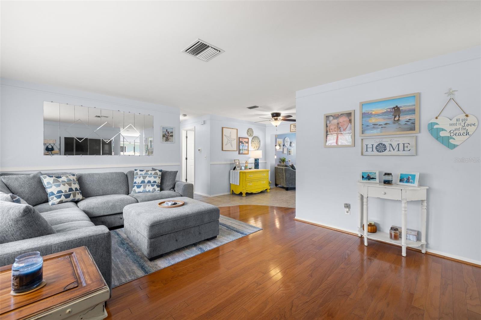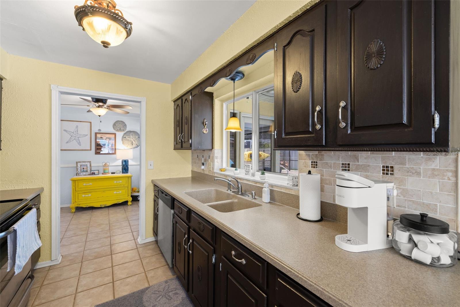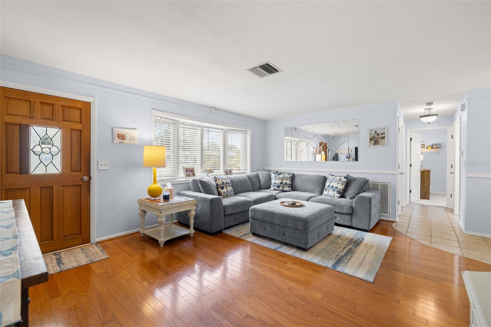 Welcome Home to your Sunny Slice of Paradise! This beautifully updated 2-bedroom, 2-bathroom home radiates warmth and charm from the moment you arrive. Pride of ownership is abundant in every detail. Freshly painted inside and out in 2024, this home features incredible curb appeal with vibrant landscaping, coastal charm, and a circular driveway that welcomes you home. A single car garage is perfect for parking your car or storing your toys. Step inside to find spacious living areas filled with natural light. Wood and tile floors throughout the main living space provide easy upkeep. The Florida room is warm and cozy with a fireplace and a view of the lanai. Both oversized bedrooms have brand new carpet, offering comfort and flexibility for use of space. The main bathroom has been thoughtfully renovated with stylish finishes, creating a relaxing spa like feel. The heart of this home is the backyard oasis. Enjoy year-round relaxation in the screened-in lanai, complete with a sparkling pool, new chlorinator (2024), and plenty of room to entertain. The paver patio pool deck is a nice upgrade. The entire backyard is designed with low-maintenance Zeroscape landscaping and astroturf, perfect for those who want beauty without the upkeep. Additional updates include a NEW AC system (2024) and NEW ROOF (2018), offering both comfort and peace of mind. No flood zone here, this home stayed high and dry and unaffected by the storms. The flexible floorplan allows for a 3rd bedroom to easily be added and for an ensuite bathroom added to the primary suite. Buy a 2/2 and make it a 3/3 with very little effort, the options are endless! Largo allows for short term rentals, think vacation rental or Air BnB. Located in a friendly neighborhood close to shopping, dining, and only 15 minutes to the Gulf beaches, this home is move-in ready and waiting for its next chapter!