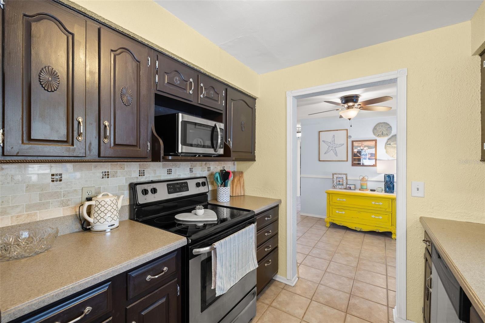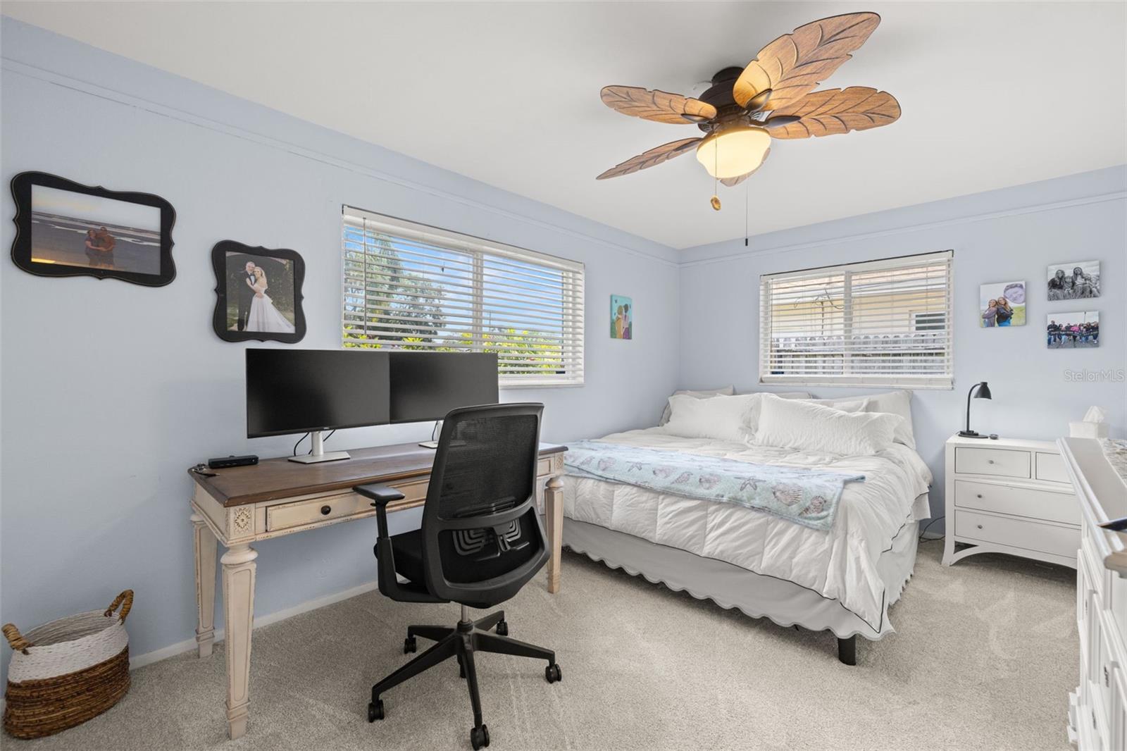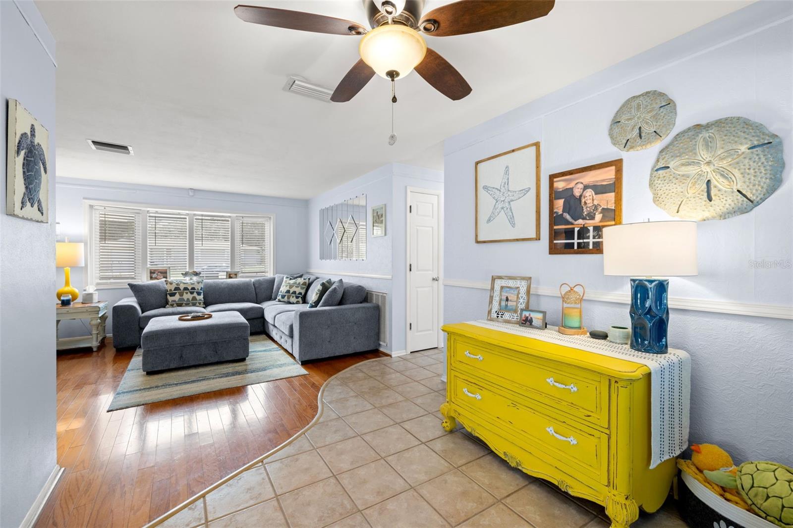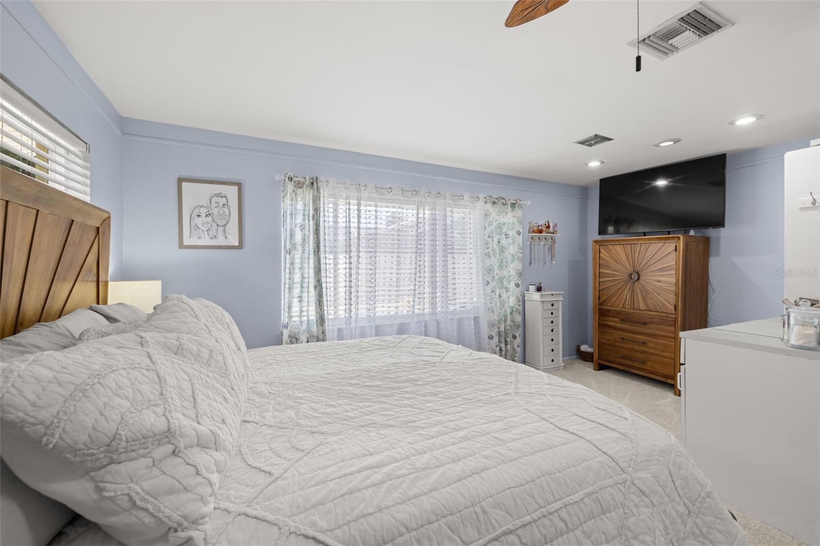 Welcome Home to your Sunny Slice of Paradise! This beautifully updated 2-bedroom, 2-bathroom home radiates warmth and charm from the moment you arrive. Pride of ownership is abundant in every detail. Freshly painted inside and out in 2024, this home features incredible curb appeal with vibrant landscaping, coastal charm, and a circular driveway that welcomes you home. A single car garage is perfect for parking your car or storing your toys. Step inside to find spacious living areas filled with natural light. Wood and tile floors throughout the main living space provide easy upkeep. The Florida room is warm and cozy with a fireplace and a view of the lanai. Both oversized bedrooms have brand new carpet, offering comfort and flexibility for use of space. The main bathroom has been thoughtfully renovated with stylish finishes, creating a relaxing spa like feel. The heart of this home is the backyard oasis. Enjoy year-round relaxation in the screened-in lanai, complete with a sparkling pool, new chlorinator (2024), and plenty of room to entertain. The paver patio pool deck is a nice upgrade. The entire backyard is designed with low-maintenance Zeroscape landscaping and astroturf, perfect for those who want beauty without the upkeep. Additional updates include a NEW AC system (2024) and NEW ROOF (2018), offering both comfort and peace of mind. No flood zone here, this home stayed high and dry and unaffected by the storms. The flexible floorplan allows for a 3rd bedroom to easily be added and for an ensuite bathroom added to the primary suite. Buy a 2/2 and make it a 3/3 with very little effort, the options are endless! Largo allows for short term rentals, think vacation rental or Air BnB. Located in a friendly neighborhood close to shopping, dining, and only 15 minutes to the Gulf beaches, this home is move-in ready and waiting for its next chapter!