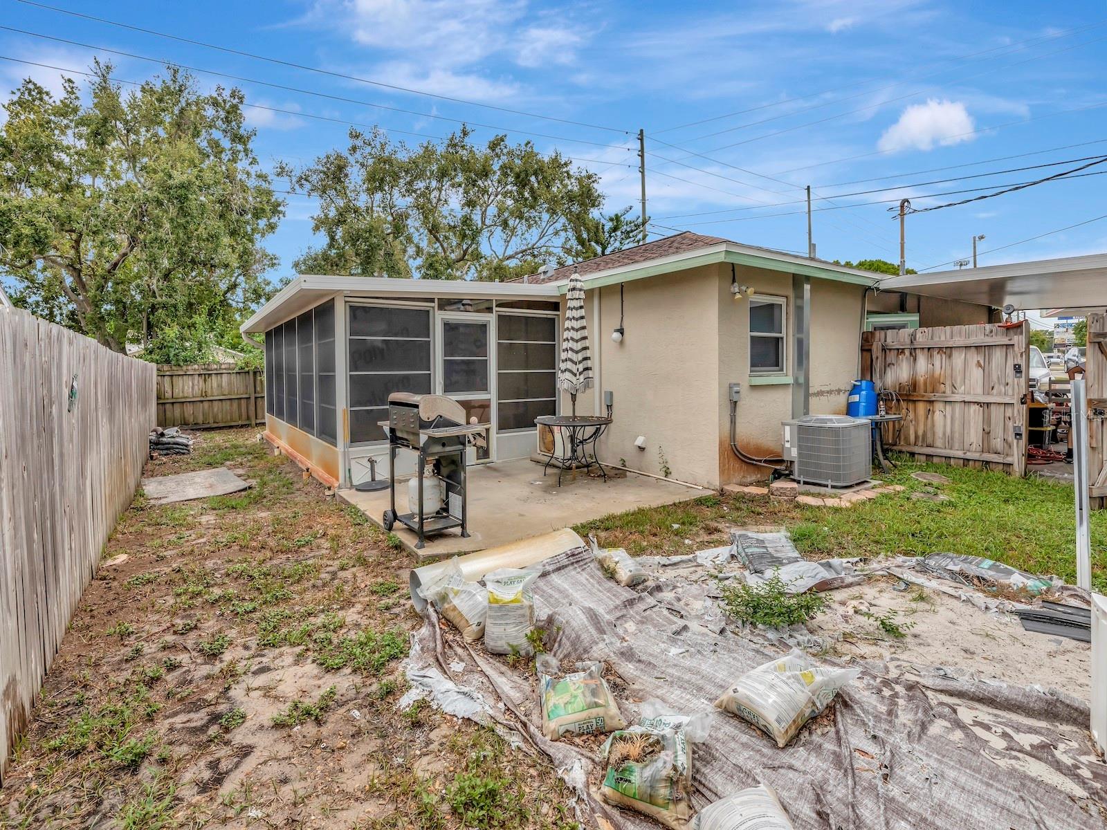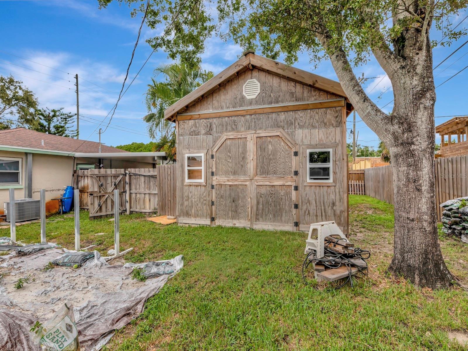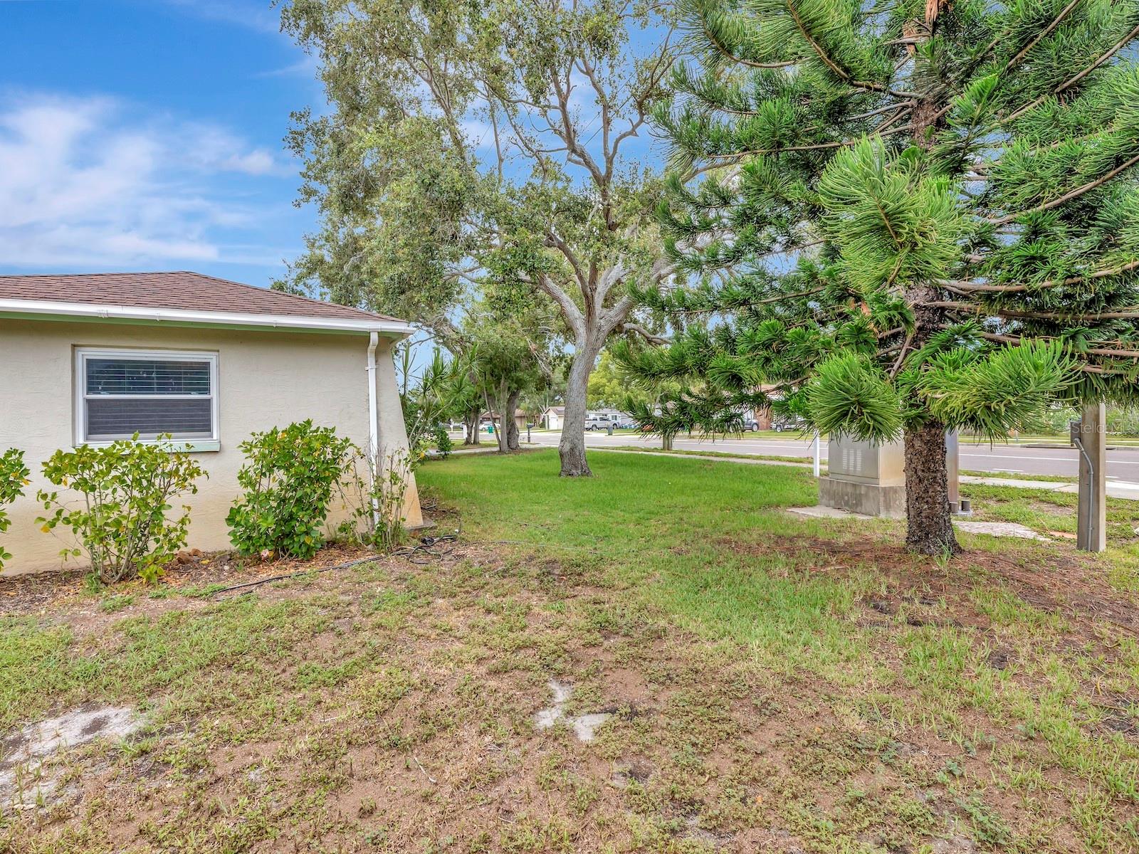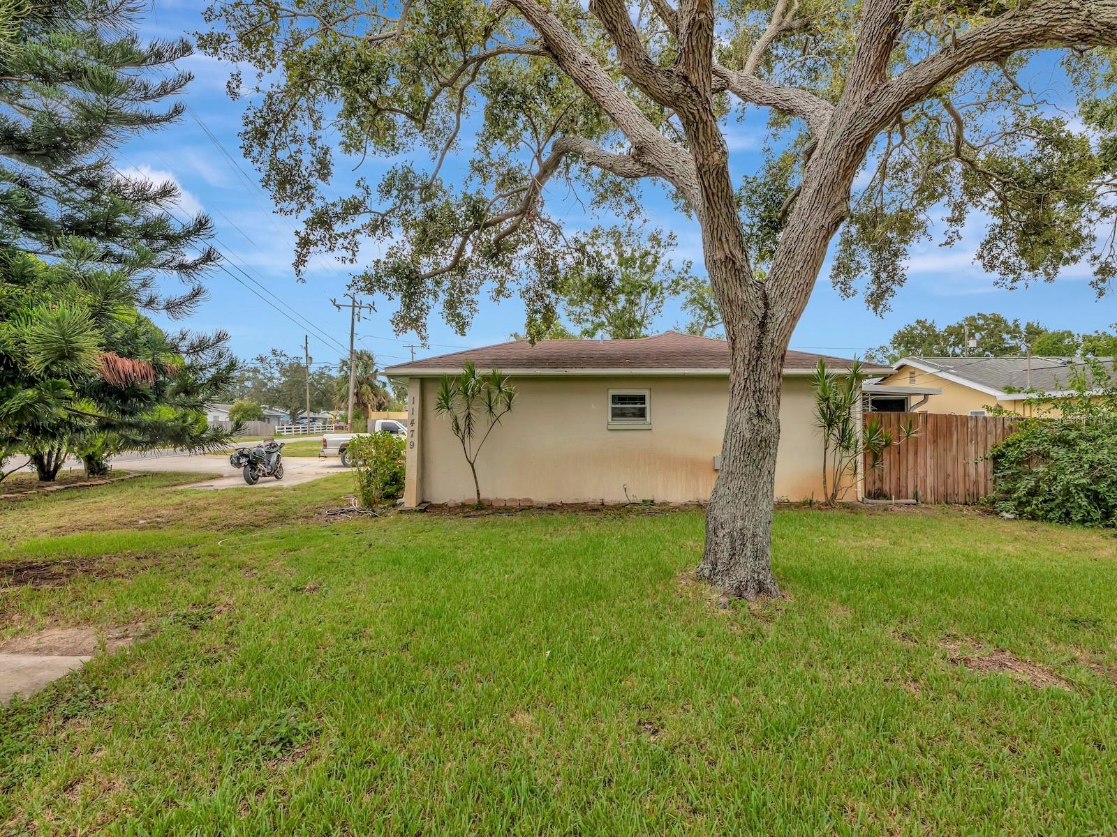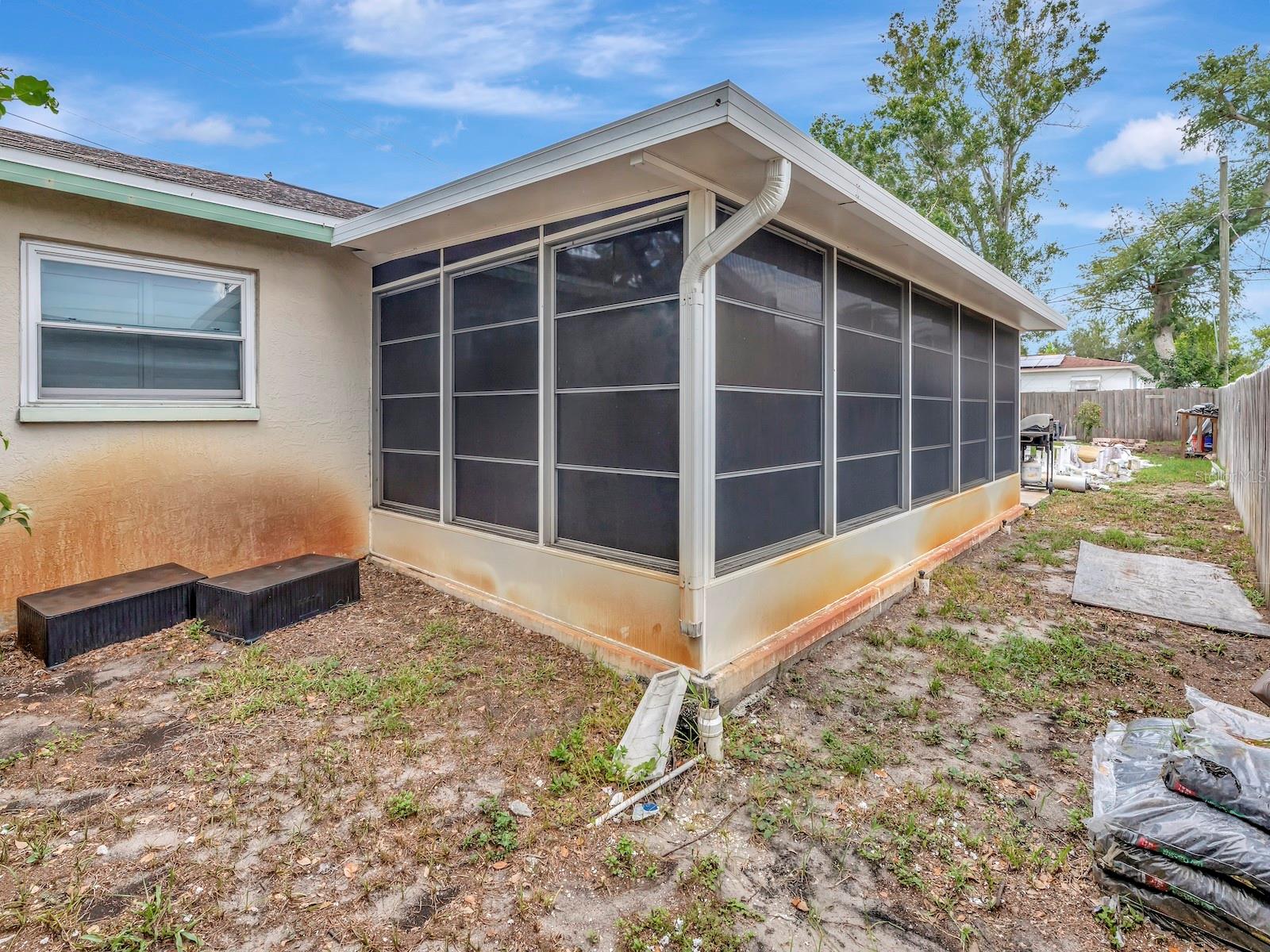 50K PRICE REDUCTION!!!! HURRY DON'T LET THIS ONE PASS YOU BY. This 2bdr 2 bathroom home is located in an oversized corner lot. The home has mature trees aligning the front of the hone for privacy. This home has a big enclosed work barn made with permits. The barn has a built wood elevator and has plenty of space for storage for your work equipment and tools. When you first arrive to the home to the right of the front door is a screen in front porch with a built in wood bench and a built in wood planter. Its a very cozy sit down area It has roller shades to cover the sun. The home has a nice partially glass entry door. once inside you have an open concept of living room and dining room with French doors opening to the enclosed sun room. The sun room has been divided with drywall to make an additional 3rd bedroom. Perfect for a home office or 3rd bedroom with an additional split AC in the sun room. The kitchen is very nice and bright with an Energy Qualified Refrigerator and dishwasher, exhaust fan and oven. Just off the kitchen is the laundry room with a utility sink that with a pocket door for privacy. The laundry room also leads to the garage. This home has a one car garage with hurricane garage door and newer hurricane windows. This home comes with Hurricane Shutters, Rain Gutters, Sprinkle ready system. A water well. The home is fenced in all around for privacy. This home is only a short drive to the Beach, close to Walsingham Park, Heritage Village and The Botanical Garden.