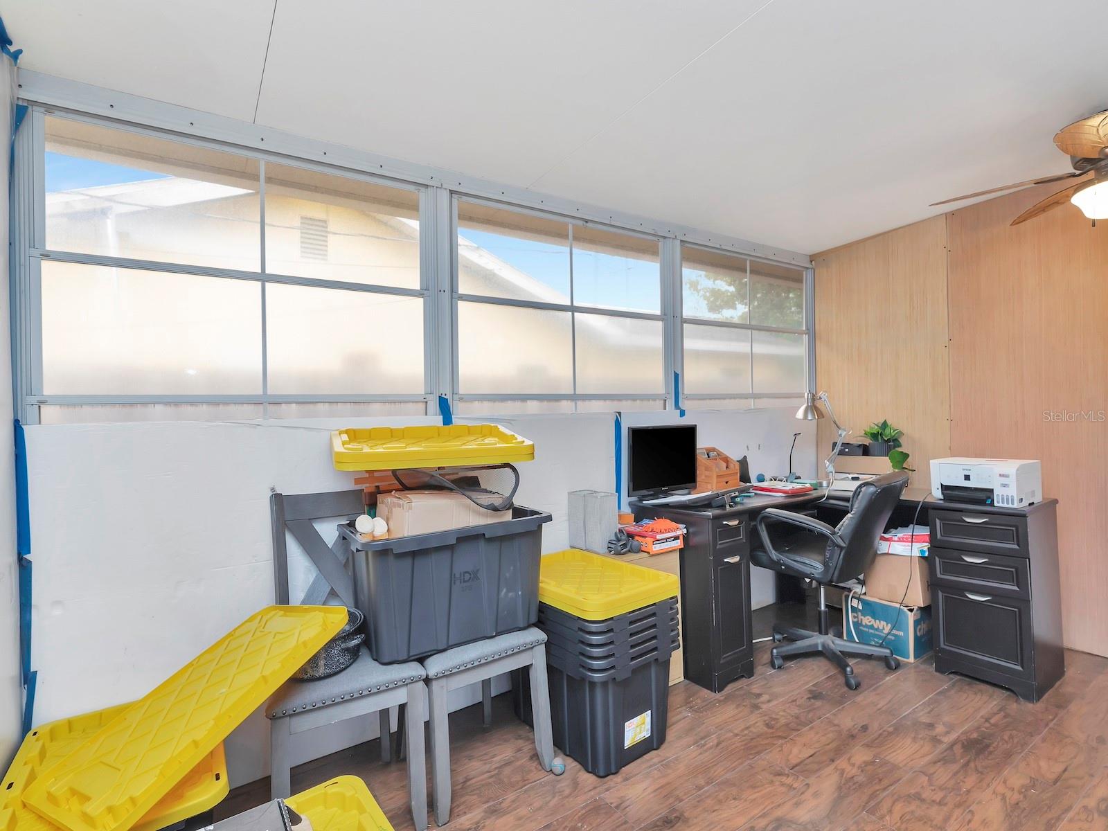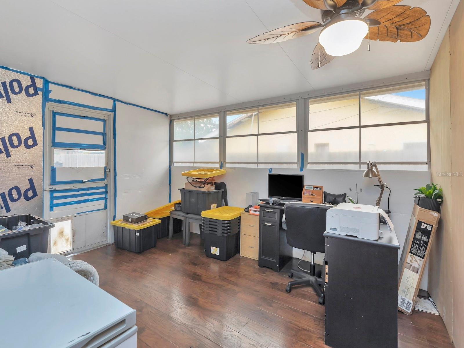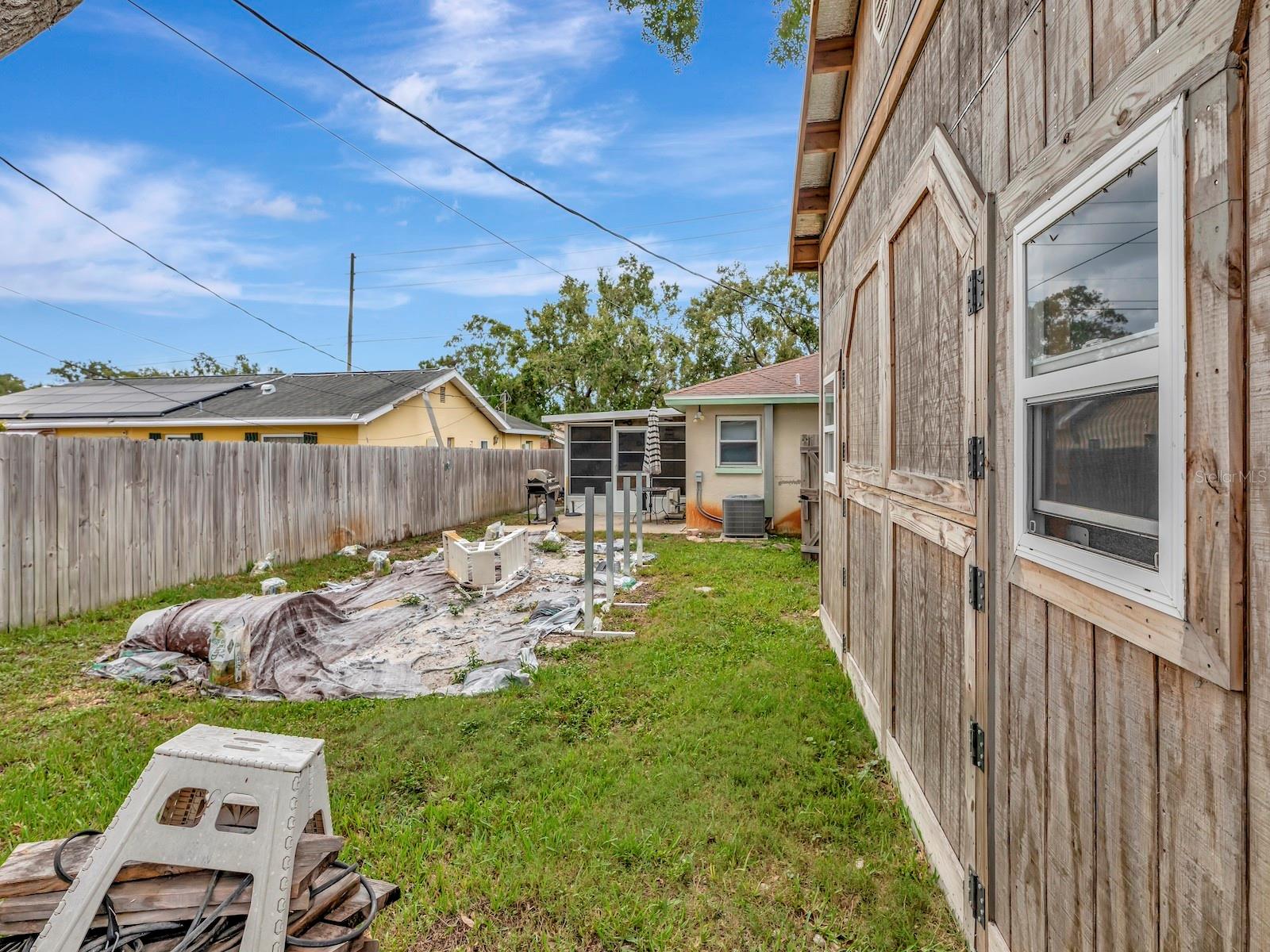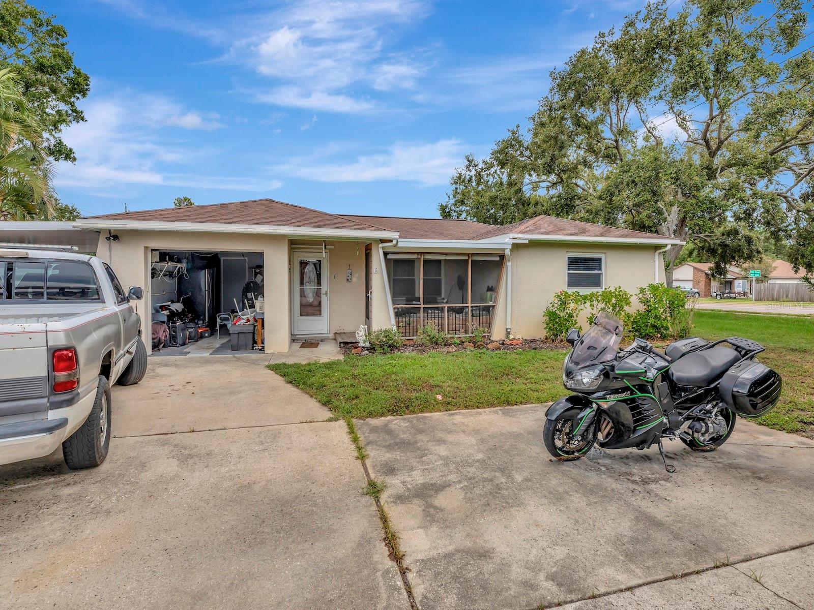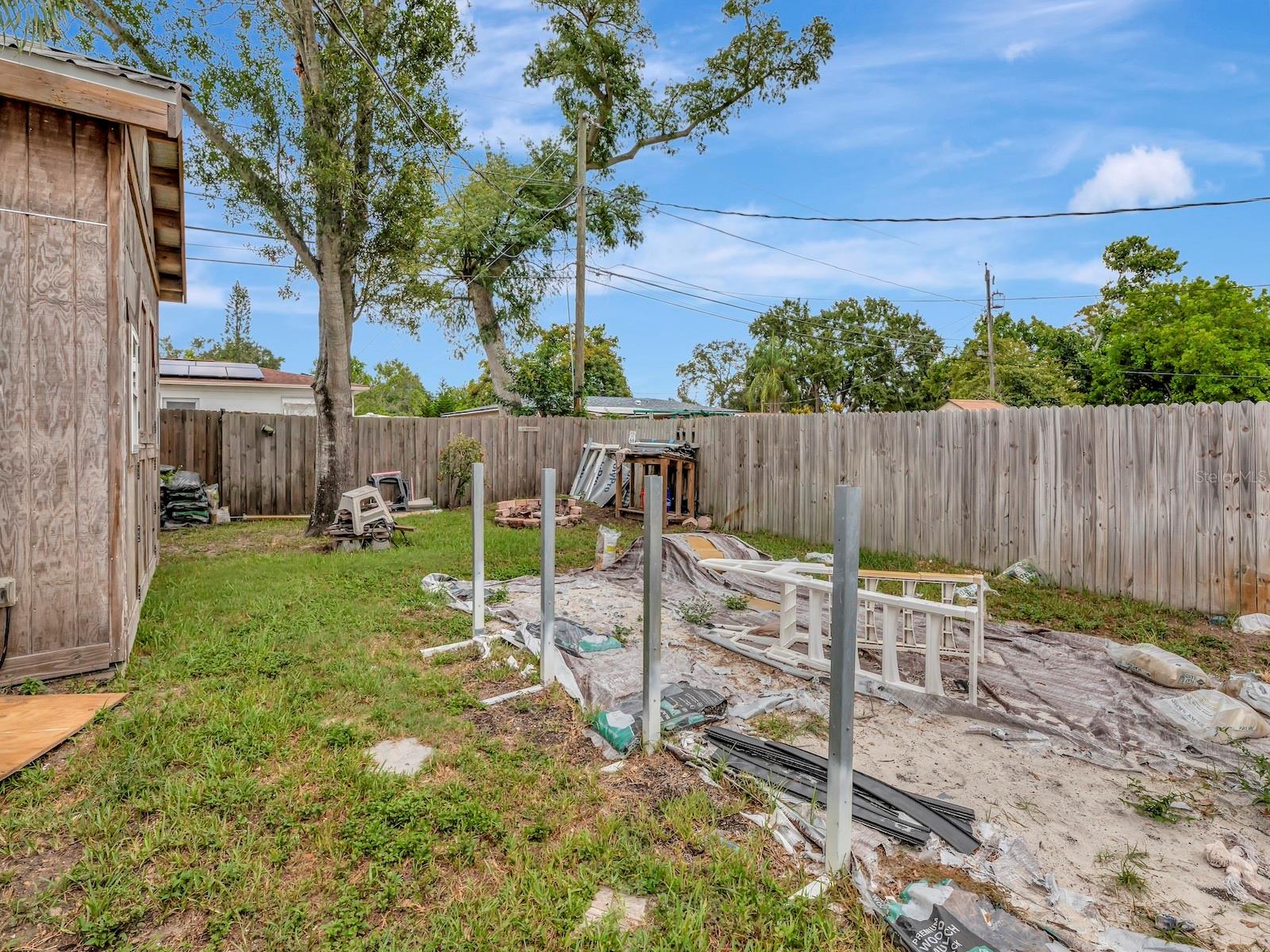 50K PRICE REDUCTION!!!! HURRY DON'T LET THIS ONE PASS YOU BY. This 2bdr 2 bathroom home is located in an oversized corner lot. The home has mature trees aligning the front of the hone for privacy. This home has a big enclosed work barn made with permits. The barn has a built wood elevator and has plenty of space for storage for your work equipment and tools. When you first arrive to the home to the right of the front door is a screen in front porch with a built in wood bench and a built in wood planter. Its a very cozy sit down area It has roller shades to cover the sun. The home has a nice partially glass entry door. once inside you have an open concept of living room and dining room with French doors opening to the enclosed sun room. The sun room has been divided with drywall to make an additional 3rd bedroom. Perfect for a home office or 3rd bedroom with an additional split AC in the sun room. The kitchen is very nice and bright with an Energy Qualified Refrigerator and dishwasher, exhaust fan and oven. Just off the kitchen is the laundry room with a utility sink that with a pocket door for privacy. The laundry room also leads to the garage. This home has a one car garage with hurricane garage door and newer hurricane windows. This home comes with Hurricane Shutters, Rain Gutters, Sprinkle ready system. A water well. The home is fenced in all around for privacy. This home is only a short drive to the Beach, close to Walsingham Park, Heritage Village and The Botanical Garden.