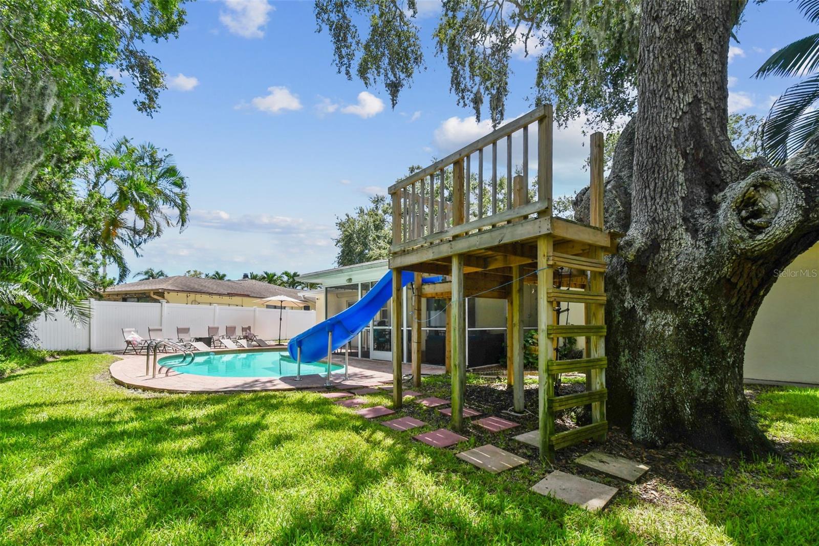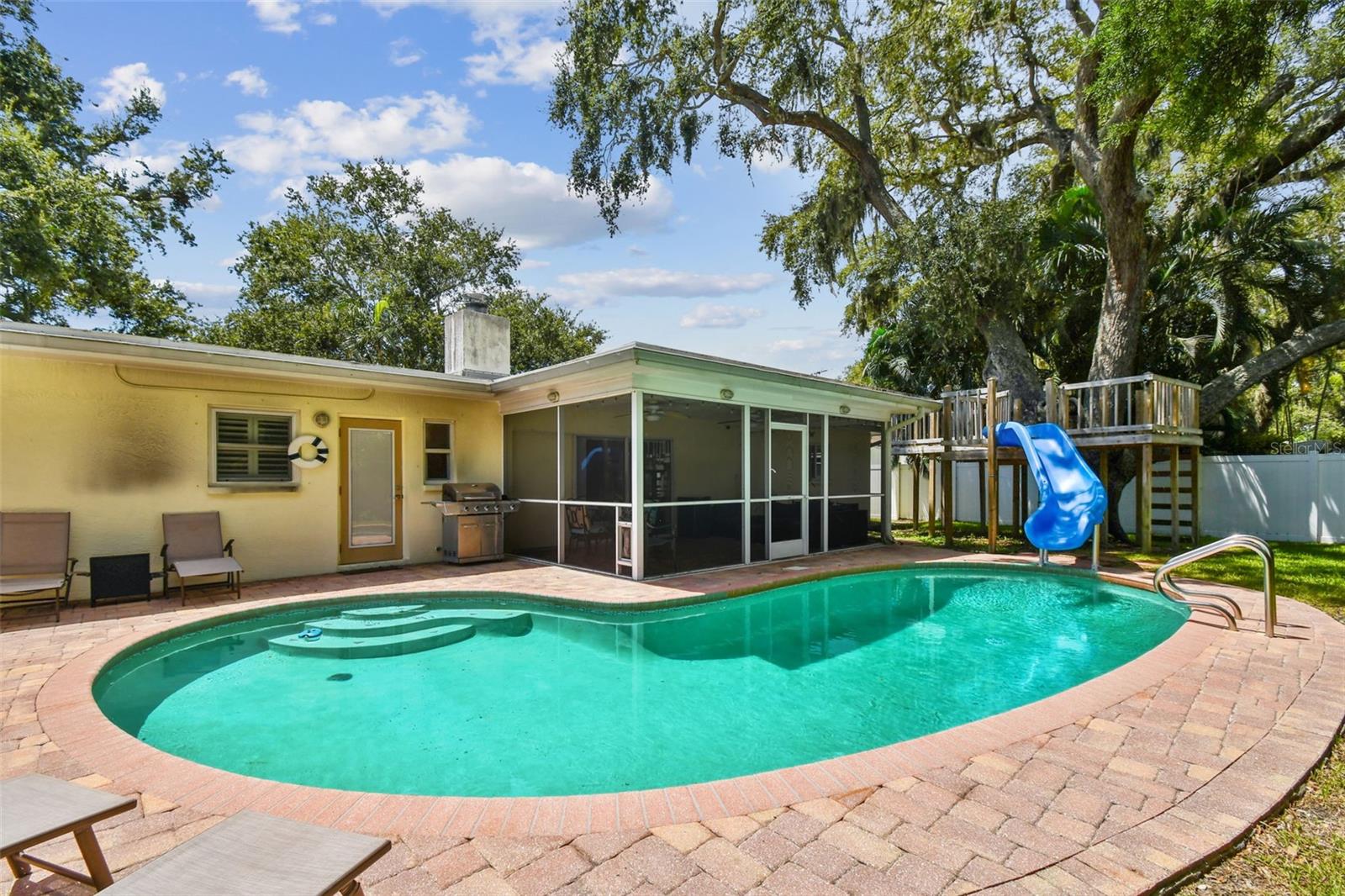 Beautifully updated pool home in the desirable Kimberly Oaks neighborhood. Incredible location. This 4 bedroom/2.5 bath home is less then 3 miles from Indian Rocks Beach, and the golf courses, restaurants and shops of Belleair. The open concept kitchen has newer quartz countertops, pewter appliances, an island breakfast bar, and a coffee station. The home’s split-floor plan provides privacy for the primary bedroom suite and includes direct access to the pool/patio area. The family entertainment room includes a wood burning fireplace and opens to the large, screened lanai. Bedrooms two and three share a Jack-n-Jill bath. The fourth bedroom is also perfect space for an in-home office with a half-bath for privacy or guests. The backyard is a ‘must see’ with a gorgeous pool, paver patio, and custom-built treehouse with a water slide. NOT A FLOOD ZONE OR EVACUATION ZONE. Easy walk to the recreation center, fitness center and many other amenities. Short bike ride to Walsingham Park, the Pinellas Trail, and the Botanical Gardens. A wonderful home for all ages in a quiet friendly neighborhood. You will feel like you’re on vacation year-round. Incredible value for a property with so much to offer!... "Option to purchase furnished for a true turn-key rental for maximum cashflow."