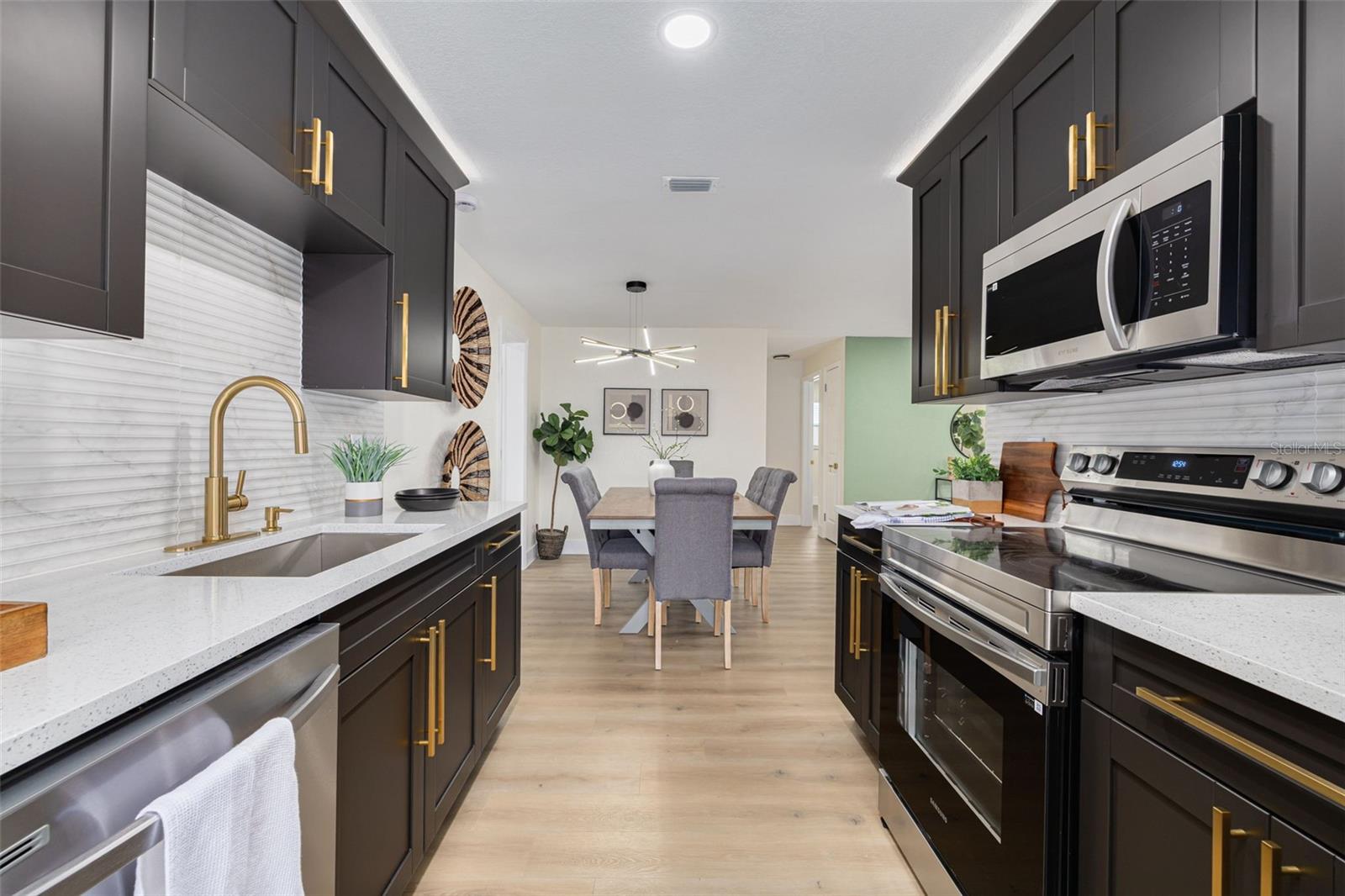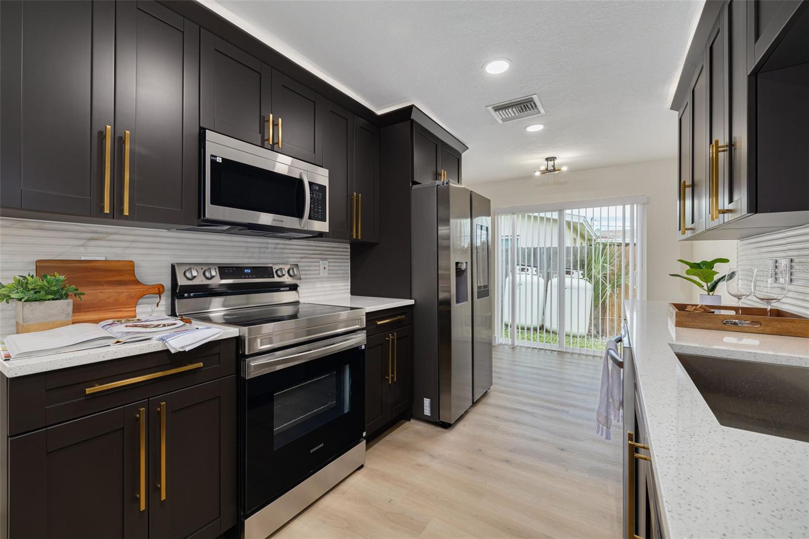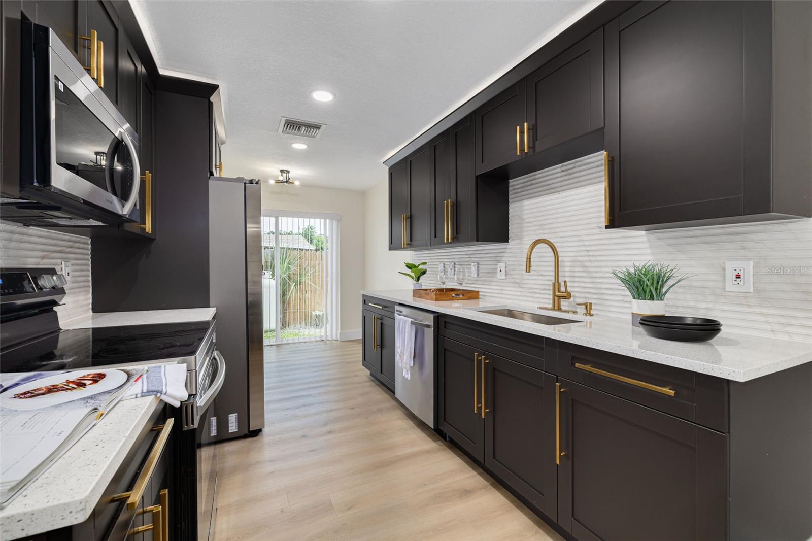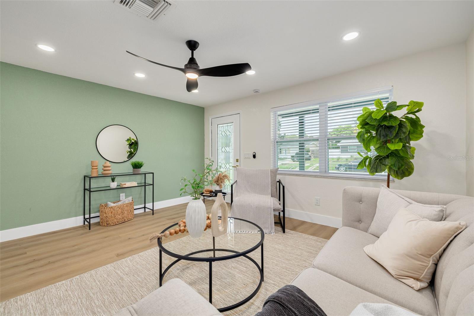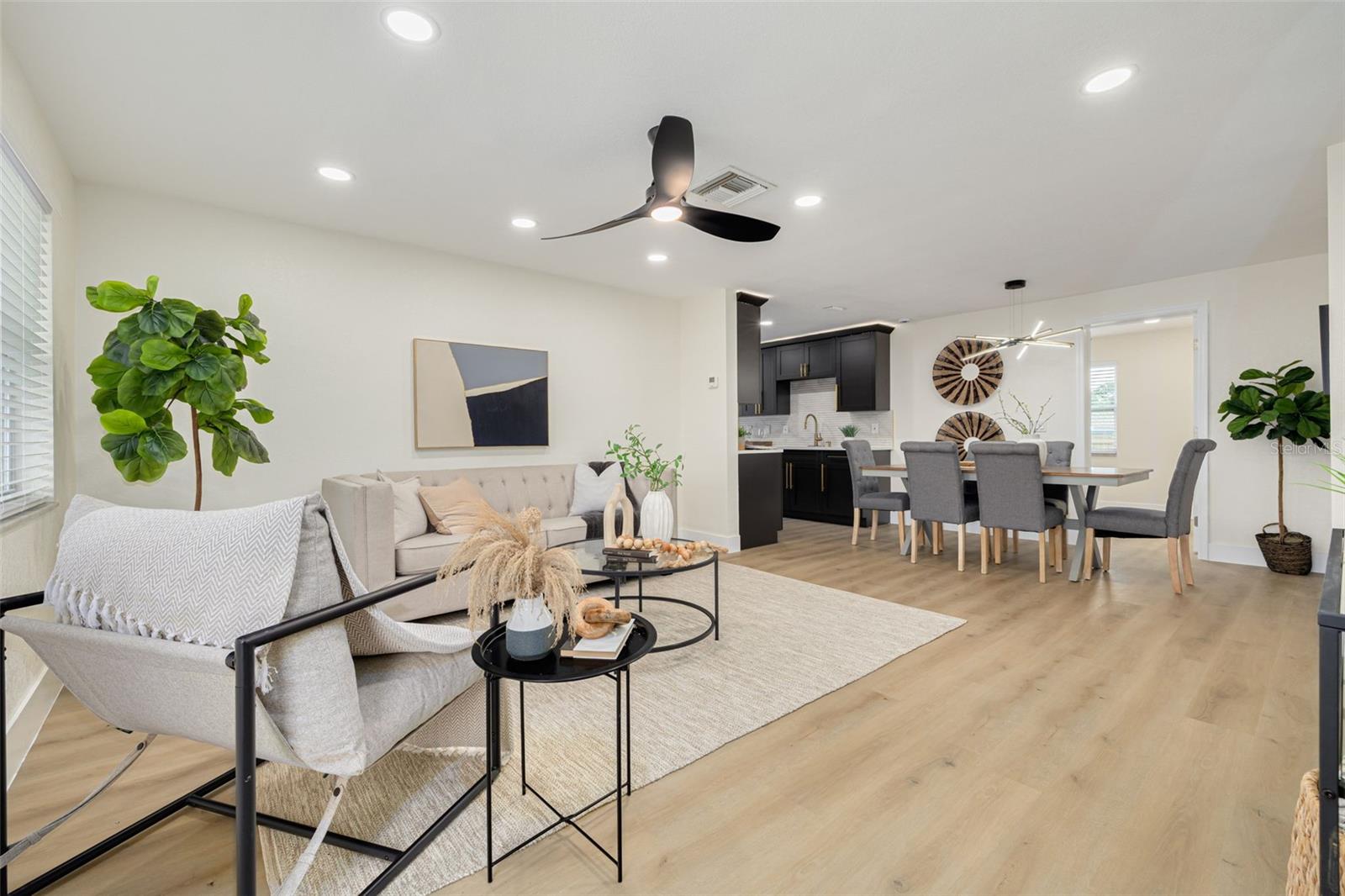 ABSOLUTELY GORGEOUS, METICULOUSLY AND TASTEFULLY RENOVATED, 3 BEDROOM/ 2 BATH/ 1CG RESIDENCE, centrally located. It's a true touch of class that sets this home apart from others. This exceptional property features a welcoming, modern, open floor plan concept that seamlessly connects a large living room-dining-kitchen combo, finished with a new, waterproof, contemporary, luxury vinyl plank Flooring. The newly renovated kitchen is spectacular, well lit with an abundance of quartz countertops and beautiful tile backsplash, all new soft-close, shaker hardwood cabinets and brand new Samsung appliances with a smart hub center build-in on the refrigerator. The generous floor plan of the primary suite is beautifully designed, with a walk-in closet and a contemporary barn door. It's boasting a stylish en-suite bath with multi shower heads and features a seamless chic wall-glass shower. Both bathrooms showcase top-tier finishes and accessories. New AC system and, new attic insulation with high efficiency rate energy saving, new garage door and opener, all-new interior doors, new LED lighting accessories, and ceiling fans, new interior knock-down texture, upgraded landscaping, and the list goes on...Everything is newer including double pane windows, and water heater. The house is equipped with a propane gas-powered Electric Generator. It provides power to the house during any power outage. Located on an expansive lot, with a fenced, large back yard, where you can feel and enjoy the Gulf breeze on the large patio, offers a lot of outdoor family fun and relaxation. A perfect home that offers the BEST of Florida living at its finest, this home combines suburban tranquility with convenient access to nearby attractions. Enjoy the convenience of being within 5 miles from the pristine shores of world famous Gulf Beaches, 1/2 mile to the Highland Aquatic Center. An easy commute from all the entertainment you'll ever need! This fabulous home is ready to create all those beautiful memories to cherish with your family and friends! HIGH AND DRY, NON EVACUATION X ZONE. ALL YOU NEED TO DO IS MOVE IN AND ENJOY THIS AMAZING HOME!