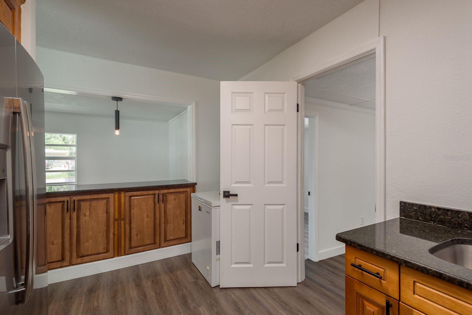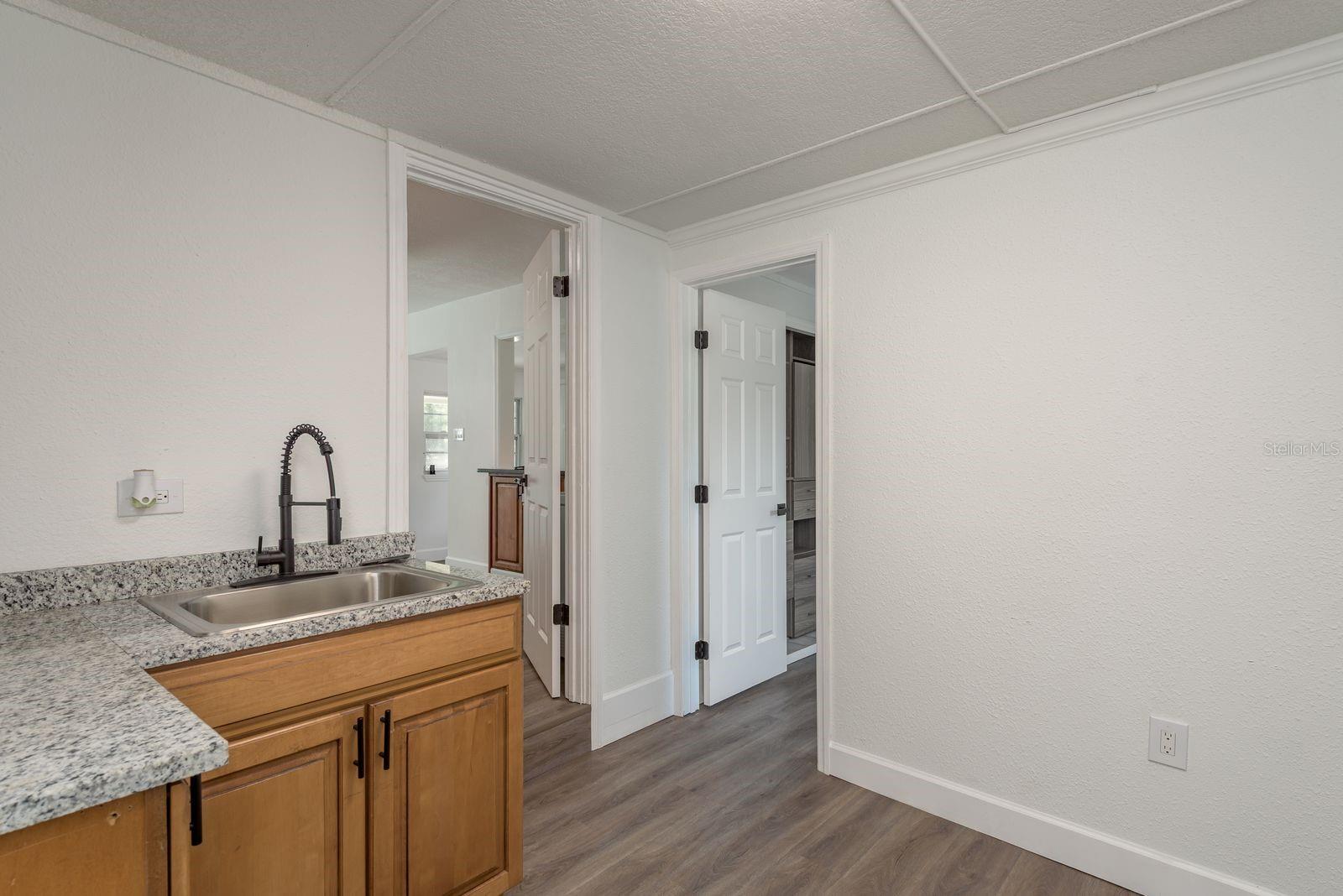 Back on Market due to buyer's financing! This updated property in Village Green is ready to be yours! This home features an attached "in-law" studio suite, complete with it's own NEW mini-split HVAC system, efficiency kitchen space, full bathroom and private entrance. Interior was recently updated including new vinyl flooring, light fixtures, kitchen appliances/cabinetry as well as both bathrooms. NEW ELECTRIC PANEL! Exterior features a fully fenced backyard with NEW fencing with tandem gates. Functional well water pump for irrigation! Roof recently replaced. No rear neighbors. One of my favorite parts of the home is the screen enclosed front porch with ceramic tile flooring, a great spot to relax. Flood Insurance NOT required! No HOA! Close to schools, shopping and beaches. Call today to schedule your private showing to see the true value of this home!