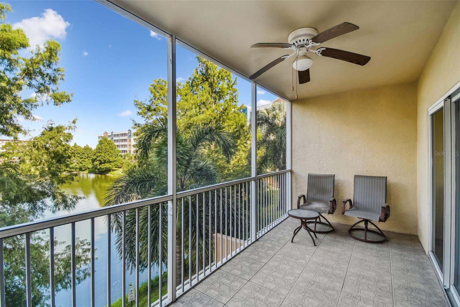 Welcome to Golf Lake Condominiums at East Bay, where everyday living feels like you're vacation. This 2nd Floor Condo is a spacious 1,576 sq. ft. 3-bedroom, 2-bathroom condo with a private 1-car garage; it offers true maintenance-free living in a secure, resort-style community. Just a few steps from the coded elevator, this home is designed for comfort, convenience, and peace of mind. The open floor plan features a roomy kitchen with space for a bistro-style table, a seamless living/dining area, and a split-bedroom layout for privacy. The primary suite opens to a screened balcony overlooking a relaxing pond and the perfect spot for morning coffee or evening relaxation. A walk-in closet and dual vanities enhance the primary bath, while the front room easily flexes as a home office or guest bedroom. Resort-inspired amenities include two heated pools, a jacuzzi, golf course access, and a clubhouse with kitchen, meeting space, and a social room for Golf Lake resident events. Built with solid cement block construction and sprinklers throughout, the building is well maintained. Comprehensive HOA fees cover nearly everything cable, internet, insurance, water, sewer, trash, and exterior maintenance leaving only the electricity payment for you.Perfectly located just minutes from airports, dining, shopping, and only 15 minutes to the beach, Golf Lake Condominiums offers a lifestyle of ease, security, and leisure. Stop by and see for yourself, call and schedule your showing today!