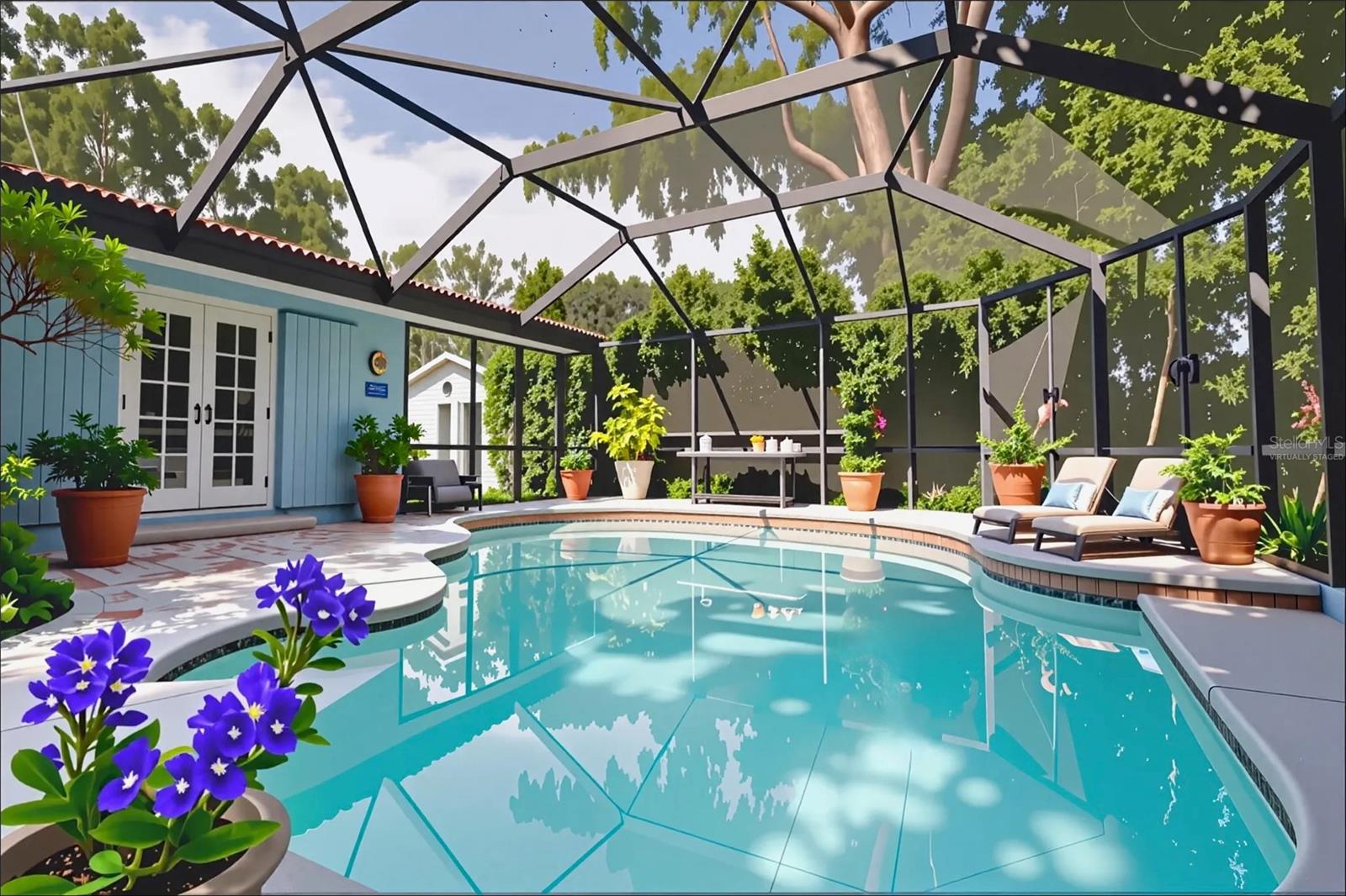 One or more photo(s) has been virtually staged. Welcome to this delightful 3-bedroom, 2-bath home, offering a generous 1,472 square feet of comfortable living space. Notable updates include: • 2022: Fresh exterior paint and addition of Tabby concrete on the front wall up to the windows—providing lifetime weather protection, extra insulation, and a coastal charm that never needs repainting. • 2019: Roof installation • 2017: HVAC • 2017: Water Heater • several Impact-resistant windows: Energy efficiency and storm protection for peace of mind. • Hurricane-rated 2-car garage door. Inside, the living room features molded ceilings and newer luxury vinyl flooring. The kitchen includes a dining area, two peninsulas (one with an induction cooktop), and a built-in convection oven. The primary bedroom offers an ensuite bath and a California closet. Step outside to your front porch or backyard private oasis, featuring a beautiful custom swimming pool—900 sq. ft. and fully enclosed by a beautiful birdcage—complete with a convenient poolside shower for easy rinsing after swims, perfect for relaxation, sun-soaked afternoons, and memorable entertaining. From the Florida room, walk out to a spacious 30’x14’ deck, ideal for grilling and gatherings. This .24-acre corner lot home is further enhanced by lush, mature landscaping, adding undeniable charm and exceptional privacy to the tranquil setting. With terrazzo flooring throughout, this home is ready for cosmetic updates—giving you the opportunity to add your own personal touch. The photos have been virtually staged for inspiration. Ideally located just minutes from the sugar-white sands of Indian Rocks Beach and the Gulf Coast’s stunning beaches, with grocery stores nearby for everyday convenience. A short drive connects you to Tampa and St. Petersburg, with Tampa International Airport approximately 30 minutes away and St. Pete–Clearwater Airport even closer. Families will love the proximity to Anona Elementary School, just a few blocks from the property. Don’t miss this fantastic opportunity to own a slice of paradise and make this house your cherished home!
