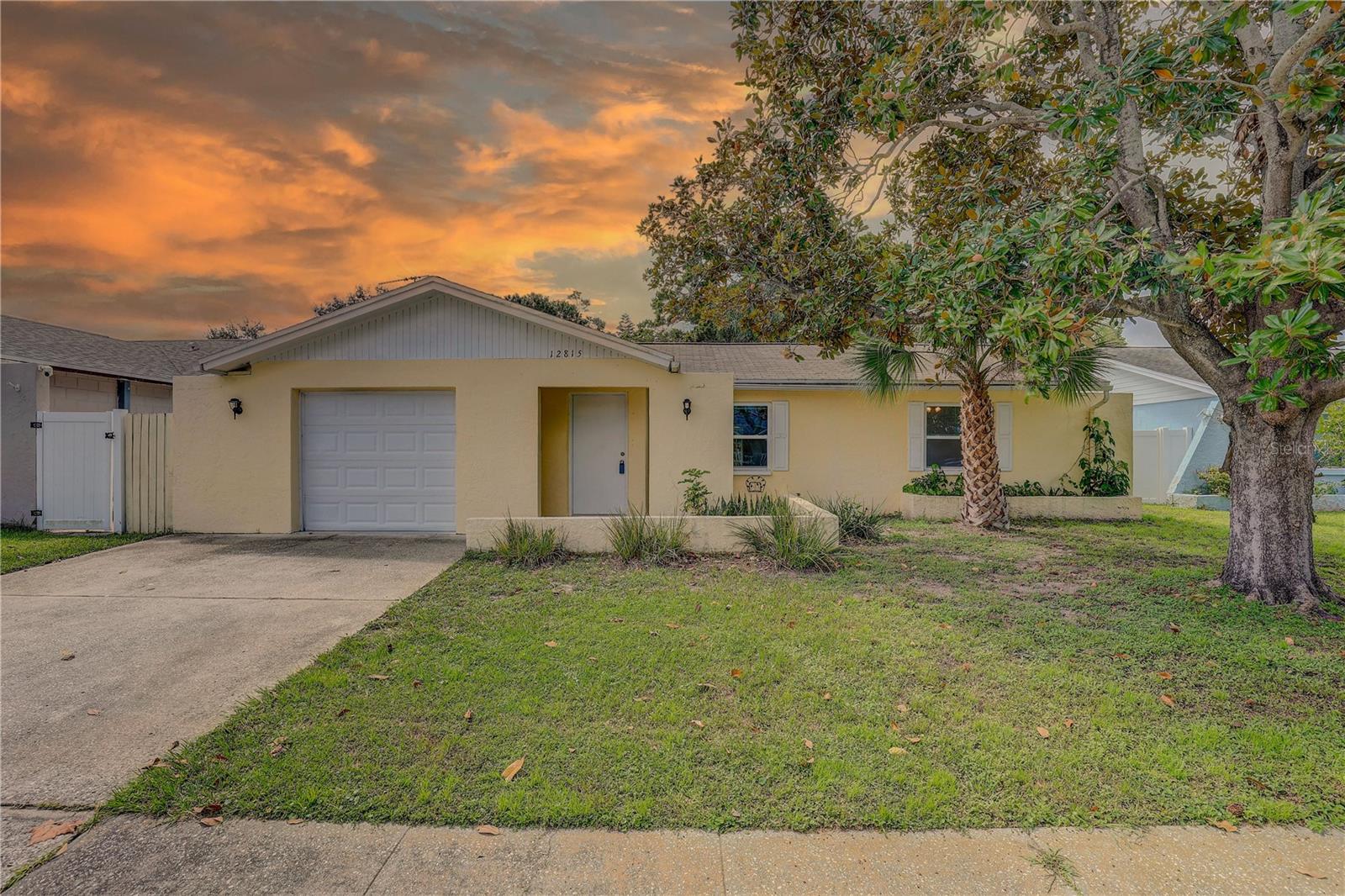 Welcome to 12815 129th Terrace in the sought-after Mill Pond community! This charming and AFFORDABLE 3-bedroom, 2-bathroom home with a 1-car garage is located in a NON-FLOOD and NON-EVACUATION ZONE—offering peace of mind year-round. This home is MOVE-IN READY and is perfect for FIRST TIME BUYERS or INVESTORS looking for a great rental; this property has previously rented for $2,700/month. Step inside to a bright and airy living and dining area featuring NEUTRAL tones and easy-to-maintain ceramic tile flooring. The kitchen boasts GRANITE countertops, a pantry, and direct access to the INSIDE UTILITY room for added convenience. The SPLIT-bedroom layout offers enhanced privacy, and all bedrooms include newer laminate flooring—no carpet throughout. Off the dining room, French doors open to a spacious ENCLOSED porch, perfect for a home office, playroom, gym, or creative studio. Add a mini split or window unit to turn it into a year-round bonus space. For energy efficiency, there are newer DOUBLE PANE WINDOWS throughout. BONUS: The Seller will install a NEW shingle roof & NEW A/C system prior to closing with a full price offer. Conveniently located just minutes from Indian Rocks Beach, Publix, Largo Mall, and a variety of local dining spots. Don’t miss this opportunity—schedule your private showing today!