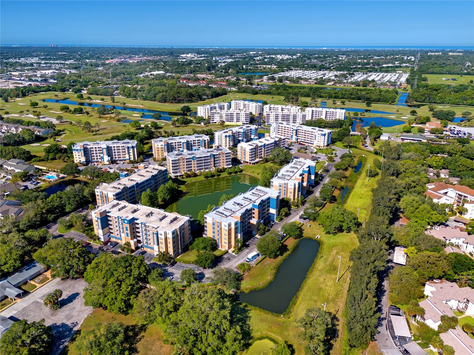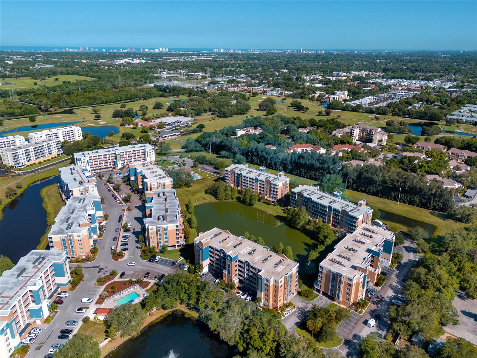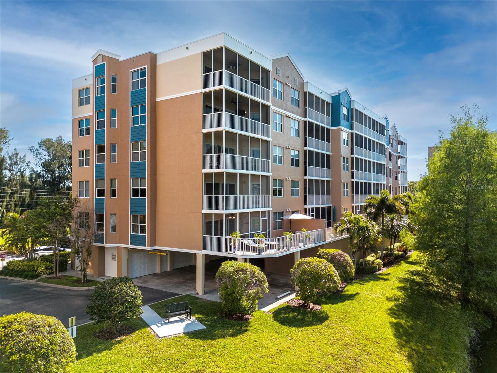 Discover luxury living in this stunning corner condo featuring an oversized patio exclusive to first-floor corner units. This bright and airy residence showcases breathtaking fountain views from both the expansive outdoor space and primary bedroom, creating a serene atmosphere throughout. The thoughtfully designed split floor plan maximizes privacy and functionality. The chef's kitchen impresses with gleaming stainless steel appliances, granite countertops, crisp white shaker cabinets, and elegant tile backsplash. A convenient breakfast nook and center island provide additional prep space and casual dining options. Rich luxury vinyl plank flooring flows through the main living areas, while the primary bedroom serves as a true retreat featuring dual walk-in closets, a luxurious garden soaking tub, separate shower, and private water closet. Dual vanities with granite countertops complete this spa-like sanctuary. Two additional bedrooms with plush carpeting share a well-appointed full bathroom. The spacious indoor laundry room includes a utility sink and abundant storage. Quality construction features hurricane-grade windows and sliding doors for enhanced security and energy efficiency. Recent upgrades include a 2022 air conditioning system with programmable thermostat along with a new roof 2024, and re-paved roads (fully paid by assessments). The oversized lanai offers exceptional entertainment space for family gatherings and social occasions. A large garage near the secured elevator provides convenient protected parking. Resort-style amenities include two heated pools, relaxing hot tub, and a clubhouse with full kitchen, lounge, and private meeting room. As an added bonus, the budget has a very healthy reserve. This prime location offers easy access to East Bay Golf Club, pristine Gulf beaches, diverse shopping, and exceptional dining options, delivering the ultimate lifestyle experience.
