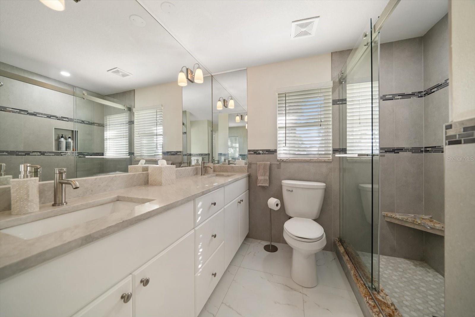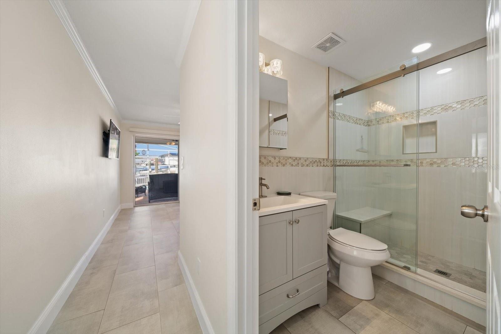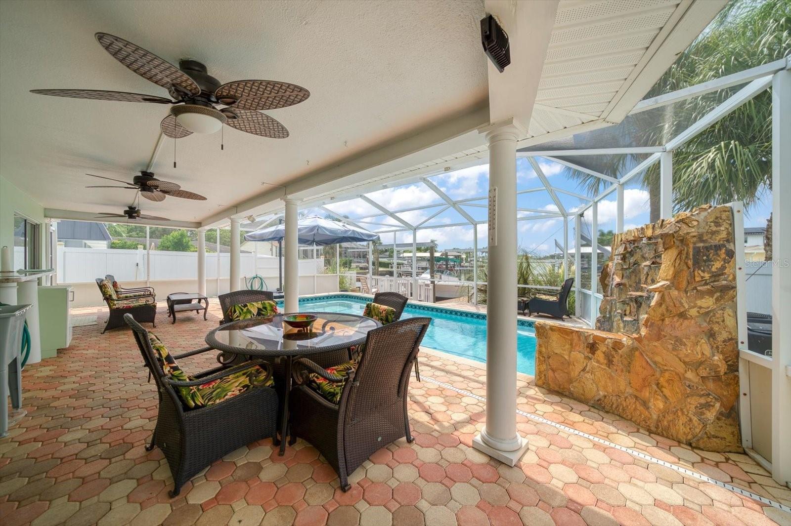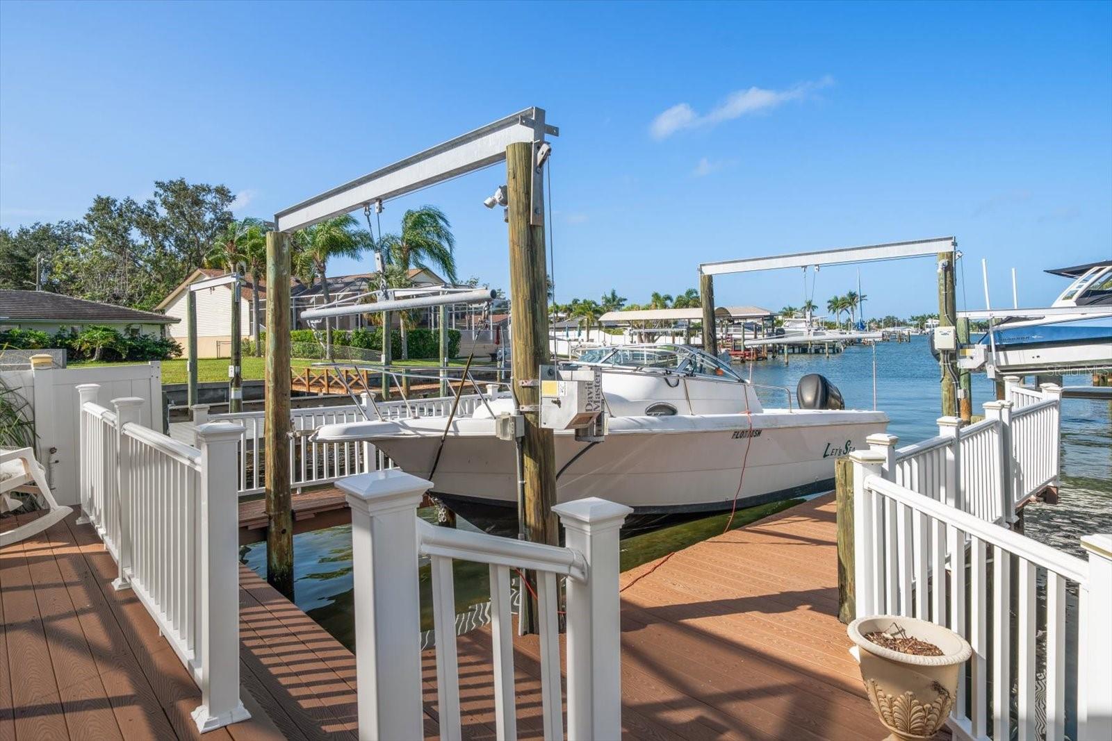 Discover the epitome of luxury living in this waterfront residence nestled within the desirable Harbor Hills community. Set on a large corner lot with a circular driveway, this home boasts tropical landscaping and a covered front porch that adds to the curb appeal. Enter through double leaded glass front doors, setting the tone for the exquisite interior that awaits. An open floor plan and neutral color palette create an inviting ambiance. The living area features an electric fireplace that adds warmth and elegance to the space. The split bedroom plan offers a full guest or in-law suite with a separate entrance, complete kitchen, washer/dryer, and sliders that offer picturesque pool and water views; making it perfect for income potential. The designer kitchen boasts stainless steel appliances, including a gas cooktop, quartz countertops, pull-out drawers, Lazy Susans, and a pull-out spice cabinet. A large island overlooks the dining room and living room with seating and the perfect place to gather. Each guest bedroom features its own ensuite bath, beautifully appointed and generously equipped with ample closet space. The lavish primary bedroom offers French doors that overlook the spacious yard, crown molding, and a gorgeous ensuite with an extra-long Jacuzzi tub, shower, double vanity sinks, and custom tile work. Sliders in the family room create a seamless transition to the enclosed patio and heated pool complete with waterfall for endless hours of entertainment and relaxation enjoying the breathtaking water and sunset views that enhance the tranquility of waterfront living. Venture to the new dock with electricity, a 10,000 lb davit/lift, creating a boater's paradise with easy access to the Intracoastal Waterway. Additional features include loads of storage including a large side yard for boat trailer storage, etc., a full house alarm system with 7 cameras, and remote access for added peace of mind. This beautiful home is located in close proximity to sparkling beaches, top-rated restaurants, shopping, and two airports ensuring a lifestyle of convenience and leisure.