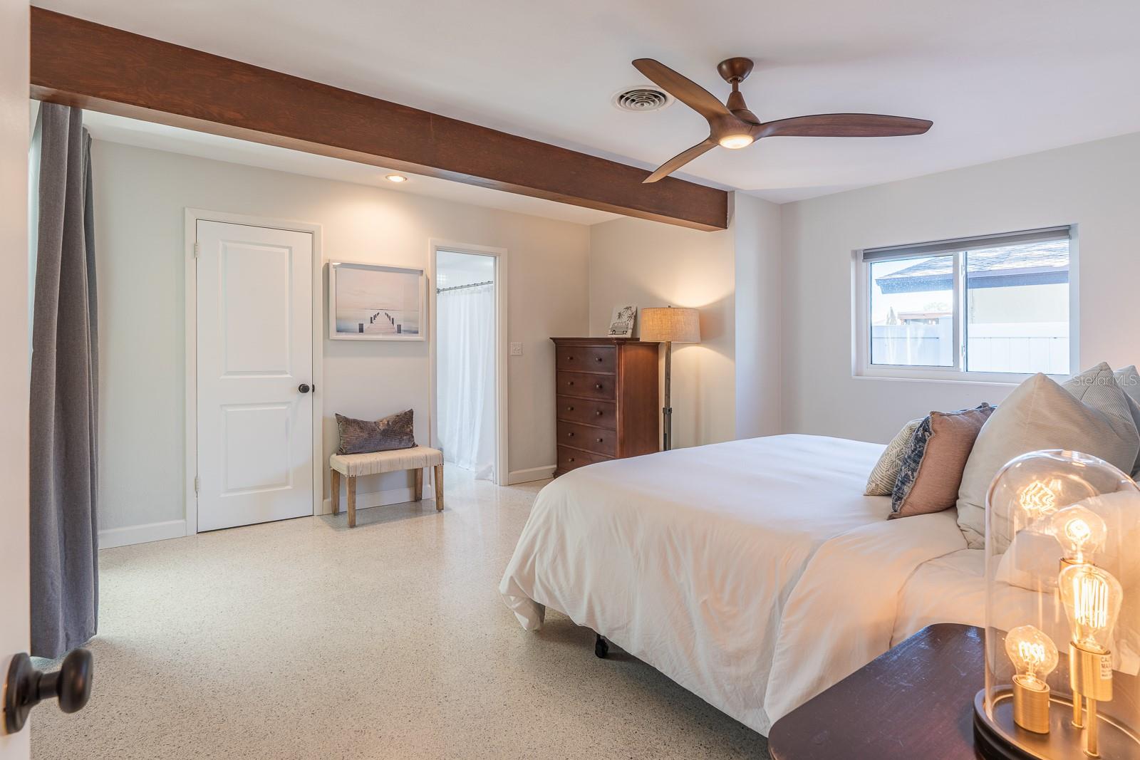 Nestled between Clearwater and Belleair, this stunning, sold FULLY FURNISHED, 3 bedroom, 2 bathroom home exudes coastal charm and effortless elegance. From the moment you step inside, you’ll be captivated by its character, warmth, and timeless style. Polished terrazzo floors flow throughout, while large windows across the entire back of the home bathe the space in abundant natural light. To the left, the inviting living room boasts original wood beams and a stunning brick wood-burning fireplace, creating a cozy yet refined ambiance. To the right, the beautifully designed kitchen features quartz countertops, high-quality wood cabinetry, and a seamless connection to the home’s airy and bright Florida room. This entertainer’s haven includes a stylish wet bar, complete with a fridge, cabinet space, and matching quartz countertops that create a cohesive and coastal elegant feel. The bedrooms are thoughtfully positioned to the right of the home, connected by a well-appointed Jack-and- Jill bathroom. Each guest room features charming alcove-style windows, enhancing the home’s inviting appeal. The owner’s suite is a private retreat, featuring a walk-in closet, an impeccable master bathroom, and sliding doors leading to the Florida room. The original wood beams further enhance the beachy charm of this coastal main suite. This home has been meticulously maintained, tastefully designed, and beautifully furnished. Every single detail has been carefully thought through, and it was remodeled with high-quality fixtures and features, built to last, ensuring timeless beauty and durability. Outside, the fully fenced backyard offers a serene escape, complete with a concrete patio perfect for unwinding, enjoying the coastal breeze, and savoring the salt air year-round. The beautiful front yard and driveway, accented by rocks and palm trees, create a stunning first impression, blending natural beauty with a coastal feel. Additional highlights include impact windows, an oversized two-car garage, a new washer and dryer, split A/C system for energy-efficient comfort. This home is more than just an address, it’s a lifestyle. Just a short bike ride to breathtaking Gulf sunsets and the vibrant Indian Rocks Beach community, known for its coastal shops, cafés, restaurants and festivals. Located minutes from Indian Rocks Beach, Belleair Beach, Sand Key Park, Pier 60, Largo Nature Preserve, Clearwater Community Sailing Center, and the Clearwater Marine Aquarium. Don’t miss this true Florida gem, your coastal dream home awaits! Home will be sold fully furnished as seen. Main roof (2014) AC (2019/2025) Water heater (2025) Stainless Steel appliances (2021) Washer/Dryer (2025) Windows (2021)