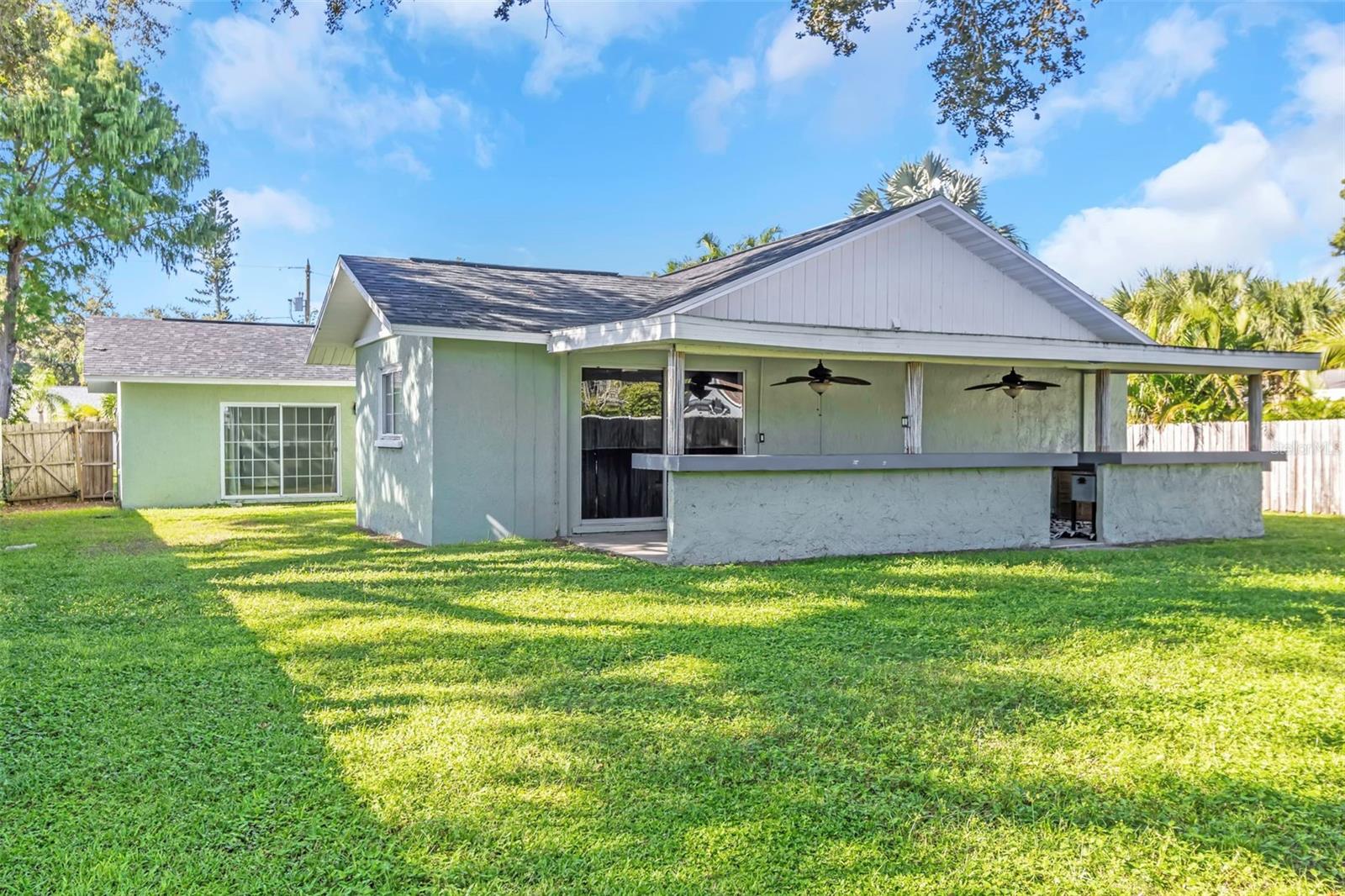 Discover this beautifully updated 3-bedroom, 2-bathroom residence located just minutes from the Gulf beaches. The property features sophisticated double entry doors that open into a bright, spacious great room with volume ceilings and abundant natural light. The floor plan is ideal for modern living and entertaining. The kitchen is equipped with granite countertops, a gas cooktop, a convection microwave, and a convection oven, offering ample counter seating that flows into the living area. The primary bedroom is generously sized (accommodates a king-sized bed) and includes a private en suite bath with a step-in shower. Two additional bedrooms offer flexibility for guests or a home office. Embrace the Florida lifestyle on the covered back porch, ideal for outdoor dining or grilling. The large, fenced yard provides a private space for gardening or recreation. Major updates include a new roof installed in 2024 and energy-efficient windows from 2020. This property is eligible for short-term rentals, making it a versatile option as a full-time residence, investment property, or vacation home. Located near George C. McGough Nature Park, Walsingham Park, local dining options, and the beaches....