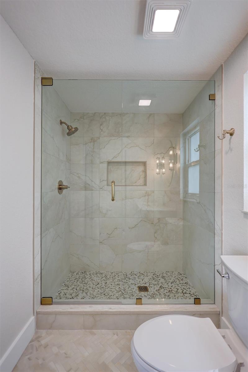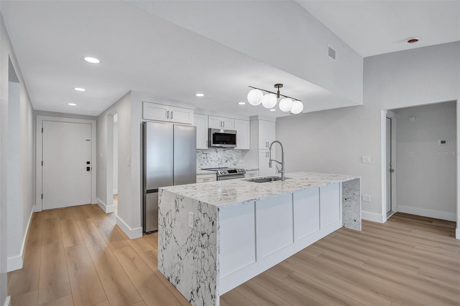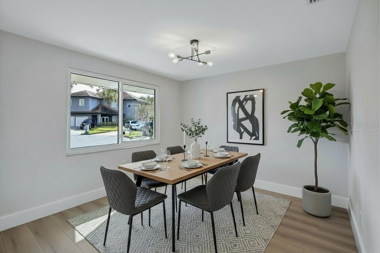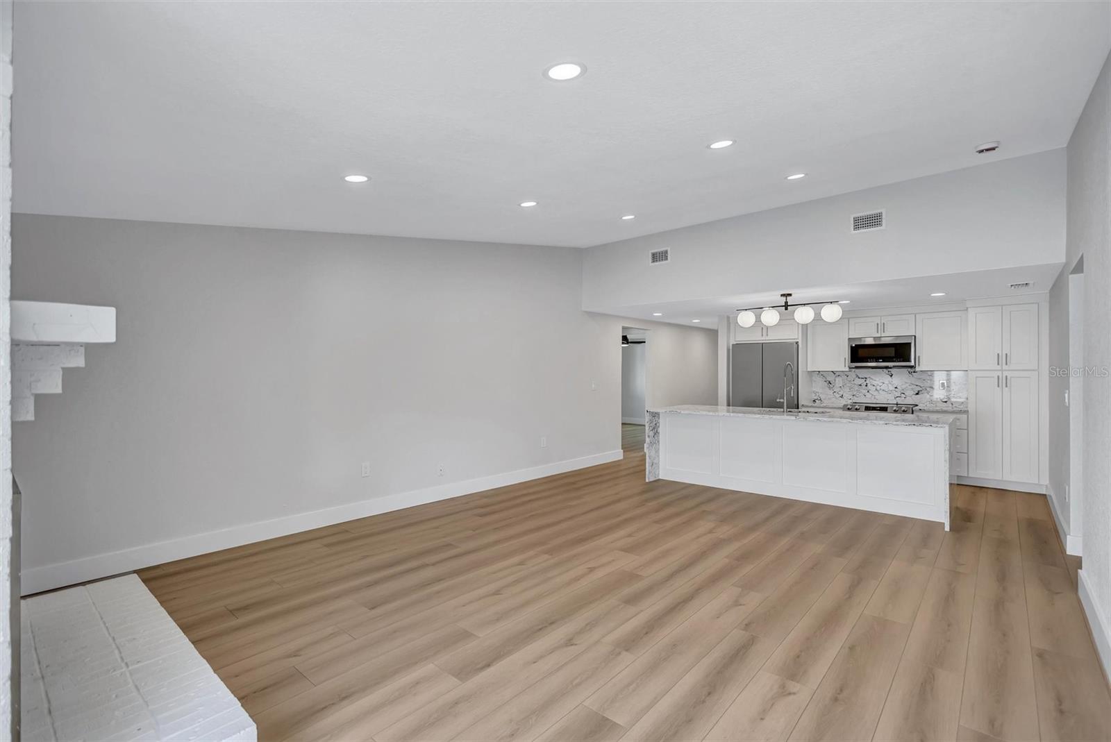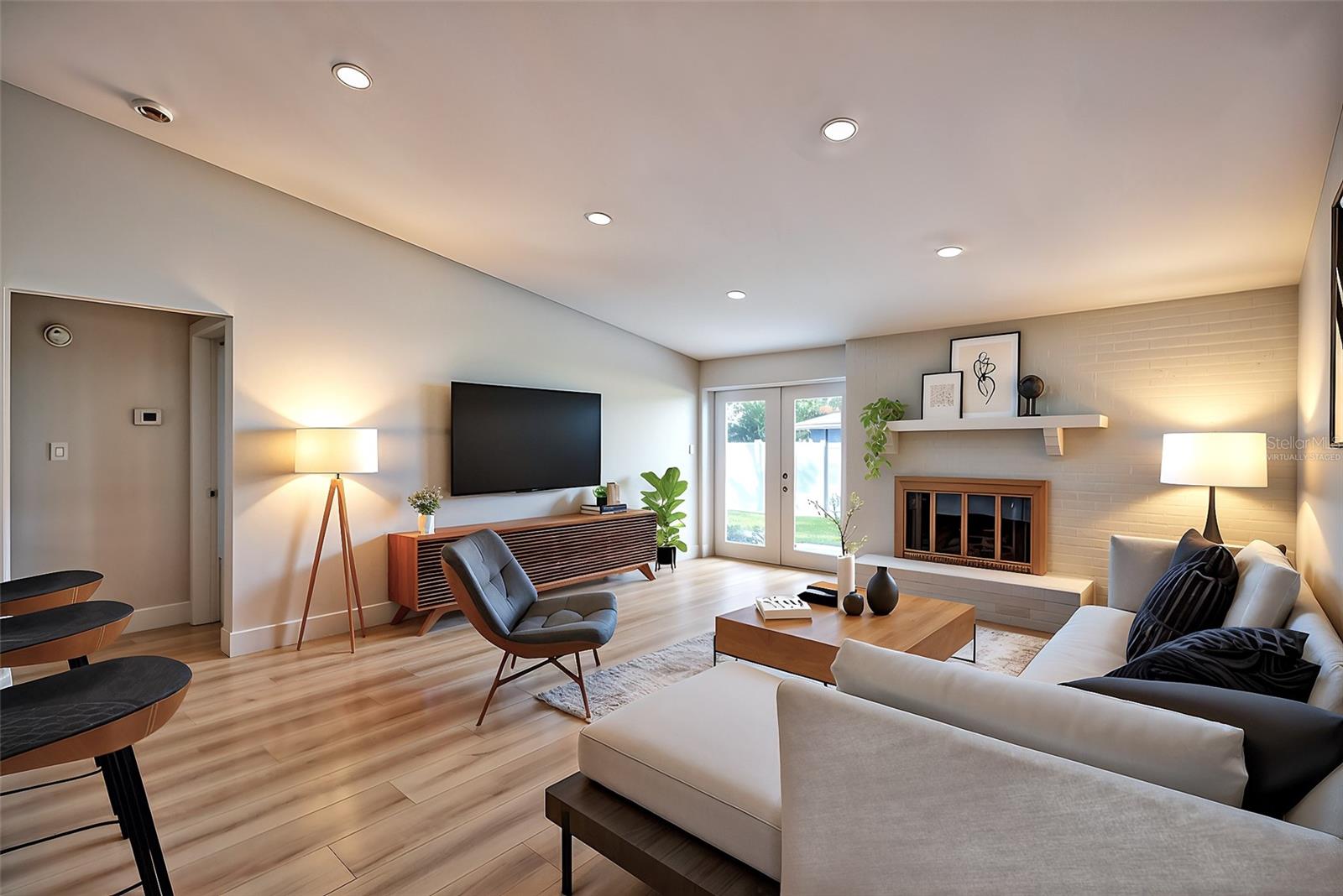 Step inside this fully renovated 3-bedroom, 2-bathroom block home tucked away at the end of a quiet cul-de-sac in one of Largo’s most charming, family-friendly neighborhoods. Every inch of this home has been thoughtfully updated with high-end finishes and modern convenience in mind — truly move-in ready. Enjoy immediate peace of mind with brand-new PGT impact-rated windows throughout the home, providing exceptional hurricane protection, energy efficiency, and sound insulation, keeping your home safe and quiet year-round. They come with a 25-year transferable warranty, giving you long-term confidence and savings on insurance premiums, an incredible benefit for Florida homeowners. The home’s interior showcases brand-new water-proof luxury vinyl plank flooring, fresh interior and exterior paint, and all-new fixtures and modern lighting. Both bathrooms have been completely redesigned with porcelain and marble tile, new vanities, upgraded DELTA plumbing fixtures, and elegant finishes. The designer kitchen features new Samsung stainless steel appliances, Carrara Viola quartz countertops, all-new cabinetry, and a large kitchen island with seating for casual dining. A separate formal dining area offers space for larger gatherings or holiday meals, while the open-concept living room features high vaulted ceilings and a charming wood-burning fireplace, the perfect focal point for cozy evenings or entertaining guests. Roof: Brand-new shingle roof installed in 2025 with a transferable 25 year warranty. Electrical: Entire electrical system upgraded, including a new panel, updated wiring, outlets, and switches. Plumbing: Brand new water heater and all plumbing fixtures and valves have been replaced. Bathrooms, kitchen, and laundry connections are in excellent working order with no leaks or corrosion. HVAC: Central A/C system replaced in 2018 and recently enhanced with all-new ductwork and insulation. Together, these improvements make the home energy efficient resulting in energy cost savings as well as insurance-ready, helping to save on premiums. The property exterior features brand-new landscaping with fresh sod, a new irrigation system and well pump on relay, and a brand new vinyl fenced yard, perfect for pets, family, or outdoor entertaining. The two-car garage provides ample storage and parking, while the solid concrete-block construction and new roof and windows deliver long-term durability and peace of mind. From the curb appeal to the finishes, every detail has been thoughtfully redone — making this home not just renovated, but rebuilt for modern living. Enjoy the perfect balance of design, efficiency, and security in this hurricane-ready, move-in-ready Largo home where every major system and surface is brand new. One or more photos have been virtually staged.