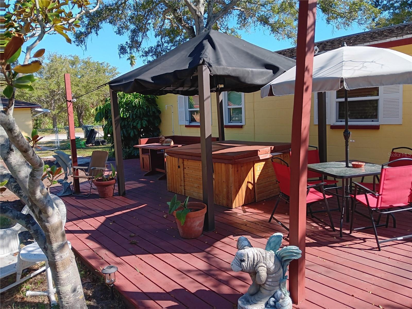 Amazing Florida Property COMPOSED OF 2 BUILDINGS ON 2 LOTS just shy of ¼ acre set on fenced, nicely landscaped corner lot. Property also includes MAIN RESIDENCES with 2-3 bedrooms 1 full bath and DETACHED 512 Sq/ ft. STUDIO COTTAGE that has 1 full bath with separate entrance and parking, which can be rented monthly or that can be used for mother-in law apartment. Main residence has double paned hurricane windows and both have new doors. Main residence also includes central heat and air eight years new. New refrigerator and microwave 2025, laundry room with newer washer and dryer, new electric panel 2025. There is a BONUS ROOM that could serve as 3rd bedroom or office. The huge spacious yard features redwood stained 14 X 22 deck with sitting area, including relaxing jacuzzi with cabana. An extra special addition to this property is a newly installed in 2024, $40,000+ owned solar panel system for maximum electric cost efficiency on main building. The Mother In-Law unit is separately metered. A maintenance shed is also included at the rear of the property. No Flood insurance required. No HOA. Bring your boat or trailer, keep them close by. Centrally located to schools, hospitals, shopping, airport and beaches. HUGE PRICE ADJUSTMENT. Sellers are motivated. GREAT FAMILY HOME WITH INCOME POTENTIAL. Won't last at this price!!!