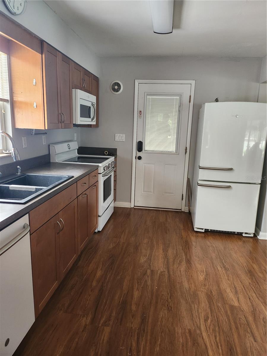 BRAND NEW ROOF TODAY -This beautiful House has many updates and improvements. All new insulated windows, new front door, carport entry door, and back door. The rooms are all freshly painted for a sharp clean look. There is an extra room in the back that has 3 - 6 foot sliding glass door that open to a large screen room. The view from there is the huge back yard with 2 beautiful trees and the Pinellas trail right through the gate. The kitchen is updated with all wood cabinets and modern appliances. Through the kitchen to the large laundry room with another set of base cabinets with a counter-top and 2 more wall cabinets. The door there goes to another concrete patio perfect for the BBQ grill. Beyond that in the yard is another large patio to sit and watch the walkers and bikers pass by on the trail. Each of the 2 bedrooms has a large closet with 2 shelves for plenty of clothes. The bathroom is modern and updated, and just outside of the bathroom is a large closet with lots of shelves. The living room and dining room are open and spacious for comfortable living. The side yard has another concrete pad with 2 large gate to bring in your boat or trailer for storage. The property has PVC fence on 3 sides with gates on both sides and chain like along the back bordering the Pinellas Bike Trail. This really is a great house and will be a great home.