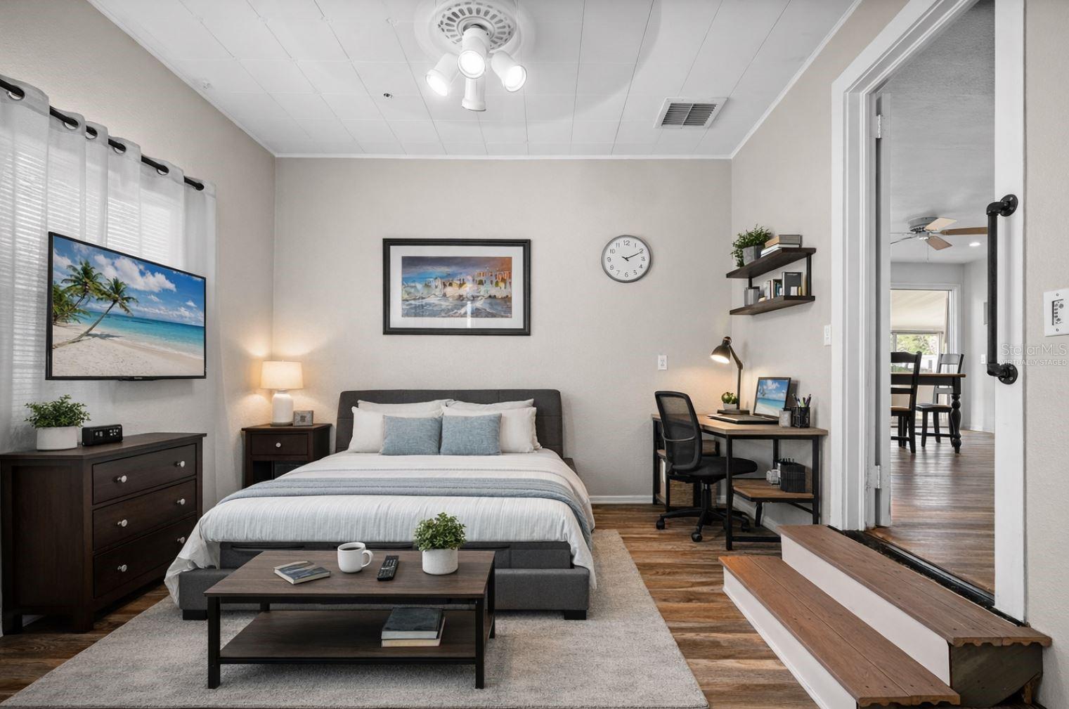 More Space, More Style! Step into this meticulously maintained home where "immaculate" is an understatement. If you've been looking for more space than the standard neighborhood floorplan offers, this is the one! Boasting significantly more heated square footage than nearby competitors, this 3 bedroom, 2 full bath home is move in ready and polished from top to bottom. Here's what's special: Split floor plan, Large Primary Bedroom/"Flex" Suite offers endless possibilities with private entrance, full bath, walk-in closet and laundry room access. (Could be private home office or studio or Income Producer!!) Other amenities include: Updated Kitchen, 2 spacious bedrooms and additional full bath in main living area, Non-evacuation Zone, Non-Flood Zone, Vinyl Floors, New Roof 2024. Plus only 3 miles to Gulf beaches and Belleair boat ramp. This charming home has been completely renovated, A/C, kitchen appliances, vinyl plank flooring 2021. New Roof 2024, with a transferable 15-year Labor Warranty. Water heater replaced 2025. Not only does this home have unique architectural character, but it has updates galore: in ground irrigation on a well and timer, inside laundry room, large walk-in closet, welcoming screened Front Porch/Patio, vinyl fencing, large shed, water softener and 200-amp electric panel, all at an accessible price. The back yard is private, newly fenced and ready for weekend BBQ's and gardening! This home is walking distance to Largo Central Park, Largo Library, shopping, and public transportation. Plus this up-and-coming neighborhood is within walking distance to the new downtown Largo, Horizon West Bay. Horizon West Bay complex is the centerpiece of the reimagined city center. A new landmark featuring dining, retail, community events, live music, markets and city services!
