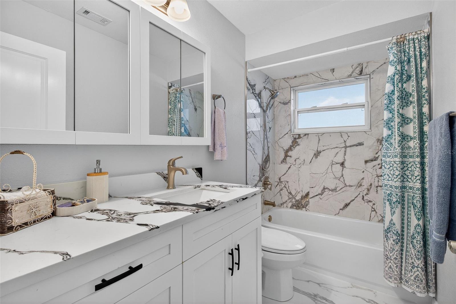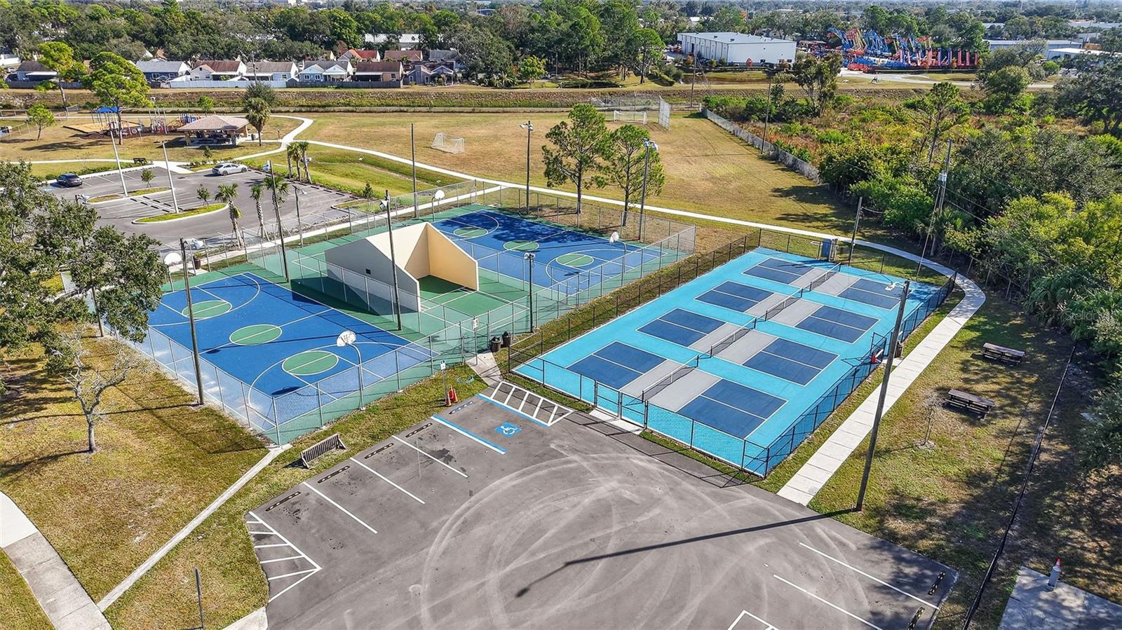 Welcome to this beautifully updated home in the highly sought-after Pinebrook Estates, where comfort, convenience, and worry-free living come together. Step inside and immediately feel the difference. The open layout and durable tile flooring throughout the home create a clean, modern look that is easy to maintain and ideal for Florida living. The spacious kitchen, complete with quartz countertops, stainless steel appliances, and generous cabinetry, is perfect for anyone who enjoys cooking, entertaining, or simply spending time with friends and family. A built-in electric fireplace adds a warm and inviting focal point to the living area. It offers a hassle-free fire display without the mess and provides real heat when you want it, giving you comfort with the touch of a button. The split floor plan provides privacy and flexibility, featuring a relaxing primary suite with built-in cabinets and an updated en-suite bathroom. The additional bedrooms also include built-in closets, offering plenty of storage for guests, family, or a home office. Custom cabinetry in the hallway adds extra organization, while the large screened lanai, measuring 15 by 22 feet, gives you plenty of space to unwind outdoors, garden, or host weekend cookouts. The fenced backyard adds even more room to enjoy the Florida lifestyle. The two-car garage provides secure parking, additional storage, and the extra convenience every homeowner appreciates. This home offers true peace of mind with a newer roof, and electrical panel. Pinebrook Estates continues to be one of the most desirable spots in the area thanks to its central location and high-and-dry elevation, offering quick access to major highways, shopping, dining, and the beaches without the flooding concerns found in other communities. A short walk brings you to Pinebrook Park, featuring remodeled racquetball courts, a large playground, tennis courts, picnic areas, facilities, and a dog park. Homes in Pinebrook Estates move quickly for a reason. Schedule your private tour today and experience everything this home offers. Do not wait.