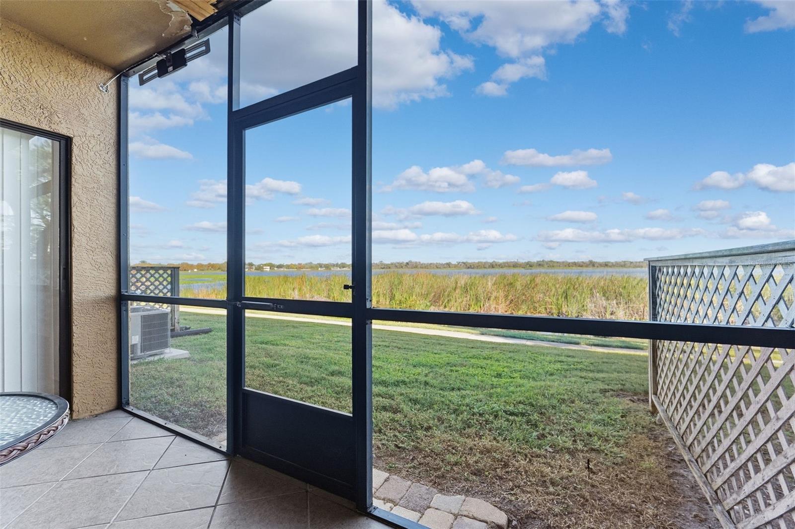 Right on the lake!! Private, serene living located right on Lake Seminole in Belle Vista, a popular gated community!!! Split 2 Bed 2 Bath ground floor condo featuring beautiful tile flooring, crown molding, maple cabinets in the bathrooms and kitchen. The kitchen is open to the family room and features stainless steel appliances, pantry, and cozy eat-in area. The open floor plan features a large dining/family room combo with sliders (off both the living/dining area and master bedroom) that lead out to a screened-in lanai to enjoy views of the lake. There is an additional screened-in patio with sliders off of the second bedroom and kitchen dining area (which contains a large, private, locked storage room). This unit also features an inside utility room and comes with assigned car port spot to keep your vehicle out of the hot sun and elements. There is plenty of storage within the unit for all your belongings. This unit is in the premier spot within the community, with a lake view. The gated community features a beautiful pool, hot tub, clubhouse, fitness center, walking paths along the lake, private fishing pier, canoe/kayak storage, and so much more. Move-in ready and semi-furnished - IT WON'T LAST LONG!!