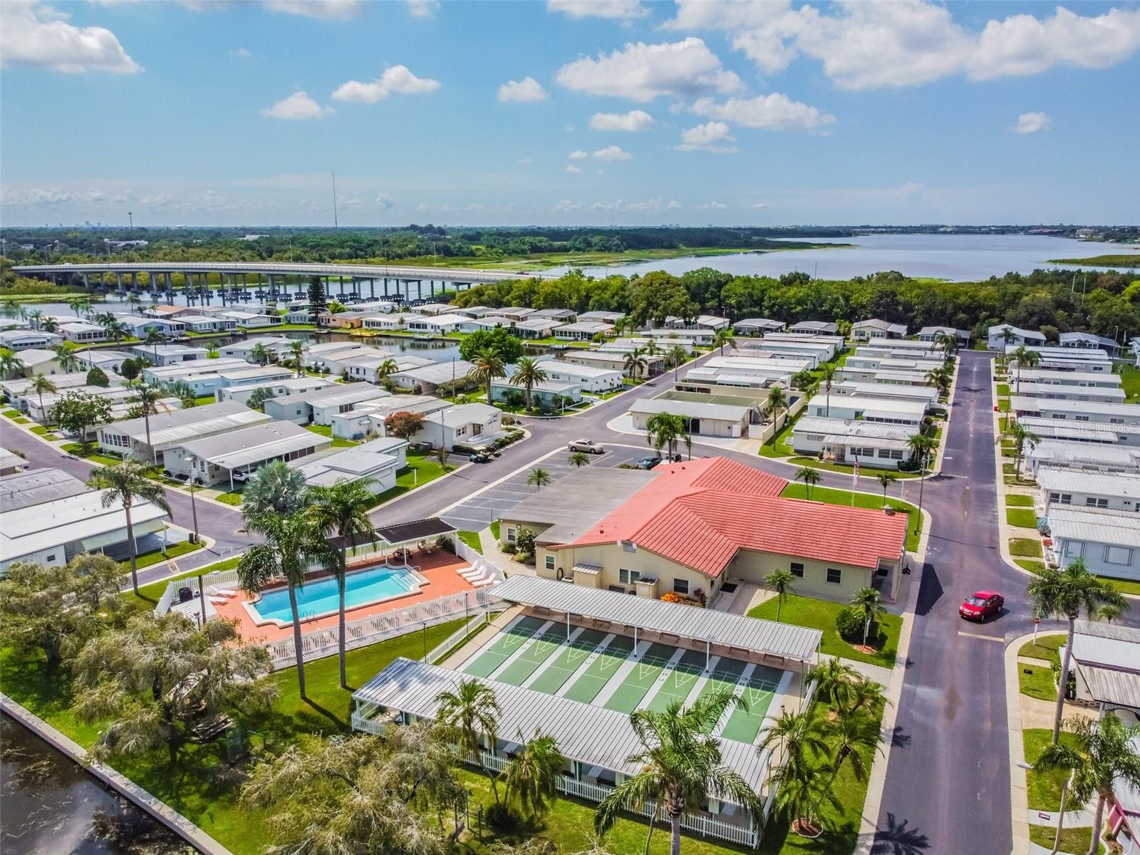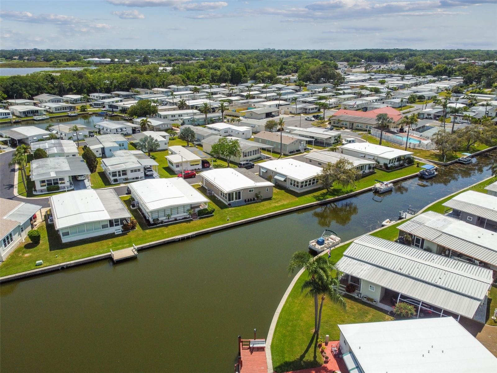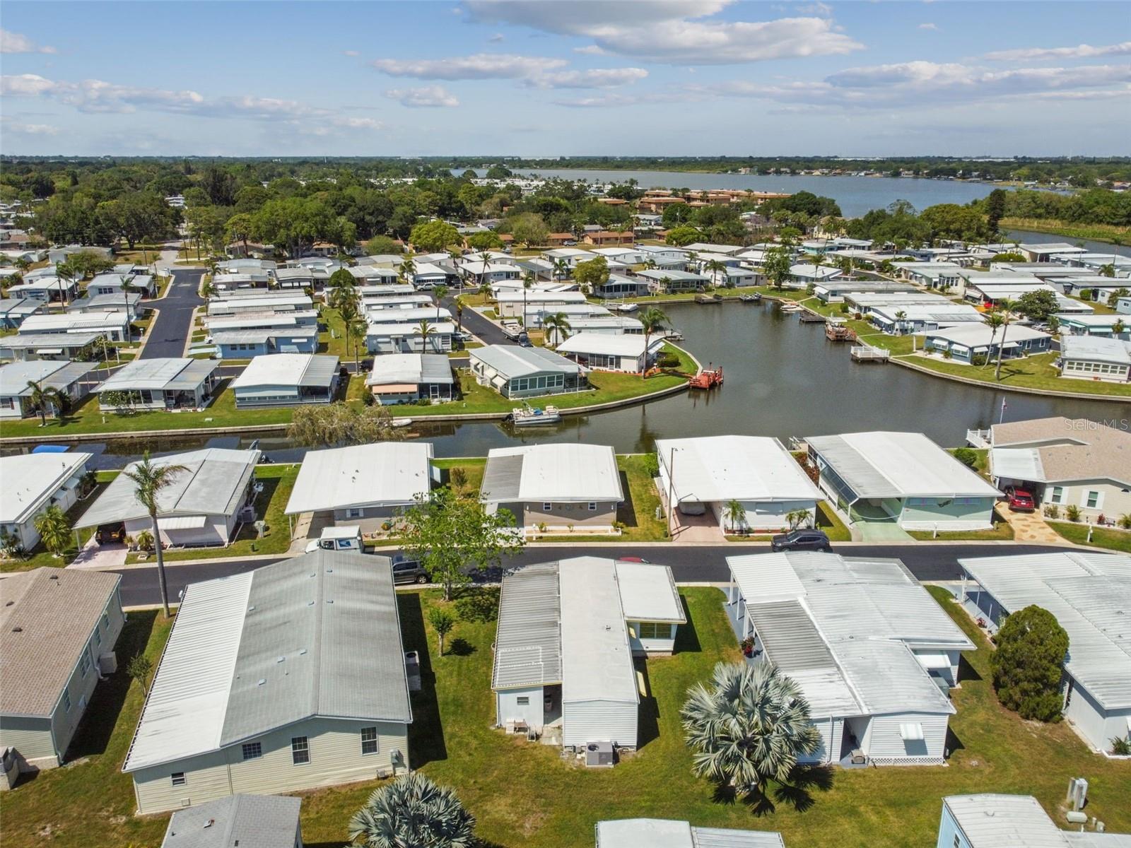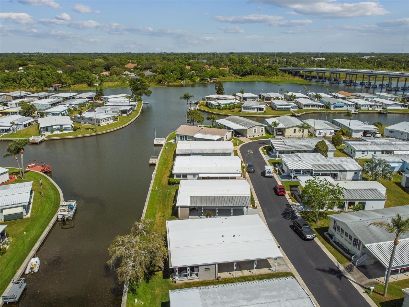 WATERFRONT! Priceless view of the open canal! Absolutely beautiful, rarely available canal front home in mint condition, fully remodeled top to bottom. All this with furniture included all window treatments and ready for you to move in and add your personal decorative touches! Owner has just replaced refrigerator, stove and dishwasher! This WATERFRONT location opens up to all canals coming together. think Venice Italy. You can add a dock with approval and there is also a boat ramp located 3 doors down from the property. Tie up your boat to the cleats on the seawall directly behind the house. Upgrades to include, new kitchen with butcher block countertops, white shaker cabinets, new flooring, crown molding, new bathrooms, all newer windows, new air conditioner 4/2024, new vapor barrier & 16 new piers ($5,100.) installed April 2024 with a transferable 20-year warranty on the piers, upgraded electrical panel 2/2022, new roof over 2/2021. Holiday Shores is an active 55 + community with lots of planned activities and social activities to keep you busy. There is an onsite library for your reading pleasure, a heated pool, pool tables, shuffleboard, putting green and a gym! The gym has 2 treadmills, a weight machine, elliptical and stationary bike! Fishing is abundant from the seawall behind your home! The pool, shuffleboard, clubhouse, gym, office and boat ramp are all stone's throw from this property, no need to drive! Seller will consider holding a mortgage with a substantial down payment and seller’s approval of credit. PLEASE NOTE: Our park is getting new sewer pipe replacement at no cost to the shareholders but doesn’t look very nice at the present time.