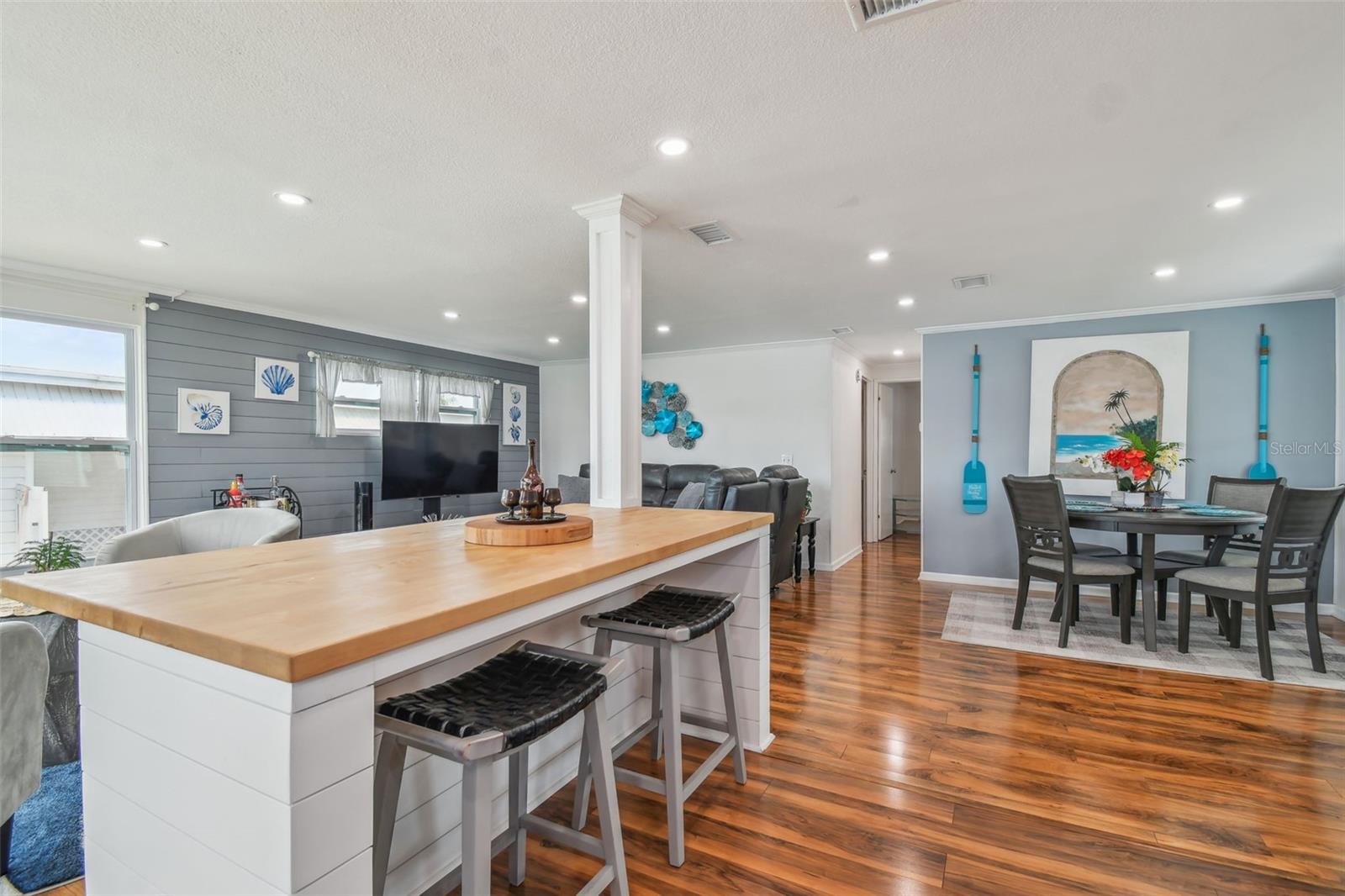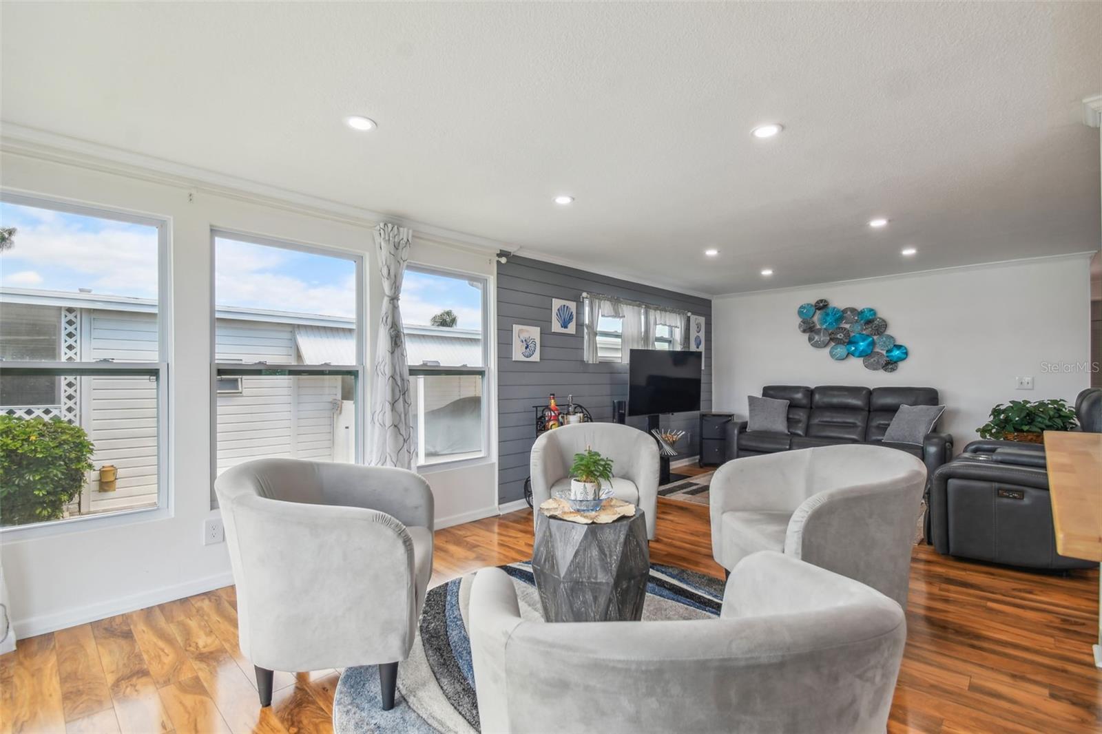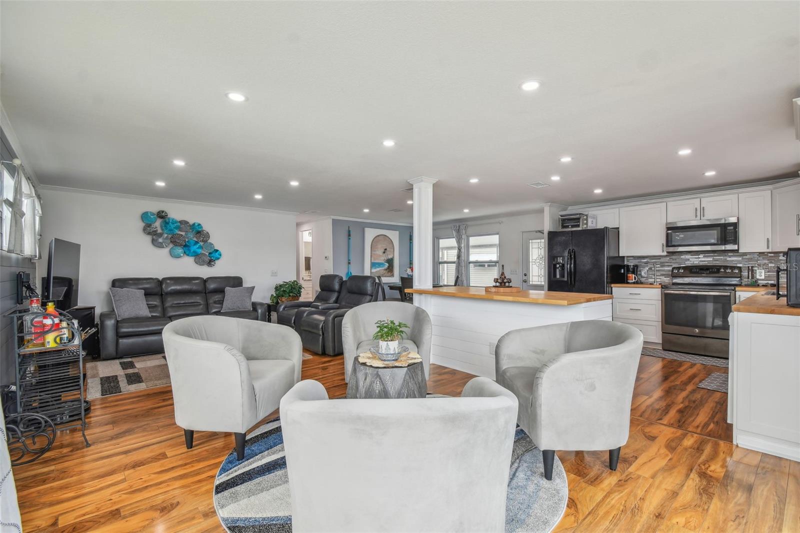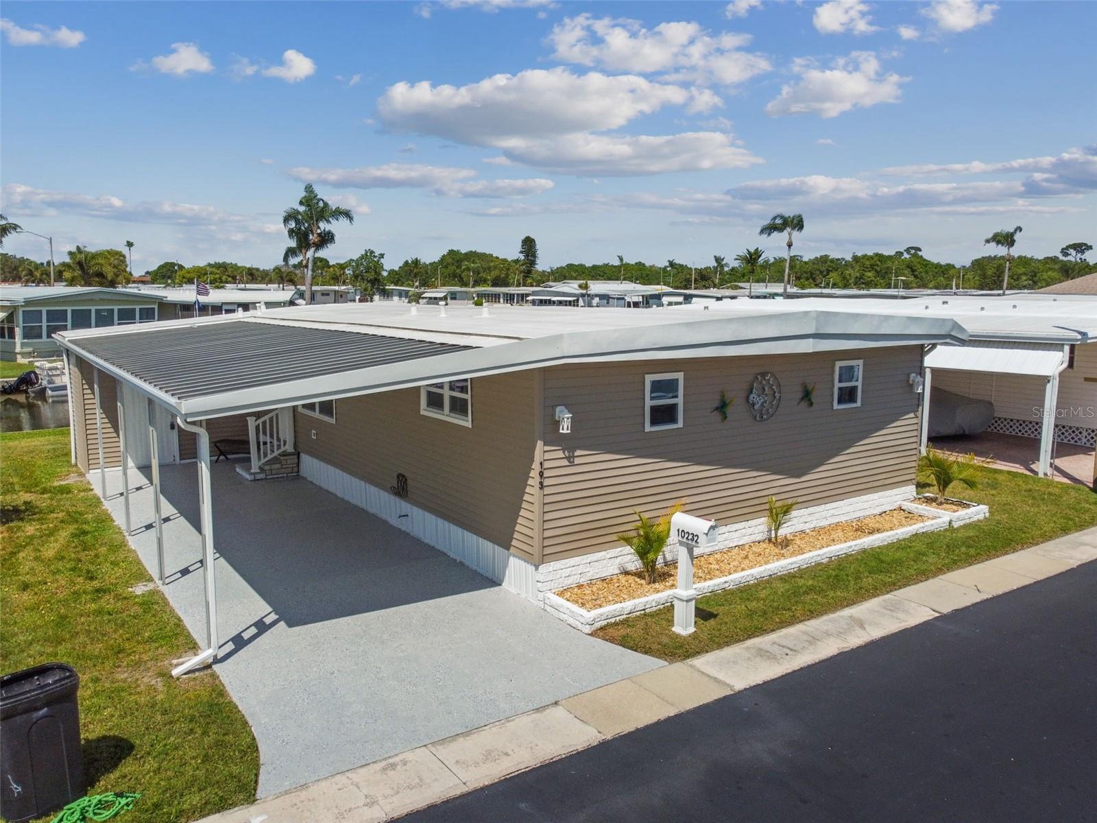 WATERFRONT! Priceless view of the open canal! Absolutely beautiful, rarely available canal front home in mint condition, fully remodeled top to bottom. All this with furniture included all window treatments and ready for you to move in and add your personal decorative touches! Owner has just replaced refrigerator, stove and dishwasher! This WATERFRONT location opens up to all canals coming together. think Venice Italy. You can add a dock with approval and there is also a boat ramp located 3 doors down from the property. Tie up your boat to the cleats on the seawall directly behind the house. Upgrades to include, new kitchen with butcher block countertops, white shaker cabinets, new flooring, crown molding, new bathrooms, all newer windows, new air conditioner 4/2024, new vapor barrier & 16 new piers ($5,100.) installed April 2024 with a transferable 20-year warranty on the piers, upgraded electrical panel 2/2022, new roof over 2/2021. Holiday Shores is an active 55 + community with lots of planned activities and social activities to keep you busy. There is an onsite library for your reading pleasure, a heated pool, pool tables, shuffleboard, putting green and a gym! The gym has 2 treadmills, a weight machine, elliptical and stationary bike! Fishing is abundant from the seawall behind your home! The pool, shuffleboard, clubhouse, gym, office and boat ramp are all stone's throw from this property, no need to drive! Seller will consider holding a mortgage with a substantial down payment and seller’s approval of credit. PLEASE NOTE: Our park is getting new sewer pipe replacement at no cost to the shareholders but doesn’t look very nice at the present time.