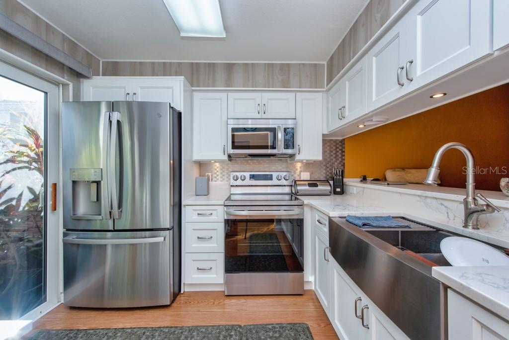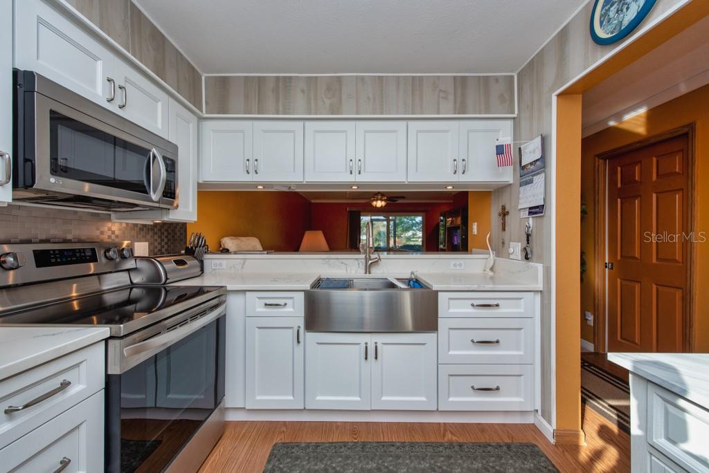 Water views, thoughtful upgrades, and a location that checks every box. This 1,120 sq ft townhome offers 2 bedrooms, 2.5 bathrooms, and a 1-car garage, all nestled in a quiet Largo community that feels tucked away yet close to everything. Inside, you’ll find extensive updates completed within the last two years, starting with a beautifully remodeled kitchen designed for both style and function. White shaker cabinetry, quartz countertops, a coordinating backsplash, a farmhouse sink, under-cabinet lighting, and a dedicated coffee bar create a bright, inviting space. A breakfast bar and sliders opening to the private front courtyard make everyday living and entertaining easy. The living and dining areas flow together seamlessly, accented by crown molding and anchored by a fully remodeled half bath. New carpeting and vinyl plank flooring add a fresh, modern feel throughout. Both bedrooms are upstairs and feature their own ensuite baths. The guest suite stands out with a fully remodeled bathroom, complete with a Safestep walk-in tub with jacuzzi jets, an upgraded vanity with a quartz top, and decorative wainscoting. The primary bedroom offers a feature wall, a remodeled bath with a walk-in shower, and sliders leading to a screened-in balcony—perfect for morning coffee or unwinding in the evening. Outdoor spaces truly set this home apart. Enter through a charming front courtyard, then step out back to a screened-in patio with an extended outdoor area overlooking the pond, offering peaceful water views—all with no flood insurance required. Additional highlights include a low-maintenance HOA in an all-ages, pet-friendly community, with the monthly fee covering water, sewer, garbage, grounds maintenance, and access to the community pool. Residents also enjoy the rare bonus of designated extra parking for boats, trailers, or motorhomes. Centrally located in Largo, the community offers easy access to airports, shopping, and medical facilities, just minutes from the area’s beautiful Gulf beaches. A move-in-ready townhome with meaningful upgrades, scenic views, and rare amenities—this one delivers comfort, convenience, and value in one well-rounded package.***FREE 1/0 Rate Buydown when using the seller's preferred lender!***