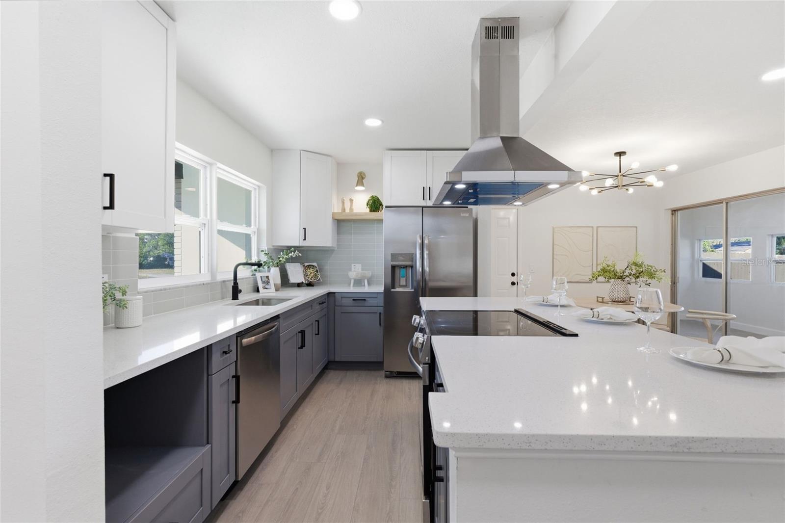 FULLY RENOVATED with higher end upgrades! NEW NEW NEW! This 2 bedroom, 1.5 bath property features a deep one car garage, a fully fenced large backyard, and upgrades from top to bottom. NEW roof, NEW HVAC, NEW windows, and a NEW electrical panel. The interior showcases brand new luxury vinyl flooring throughout and a bright open floor plan that feels spacious and airy. The kitchen is the centerpiece of the home. It has been completely redesigned with a true chef layout, a large island ideal for entertaining, modern finishes, and excellent flow into the living and dining areas. Bathrooms are fully updated with designer finishes and clean modern style. The backyard offers plenty of space for outdoor living, pets, or future additions, all within a fully fenced setting. GREAT LOCATION! Located minutes from shopping, supermarkets, downtown Largo, St. Pete Clearwater Airport, Clearwater, and the beaches. What a great values of this fully renovated home! You will see this type of upgrades in much higher price point homes! Schedule your showing today.