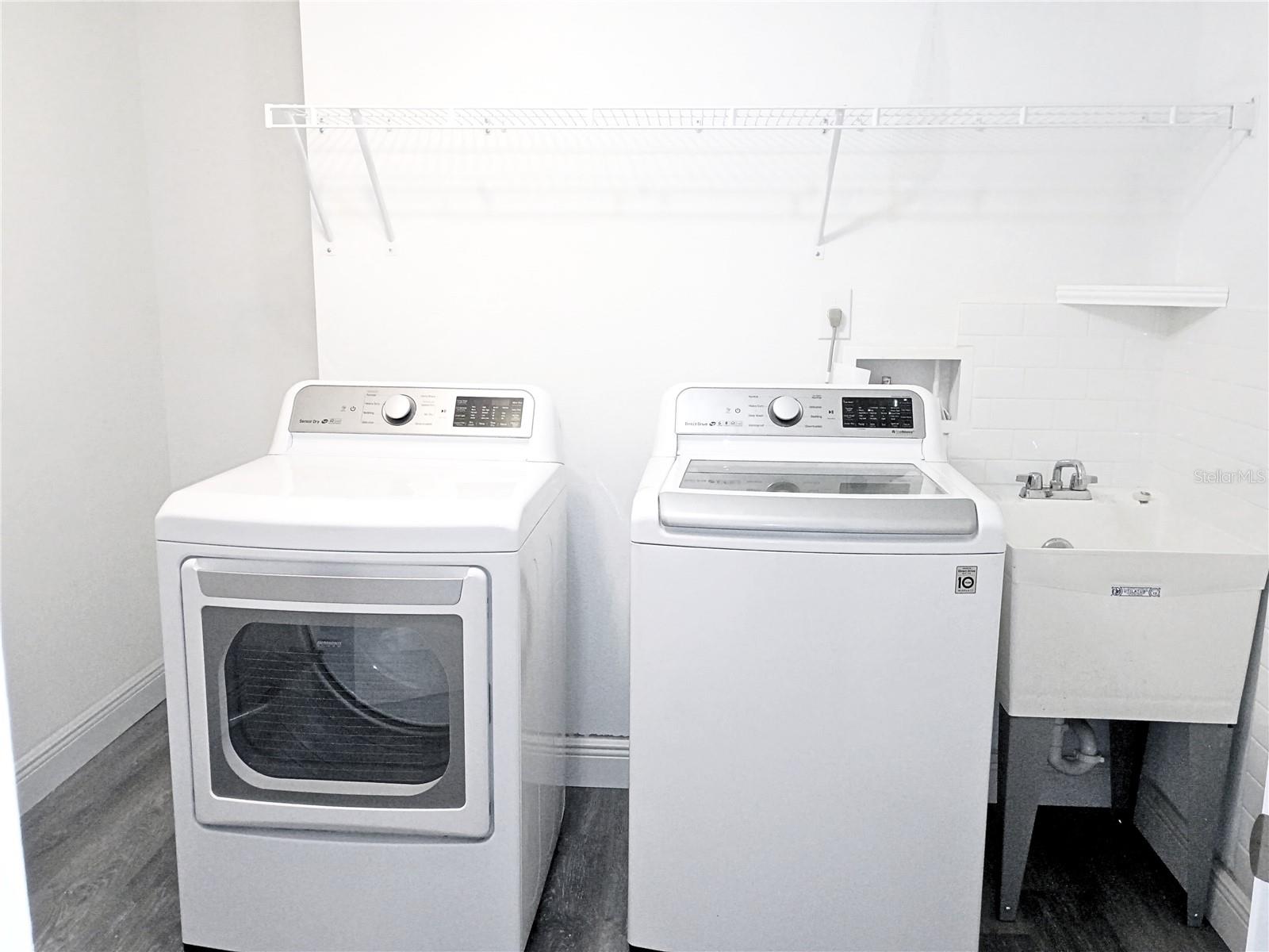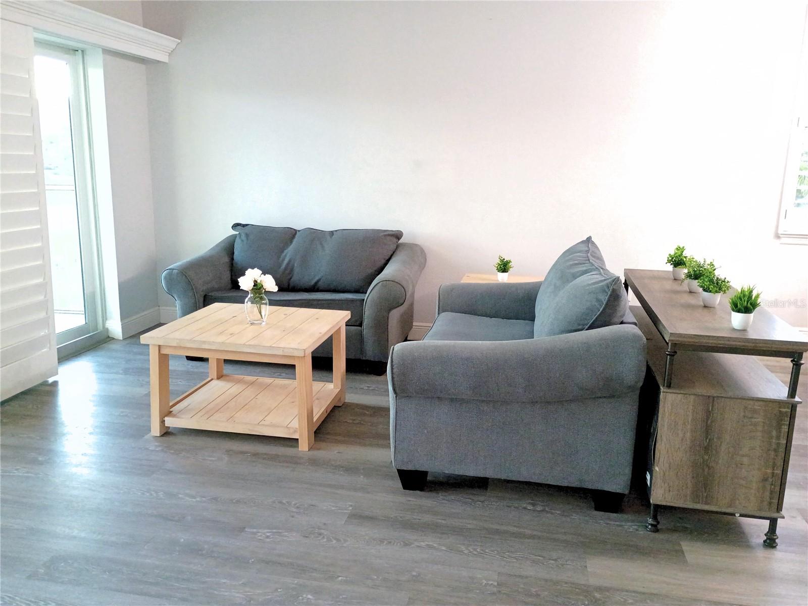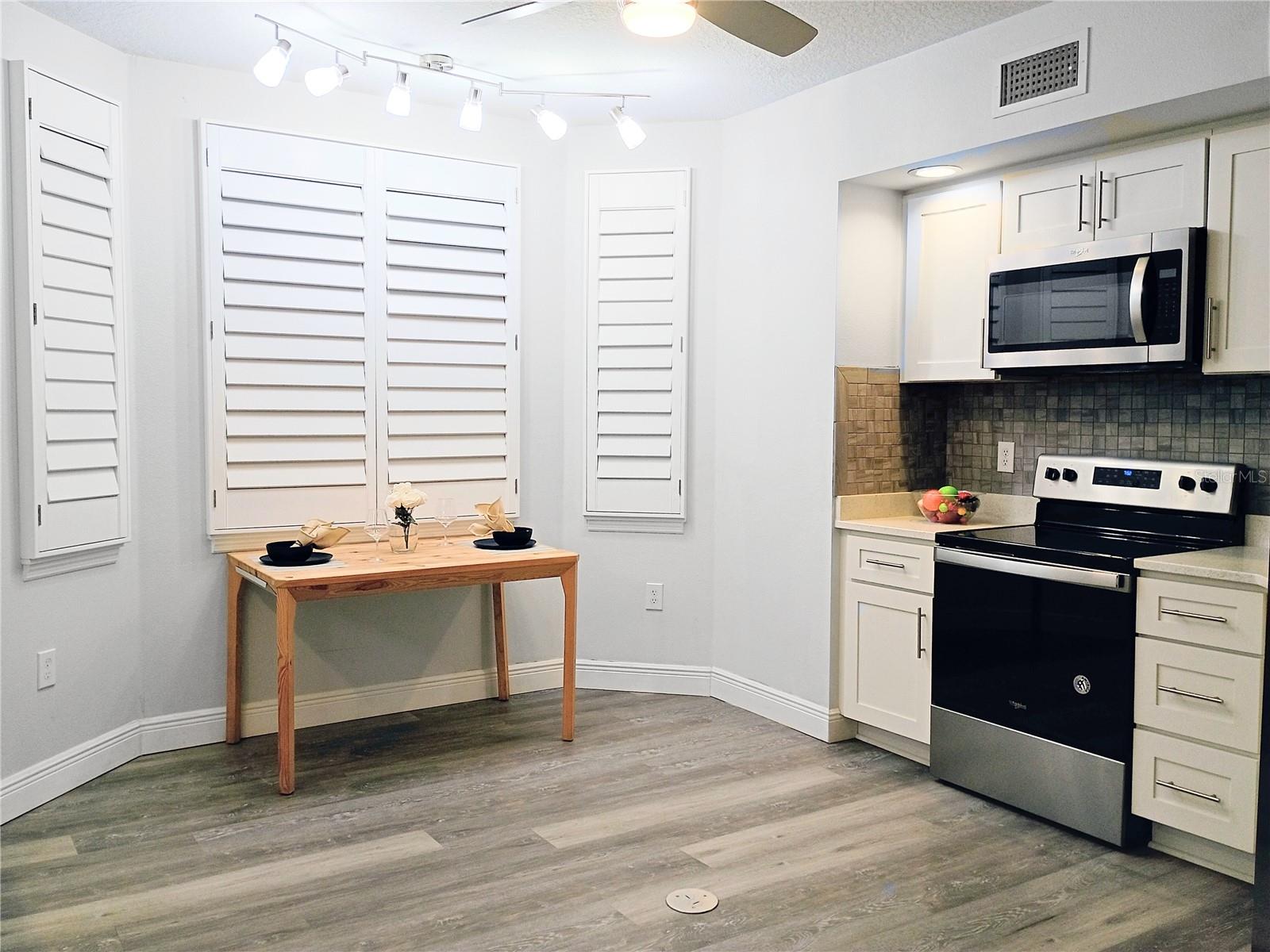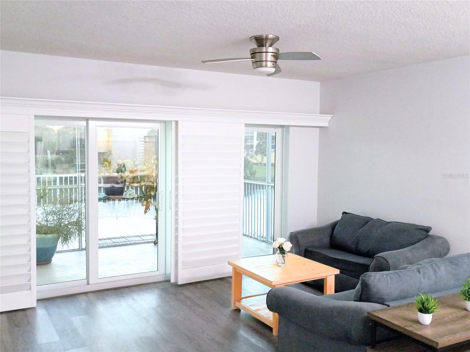 One or more photo(s) has been virtually staged. Discover this highly sought-after, end unit 3-bedroom, 2-bathroom condo, offering exceptional building security via an elevator code and locked ground floor doors. The home is packed with over-the-top upgrades for modern living, including a Schlage smart lock, Ring doorbell, and Simply Safe Alarm System. The heart of the home is an exquisite eat-in kitchen featuring a stylish backsplash, stainless steel appliances (with an oven and cooktop that have never been used), push button garbage disposal, custom wide shelving in pantry and convenient pop-up electric outlets. Quartz countertops, brushed nickel hardware and soft-close cabinets/drawers found throughout. Enjoy peace of mind with a dedicated valuables closet featuring an enhanced security lock. The air handler is easily accessible in the living room closet (with slatted doors), making filter changes and maintenance simple. Spacious living room/dining area with designer track & recessed lighting plus NEST thermostat. The Primary Suite provides a private retreat with an elegant bath featuring an expansive frameless shower with custom shower head plus a separate private toilet. The hall bath includes a shower with a tub and custom showerhead. All rooms feature ceiling fans and boast high-end luxury vinyl planks throughout, beautiful upgraded solid wood window treatments ($10k value), extra electrical outlets & closets galore. The oversized laundry room comes equipped with an LG Washer & Dryer (convey), electric water heater with a timer, shelving, and an overflow valve added to the utility sink with a beautiful backsplash. Enjoy the outdoors mosquito free on the enclosed lanai with a showcase concrete coating and Rod Runner shades or step out onto the rare additional open balcony to get some fresh air and an unparalleled view of the gorgeous lake fountain. Benefit from a prized end garage (G1) with HOA-included electric and community allowance for freezers, refrigerators and dehumidifiers. The community is well-maintained with the building repainted in 2024, new pavement in progress for 2025 and onsite property manager. Ideally located close to Winn Dixie, Sprouts, Walgreens, Acropol and numerous other restaurants.