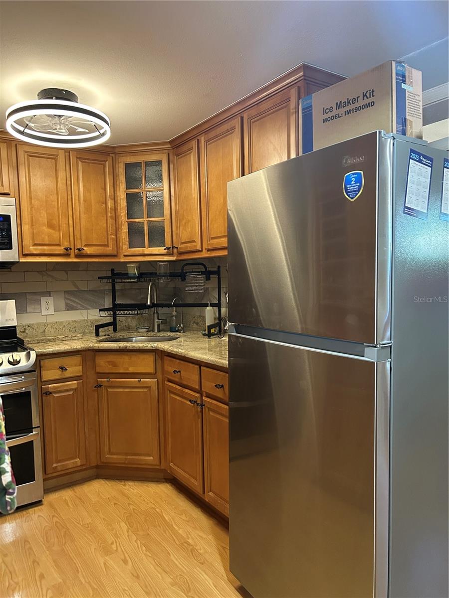 BRAND NEW ROOF WILL BE INSTALLED PRIOR TO CLOSING. Awesome home comes with a 1 year home warranty and a new roof with purchase. Situated on a large corner-lot in established Orange Lake Village neighborhood, offering far more space than expected! This move-in ready property features a versatile layout. There is an additional bonus room—ideal for a dining room, home office, or a guest room. The interior features tile and laminate flooring throughout, freshly painted walls and trim, and an updated kitchen with wood cabinetry, quartz countertops, a double oven, disposal, water filter system, and a new 2025 refrigerator. Additional upgrades include updated wiring, a tankless hot water heater, tinted windows, and sliding barn doors. The bathroom has been beautifully refreshed with a new vanity, updated lighting, fixtures, and a refinished tub. Most windows have been updated, and the central heat and air (new in 2018) provide year-round comfort. The exterior features a covered deck, window awnings, vinyl fencing installed three years ago, updated roof supports at the entry, and professionally landscaped grounds with flowering plants, fruit trees (including citrus, fig, peach, avocado, olive, and blueberry), plus a grapevine. Conveniently located near shopping, dining, parks, banks, and just a short drive to the Gulf beaches and downtown Largo, this home offers flexibility, comfort, and lasting value. A must-see home in this area!