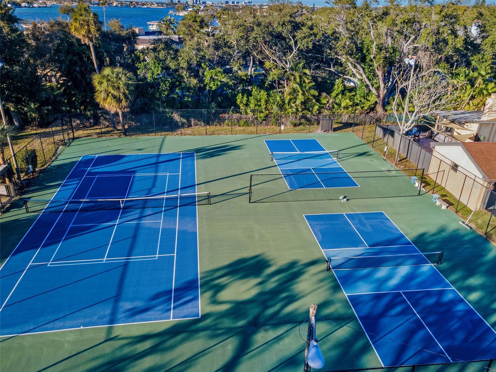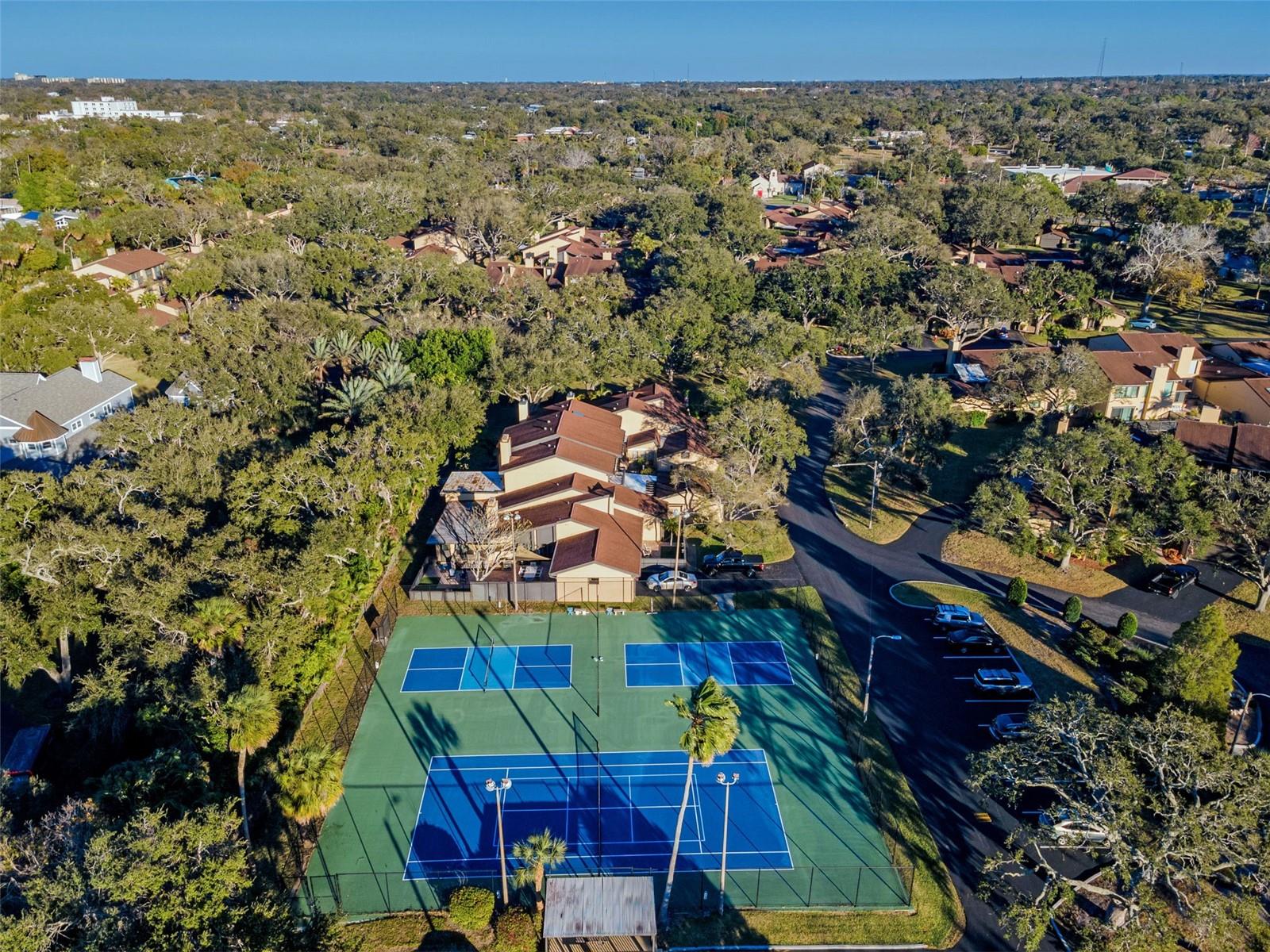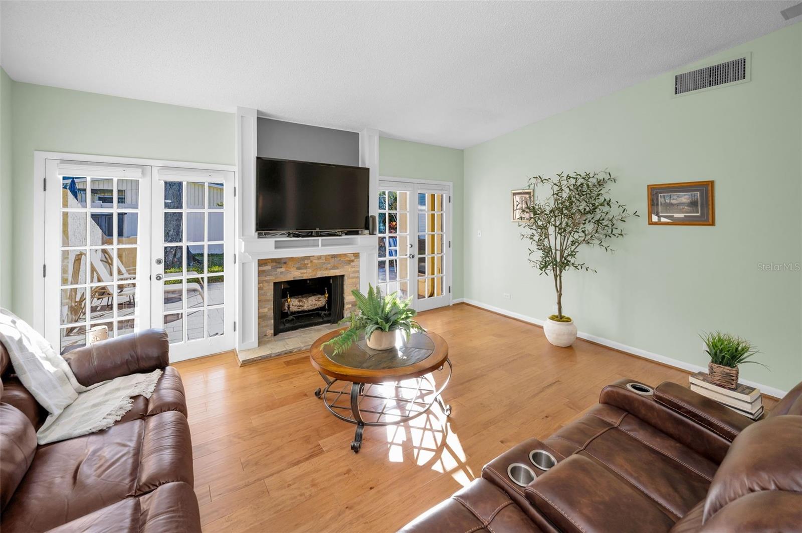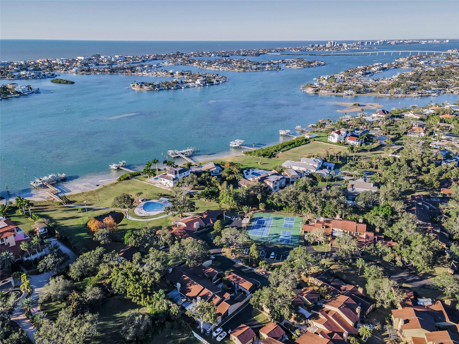 Welcome to Randolph Farms, a premier Intracoastal waterfront community offering a true resort-style lifestyle on 25 beautifully maintained acres. This light-filled home welcomes you through a private entrance and expansive paved front courtyard, opening to an inviting open floor plan ideal for everyday living and entertaining. The spacious kitchen features quality wood cabinetry, granite countertops, and a cozy breakfast nook, while vaulted ceilings, abundant natural light, a wood-burning fireplace, and French doors create an easy flow from the living and dining areas to a generous back patio perfect for outdoor gatherings. A versatile bonus room with a separate entrance is ideal for a home office, and the split-bedroom layout provides privacy for the primary suite with walk-in closet and spa-like bath, while a spacious guest bedroom is conveniently located near a full hall bath. Contemporary porcelain tile and engineered hardwood floors run throughout—no carpet—and an oversized detached two-car garage offers excellent storage. Randolph Farms is pet-friendly and age-inclusive, featuring a waterfront clubhouse and pool, lighted tennis and pickleball courts, community dock, and fishing pier, with an HOA that covers the roof, exterior maintenance, termite treatment, cable, internet, water, sewer, trash, and beautifully maintained grounds. Ideally located just 2.4 miles from Indian Rocks Beach with public beach access, parks, dining, and shops, and close to nature preserves, marinas, golf, shopping, medical facilities, and everyday conveniences, this home offers an exceptional blend of space, privacy, and coastal living in one of Pinellas County’s most desirable waterfront communities. Flood insurance is not required. This unit is conveniently located close to the clubhouse and pool and adjacent to the tennis/pickleball courts and 10 guest parking spaces. Boat slips are available to rent at $150 a month (currently on a wait list).