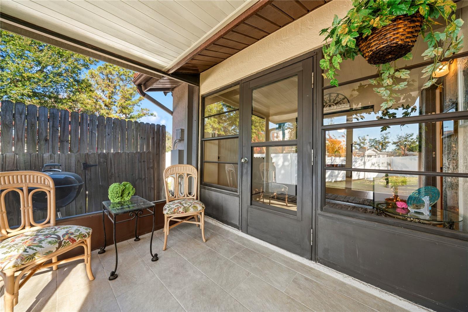 Outstanding investor opportunity with no rental restrictions and even the option for short-term rentals! Welcome home to this charming 2-bedroom, 2-bath end-unit villa in the highly desirable Rosetree Village community. Ideally positioned in one of the best locations within the neighborhood, this home enjoys expansive green space along the side and rear, offering a sense of privacy and openness rarely found in attached living. This thoughtfully designed split-bedroom floor plan is filled with natural light and features both a welcoming front porch and a relaxing back porch—perfect for morning coffee or winding down at the end of the day. Tile flooring runs throughout the home, and impact double-pane windows provide peace of mind, energy efficiency, and quiet comfort. The updated kitchen is a standout, featuring wood cabinetry with soft-close drawers, granite countertops, raised ceilings, updated lighting, and a full appliance package—perfect for everyday living and entertaining alike. One of the most unique features of this villa is the large interior laundry room located just off the back porch, complete with HVAC ducting—ideal for a climate-controlled laundry, storage area, hobby space, or flexible bonus room. Additional storage is abundant throughout the home, making this villa as practical as it is inviting. The primary suite offers a private en-suite bathroom and generous closet space, while the secondary bedroom and bathroom are perfect for guests, a home office, or family. Assigned parking is conveniently located just outside your front door, with ample guest parking nearby. Rosetree Village is an all-ages, pet- friendly community tucked away from Ulmerton Road, offering a peaceful setting with unbeatable convenience. Residents enjoy two swimming pools (one heated), a clubhouse, playground, and basketball court. The monthly HOA fee of $338 covers water, sewer, trash, basic cable, exterior maintenance, and community amenities. Centrally located in Pinellas County with easy access to US-19, I-275, Tampa, St. Petersburg, Clearwater, the beaches, and both Tampa International and St. Pete-Clearwater airports. No flood insurance required. HVAC & HWH are 2022