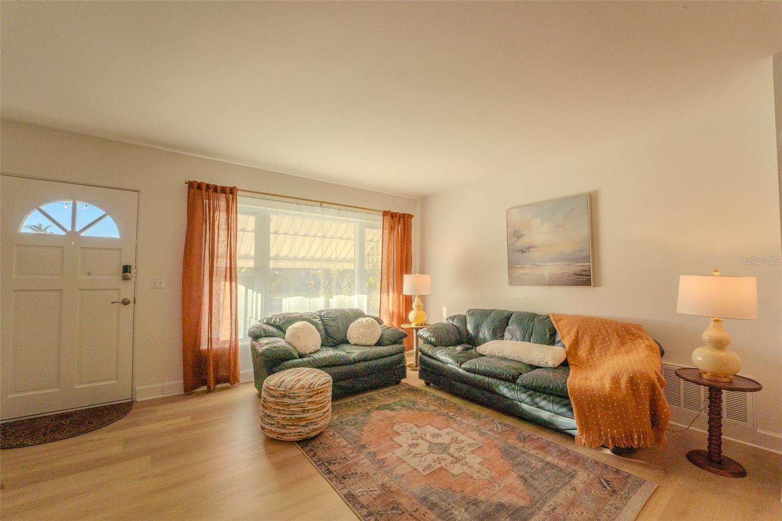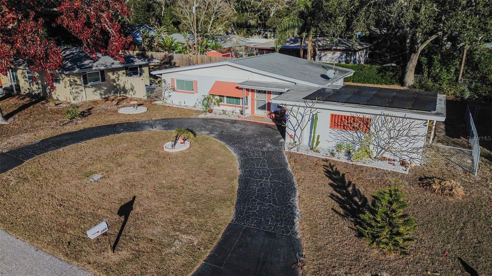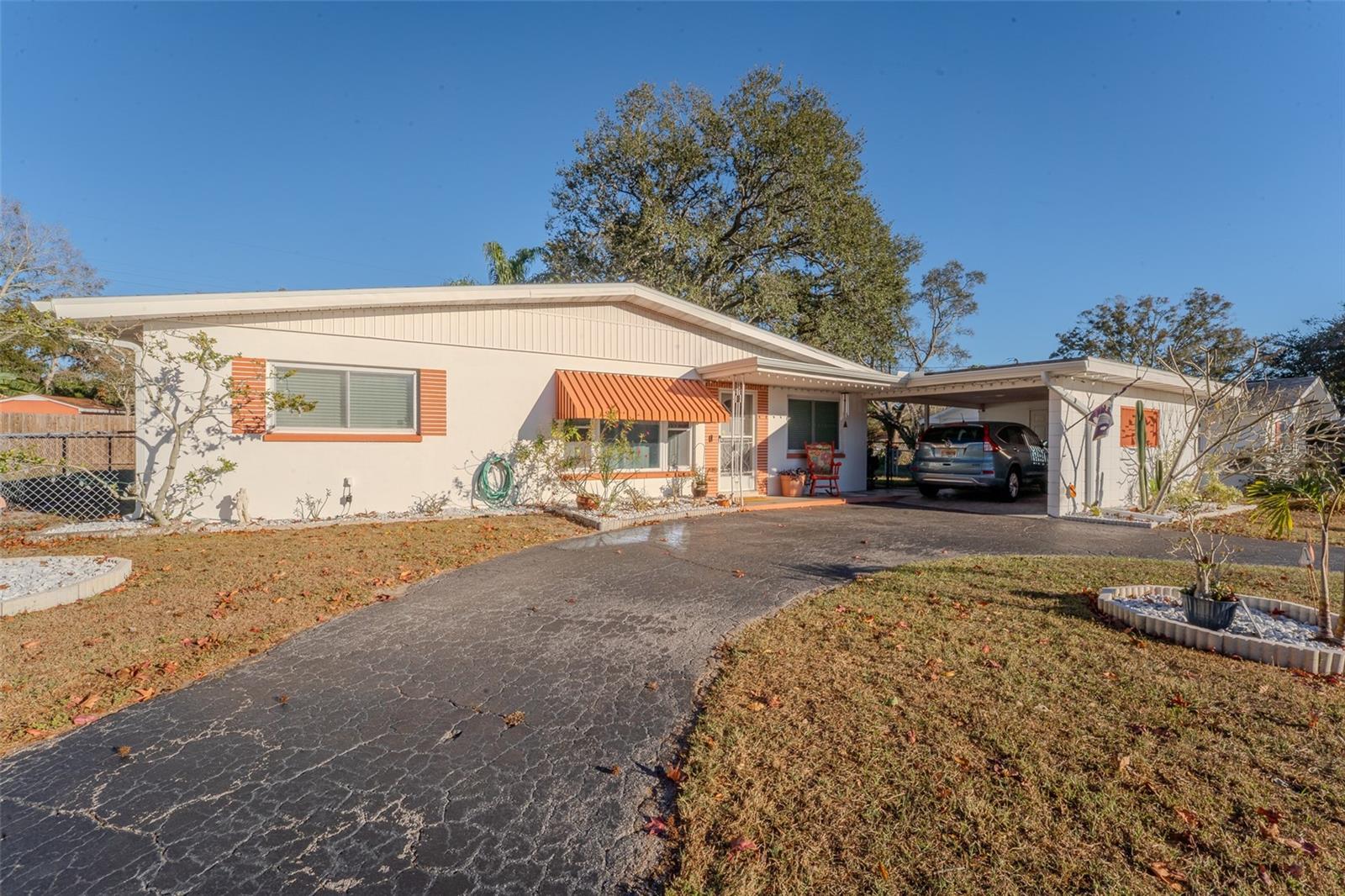 Charming and beautifully updated, this home sits in one of Largo’s very desirable “high and dry” neighborhoods. Turn-key and pristine, this 3-bedroom, 2-bath, split floor plan, block-construction home is just five minutes from the beautiful Belleair Causeway and the sugar-sand-shores of Indian Rocks Beach on the Gulf of Mexico. This quaint subdivision enjoys no deed restrictions while maintaining true pride of ownership. Ideal for primary owners and investors alike. The flexible layout feels bright, and open, with abundant natural light. New luxury vinyl flooring, and fresh interior paint enhance its vintage character. The home also features mostly newer double-pane windows, a new sliding glass door, and new seamless gutters. The clean, functional kitchen offers a window overlooking the backyard, a side-door entrance, and convenient access to the dedicated dining room. The roof was replaced in 2017, and the seller will pay off the whole-home solar system at closing—providing long-term utility bill efficiency. Step outside to a peaceful, fully fenced backyard with ample room for a pool, framed by mature landscaping that provides privacy and plenty of space to relax or entertain. The east-facing screened lanai extends your living area and is bathed in gentle morning light. A nicely sized laundry room and storage closet are in the carport, with the washer and dryer conveying. Furniture and décor are available for purchase, further making the home truly move-in ready. All of this—just minutes from the beach and a stone’s throw from local restaurants, shopping, and everyday conveniences—creates a wonderful Florida lifestyle opportunity you won’t want to miss!