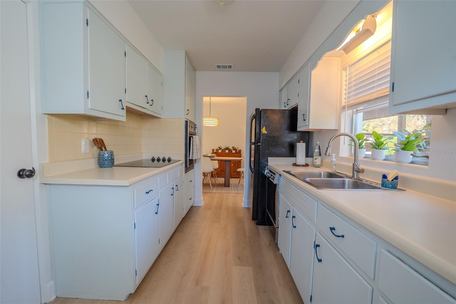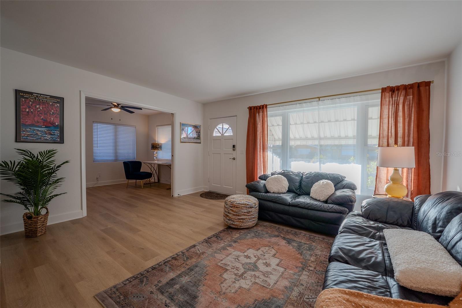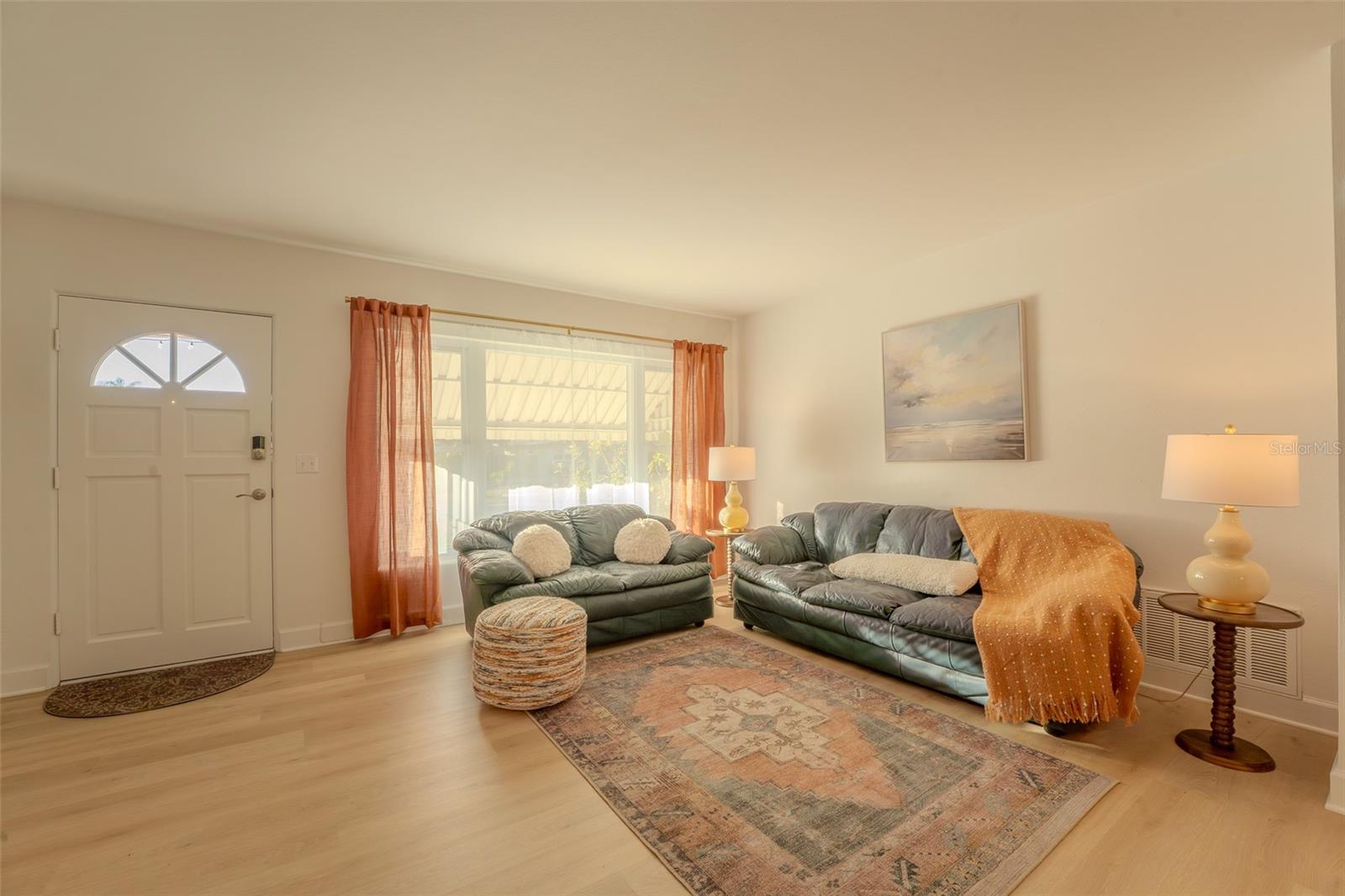 Charming and beautifully updated, this home sits in one of Largo’s very desirable “high and dry” neighborhoods. Turn-key and pristine, this 3-bedroom, 2-bath, split floor plan, block-construction home is just five minutes from the beautiful Belleair Causeway and the sugar-sand-shores of Indian Rocks Beach on the Gulf of Mexico. This quaint subdivision enjoys no deed restrictions while maintaining true pride of ownership. Ideal for primary owners and investors alike. The flexible layout feels bright, and open, with abundant natural light. New luxury vinyl flooring, and fresh interior paint enhance its vintage character. The home also features mostly newer double-pane windows, a new sliding glass door, and new seamless gutters. The clean, functional kitchen offers a window overlooking the backyard, a side-door entrance, and convenient access to the dedicated dining room. The roof was replaced in 2017, and the seller will pay off the whole-home solar system at closing—providing long-term utility bill efficiency. Step outside to a peaceful, fully fenced backyard with ample room for a pool, framed by mature landscaping that provides privacy and plenty of space to relax or entertain. The east-facing screened lanai extends your living area and is bathed in gentle morning light. A nicely sized laundry room and storage closet are in the carport, with the washer and dryer conveying. Furniture and décor are available for purchase, further making the home truly move-in ready. All of this—just minutes from the beach and a stone’s throw from local restaurants, shopping, and everyday conveniences—creates a wonderful Florida lifestyle opportunity you won’t want to miss!
