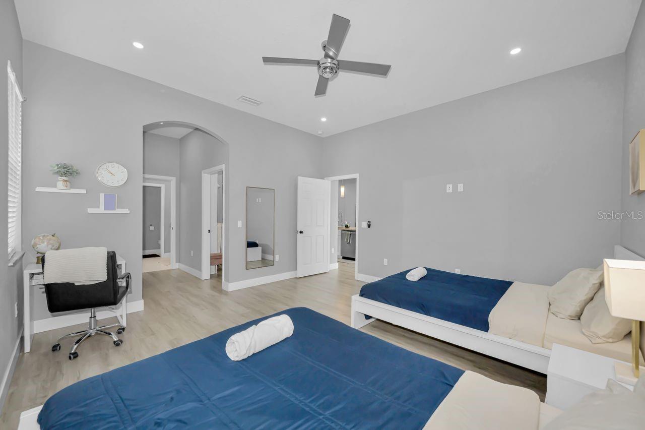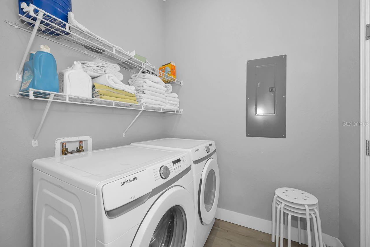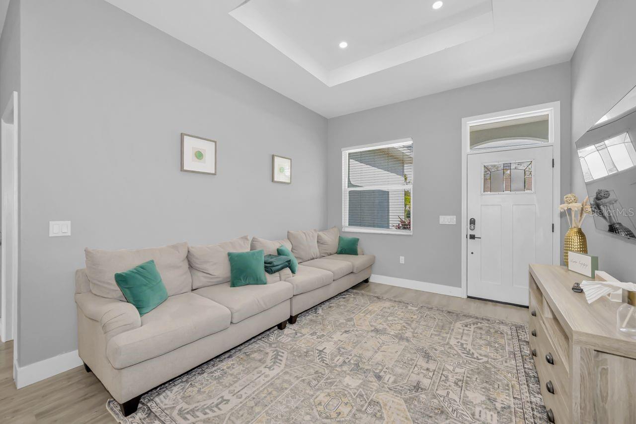 Beautiful, nearly new 3/2 with 2-car garage and 1,573 heated sq ft. Open-concept living/dining area and upgraded kitchen with granite countertops, stainless steel appliances, soft-close cabinets, and breakfast bar. Waterproof laminate flooring throughout. Split floorplan with spacious primary suite featuring walk-in shower. Two additional bedrooms with ample closets. Indoor laundry room. Large backyard with 16x9 patio. Impact windows/doors, foam insulation, Smart Home features, and appliances still under warranty. Move-in ready. Additional features include an indoor laundry room, impact windows and doors, foam insulation for energy efficiency, and Smart Home technology (smart switches, thermostat, Ring doorbell, and smart lock). Looking for income potential? This home is currently an active AirBnB!