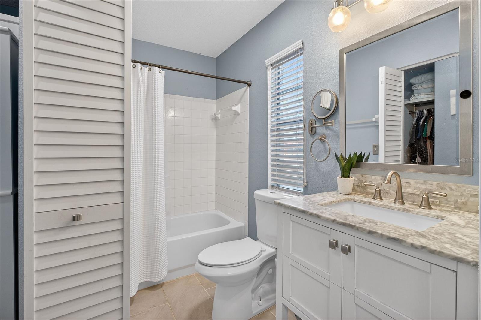 Move-in ready 3-bedroom 2-bath home in central Largo with vaulted ceilings and open floor-plan built for entertaining. The updated Kitchen features newer shaker cabinets(2021), including a pantry cabinet. Newer appliances added (2024) including an LG range, LG refrigerator, and Whirlpool over-the-range microwave. Low-maintenance tile floors in the main living areas and bathrooms. The Primary Bedroom offers ensuite bathroom and walk-in closet. Newer HVAC compressor and air handler. Sliding glass doors from the Kitchen open to a fenced backyard with a newly added patio (2025), well-kept tropical landscape with mature palms, decorative plantings along the perimeter, and established bamboo for added privacy - ready for outdoor relaxation and fun activities! Close to shopping, dining, Largo Mall and just minutes from the local YMCA, beaches, and the Pinellas Trail. Walking entrance to John S. Taylor Park is close by.