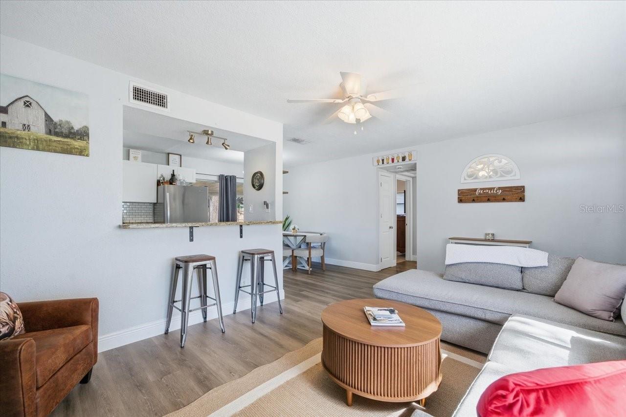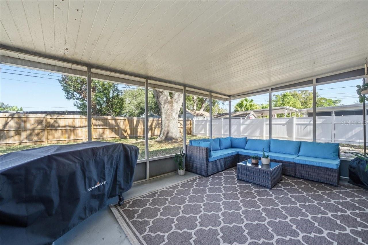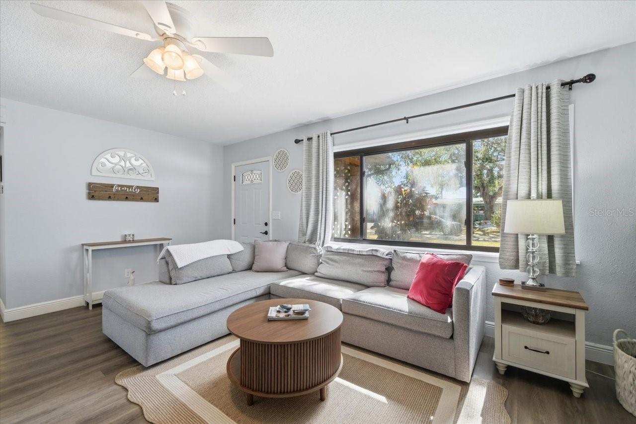 Welcome to this charming 2-bedroom, 1-bath home with a 1-car garage tucked away at the end of a quiet cul-de-sac in Largo! High and dry with no flood insurance required, this home offers privacy with no through traffic and ample parking with an oversized NEW driveway. The attached oversized garage includes new stylish garage door, laundry hookups and has plenty of storage space with access to the backyard. Inside, you’ll find tasteful decor and extensive updates, including luxury vinyl flooring and baseboards throughout. The updated kitchen features granite countertops, stainless steel appliances, a breakfast bar and a window over the sink with a view of the yard allowing for tons of natural light. The dining area is adjacent and perfect for easy meals and everyday living with sliding patio doors that open to a large screened lanai, ideal for relaxing and enjoying Florida’s beautiful weather. The fully fenced backyard is amazing with a concrete pad in the corner that works for a sitting area or a shed-there is also a separate area for a grill, outdoor furniture and there is still plenty of room for expansion, outdoor living, or even a future pool! Back inside, the primary bedroom is open and spacious with generous closet space and enough room for large furniture, while the guest bedroom has a lot of light with 2 windows and both bedrooms have newer carpeting and updated lighting/fans. The updated bathroom has shiplap and modern brass accents with new vanity and adds to the home’s move-in-ready appeal. Updates also include newer 6 panel doors throughout and a garage door that is stylish and modern. This home is centrally located in the heart of Pinellas County and Largo, close to shopping, dining, and everyday conveniences! There is easy access to Tampa, Clearwater and our top 10 beaches, Tampa International Airport and Port is approximately 25 minutes away and the St Pete/Clearwater airport is even closer.