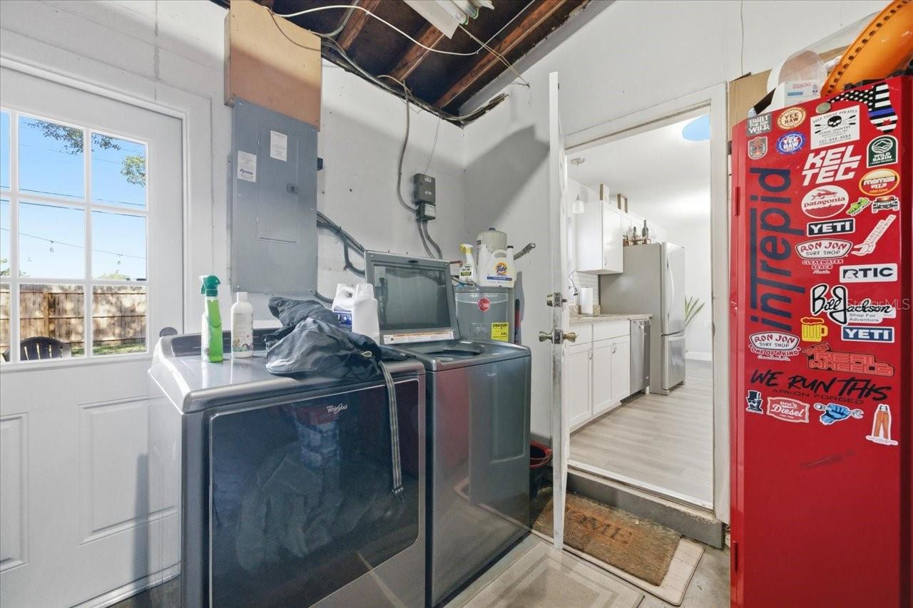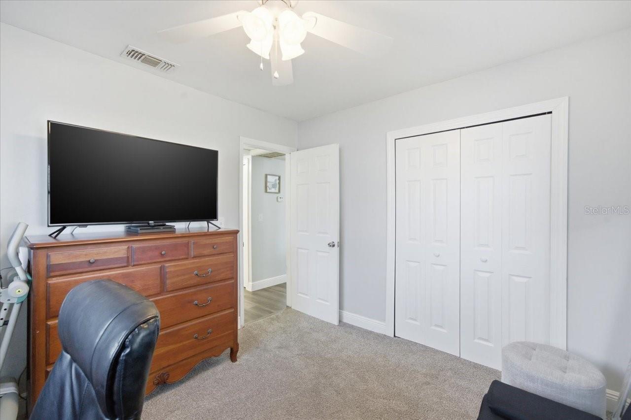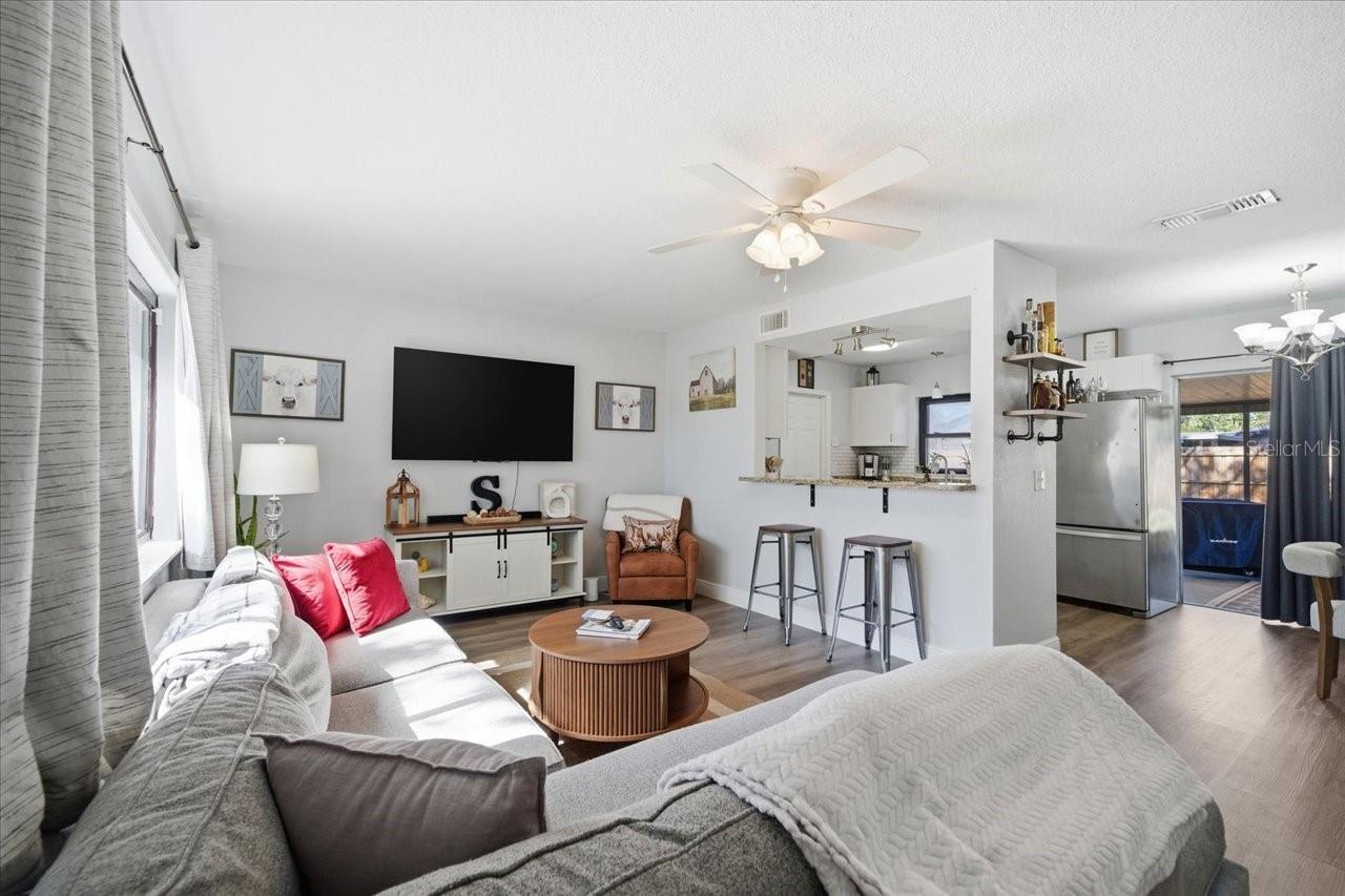 Welcome to this charming 2-bedroom, 1-bath home with a 1-car garage tucked away at the end of a quiet cul-de-sac in Largo! High and dry with no flood insurance required, this home offers privacy with no through traffic and ample parking with an oversized NEW driveway. The attached oversized garage includes new stylish garage door, laundry hookups and has plenty of storage space with access to the backyard. Inside, you’ll find tasteful decor and extensive updates, including luxury vinyl flooring and baseboards throughout. The updated kitchen features granite countertops, stainless steel appliances, a breakfast bar and a window over the sink with a view of the yard allowing for tons of natural light. The dining area is adjacent and perfect for easy meals and everyday living with sliding patio doors that open to a large screened lanai, ideal for relaxing and enjoying Florida’s beautiful weather. The fully fenced backyard is amazing with a concrete pad in the corner that works for a sitting area or a shed-there is also a separate area for a grill, outdoor furniture and there is still plenty of room for expansion, outdoor living, or even a future pool! Back inside, the primary bedroom is open and spacious with generous closet space and enough room for large furniture, while the guest bedroom has a lot of light with 2 windows and both bedrooms have newer carpeting and updated lighting/fans. The updated bathroom has shiplap and modern brass accents with new vanity and adds to the home’s move-in-ready appeal. Updates also include newer 6 panel doors throughout and a garage door that is stylish and modern. This home is centrally located in the heart of Pinellas County and Largo, close to shopping, dining, and everyday conveniences! There is easy access to Tampa, Clearwater and our top 10 beaches, Tampa International Airport and Port is approximately 25 minutes away and the St Pete/Clearwater airport is even closer.
