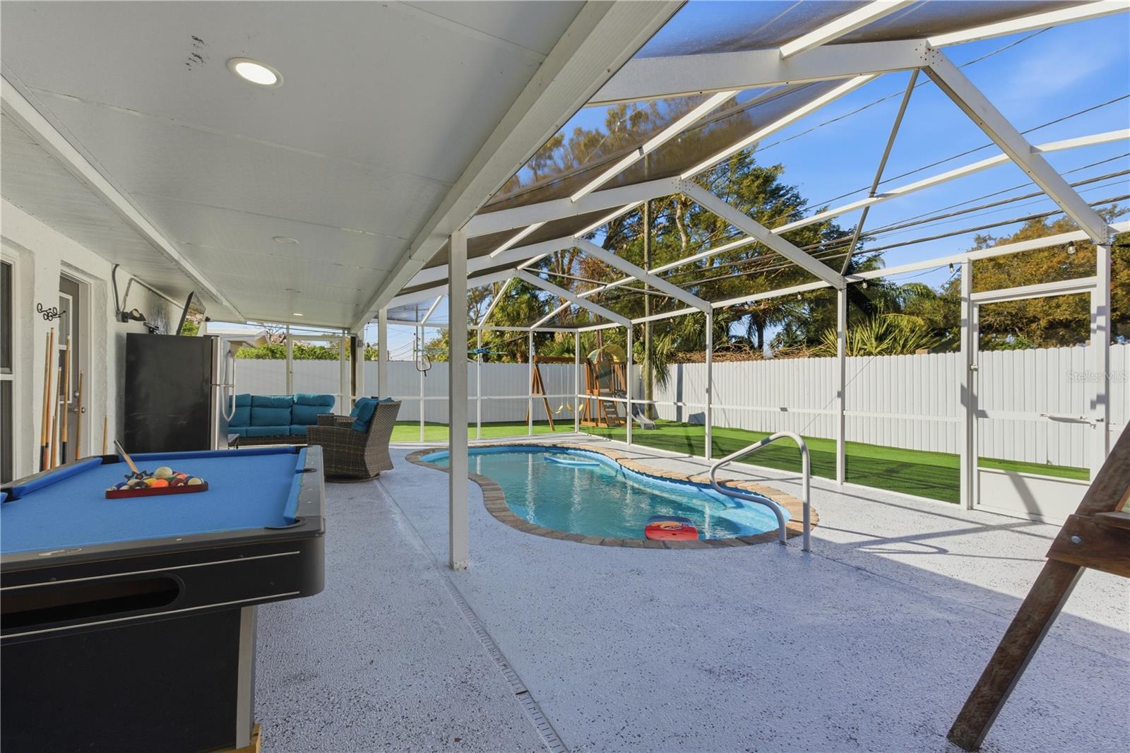 Beautiful and spacious property featuring 4 bedrooms, 2 bathrooms, and a private pool, with a new roof installed last year. This home offers modern bathrooms and a modern kitchen with wood cabinets and granite countertops, and was previously operated as a successful Airbnb, providing excellent income-producing potential. The property also includes a separate apartment with its own modern bathroom and modern kitchen, currently rented through Airbnb, ideal for short-term rental or extended family. Additionally, there is a modern in-law suite with bathroom and kitchen, perfect for generating extra income or multi-generational living. Enjoy low-maintenance outdoor living with artificial turf throughout the yard, a screened-in pool, and a brand-new fence. Property features side entrance access and a large driveway with parking for up to six vehicles, offering added privacy and convenience. Furniture is negotiable. A great opportunity for investors or owner-occupants looking to offset their mortgage with rental income.