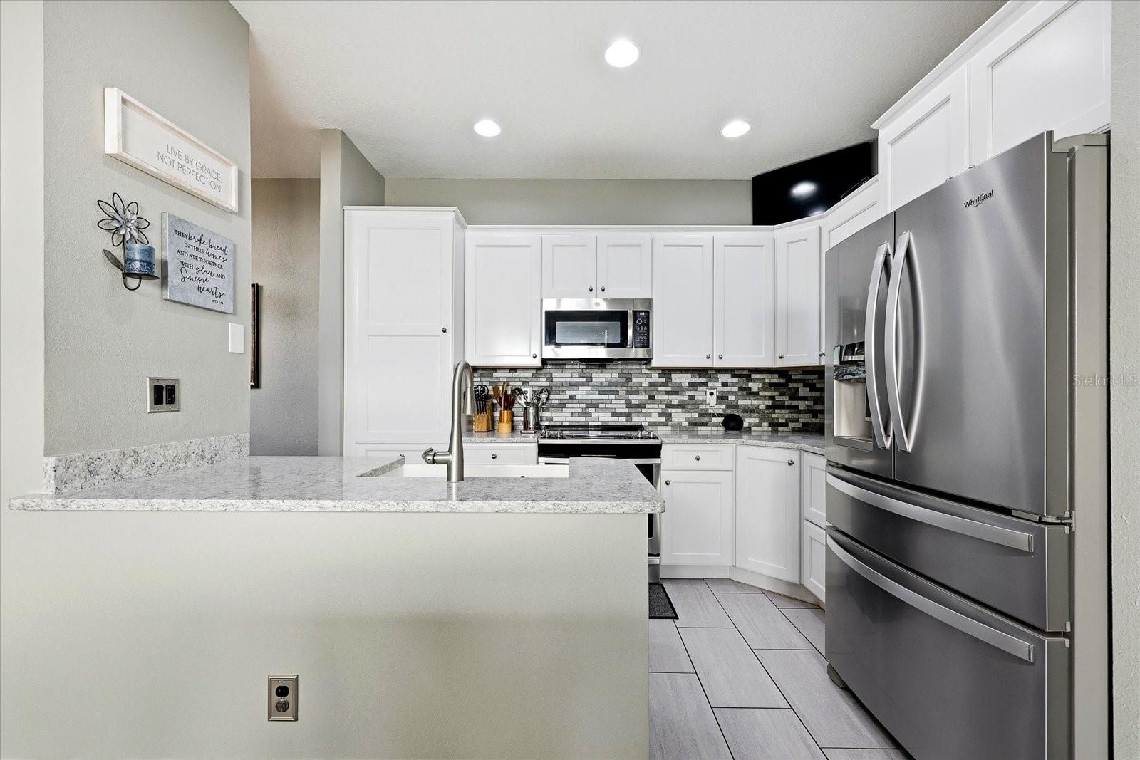 Step into this beautifully updated corner-unit townhome where style and functionality come together seamlessly. From the moment you enter, you’re greeted by a spacious living room designed for both comfortable everyday living and effortless entertaining. Rich hardwood floors flow throughout the home, creating a warm, upscale feel. An additional living area with its own entrance to the lanai offers flexible space, perfect for a home office, lounge, or bonus entertaining area. The dining space leads to a stunning and fully renovated kitchen featuring modern finishes, abundant storage, and additional seating for casual gatherings. The kitchen is beautifully appointed with premium KraftMaid cabinetry, thoughtfully designed to maximize every inch of storage space. With smart organization features, deep drawers, and custom configurations, it offers both exceptional functionality and a polished, high-end finish that elevates the entire space. Upstairs, custom hardwood stairs guide you to three generously sized bedrooms. The primary suite is a true retreat, complete with a beautifully updated en-suite bath (2020), a custom walk-in closet (2022), and a peaceful private balcony ideal for morning coffee or evening unwinding. The secondary bathroom was also updated in 2020, and hardwood flooring continues throughout the upper level for a cohesive look. The garage adds a unique and fun extension of the living space, built out as a bar area while still maintaining room for a vehicle. Major updates provide peace of mind, including a new roof (2023), tankless water heater (2022), AC system (2022), electric shades upstairs and downstairs, whole-home water softener and filtration system (2022), and surge protection (2022). Located in a wonderful community with ample guest parking, this home is just minutes from award winning beaches and offers convenient access to major airports, restaurants and shopping. The HOA covers an impressive list of amenities and services, including water, sewer, trash, cable, exterior maintenance, landscaping, community pool, roof coverage, and more making for truly easy living. Don’t miss your chance to own this slice of affordable Florida living where style, sunshine, and easy living come together in one incredible opportunity.