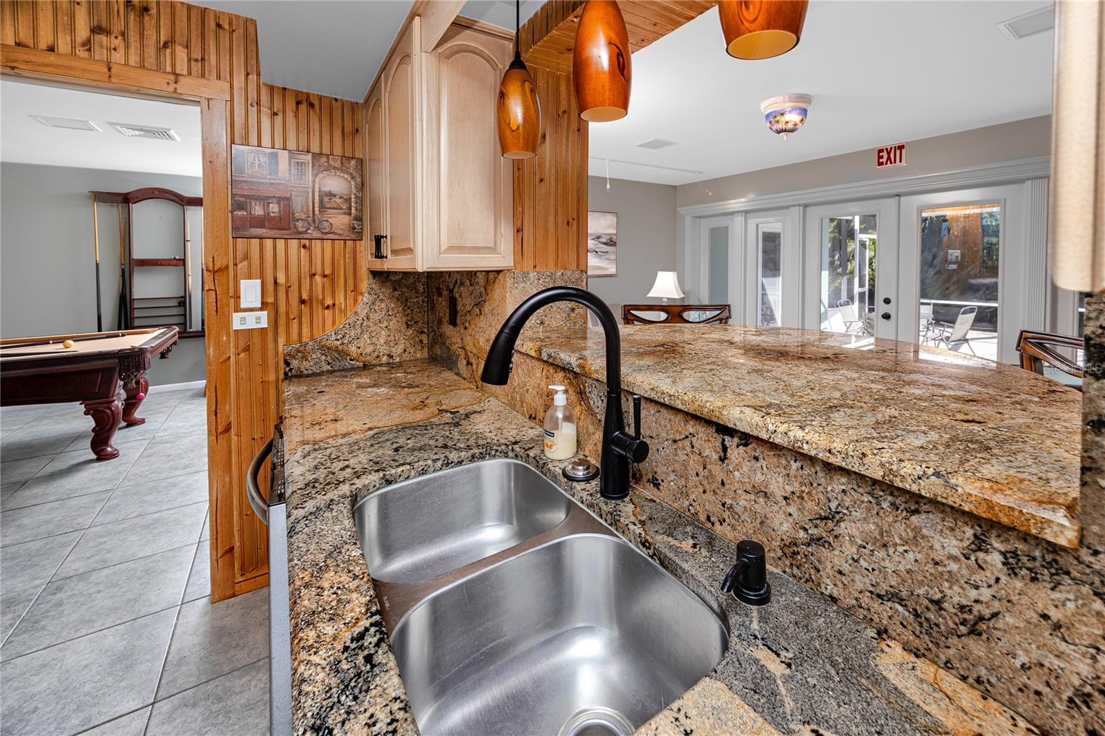 Located in the highly sought-after Harbor Hills neighborhood of Largo, this turnkey 3-bedroom, 2-bath pool home with an oversized two-car garage offers the rare combination of elevation, flexibility, and income potential just minutes from the Gulf beaches. Positioned in Flood Zone X at one of the highest elevations in the area, the property is high and dry with no flood insurance required, an increasingly valuable feature for buyers seeking security and long-term peace of mind. With no minimum night rental restrictions, this single-family home is ideal for both full-time residents and investors looking for a profitable short-term rental less than five miles from Belleair Beach, Indian Rocks Beach, and the Gulf of Mexico.Inside, the home features over 2,000 square feet of thoughtfully designed, carpet-free living space with elegant tile and marble finishes throughout. The desirable split floor plan maximizes privacy while maintaining seamless flow between the living and dining areas, family room (currently styled as a game room), and sunroom, all anchored by a central kitchen designed for entertaining. Granite countertops and full-height granite backsplashes complement stainless steel appliances, while a unique breakfast bar for two extends seamlessly from the kitchen into the sunroom through a server/butler-style pass-through window, enhancing indoor-outdoor entertaining and creating an inviting connection between gathering spaces. Coved ceilings, plantation shutters, and custom window casings add architectural character, while a striking built-in fish tank/terrarium wall creates a distinctive focal point between the living and game room areas, enhancing the home’s coastal charm and conversation appeal. The spacious primary suite showcases marble flooring with mosaic black diamond insets that continue into the ensuite bath, where you’ll find a Roman soaking tub, walk-in shower, split vanities, and updated finishes. The secondary bathroom features modern fixtures, updated tile wainscoting, and a refreshed tub alcove. Multiple sets of French doors open to a large pavered lanai wired for surround sound, leading to a heated lagoon-style PebbleTec pool enclosed by a screened cage and surrounded by mature tropical landscaping. The private fenced backyard creates a resort-style setting ideal for entertaining or relaxing after a beach day. Additional highlights include newer interior paint, a side-facing oversized garage with workshop space and wood cabinetry, garage access directly to the pool deck and adjacent laundry area with utility sink, and an extended driveway accommodating five or more vehicles. The flexible layout and strong rental history enhance both everyday living and short-term rental performance. The pool table conveys, offering immediate turnkey appeal. Conveniently located near the Belleair Causeway, local marinas, Largo Central Park, golf courses, dining, shopping, and with quick access to Clearwater Beach and St. Petersburg, this Harbor Hills pool home delivers the lifestyle buyers are searching for, whether as a primary residence, second home, or active short-term rental investment in one of Pinellas County’s most desirable coastal communities.